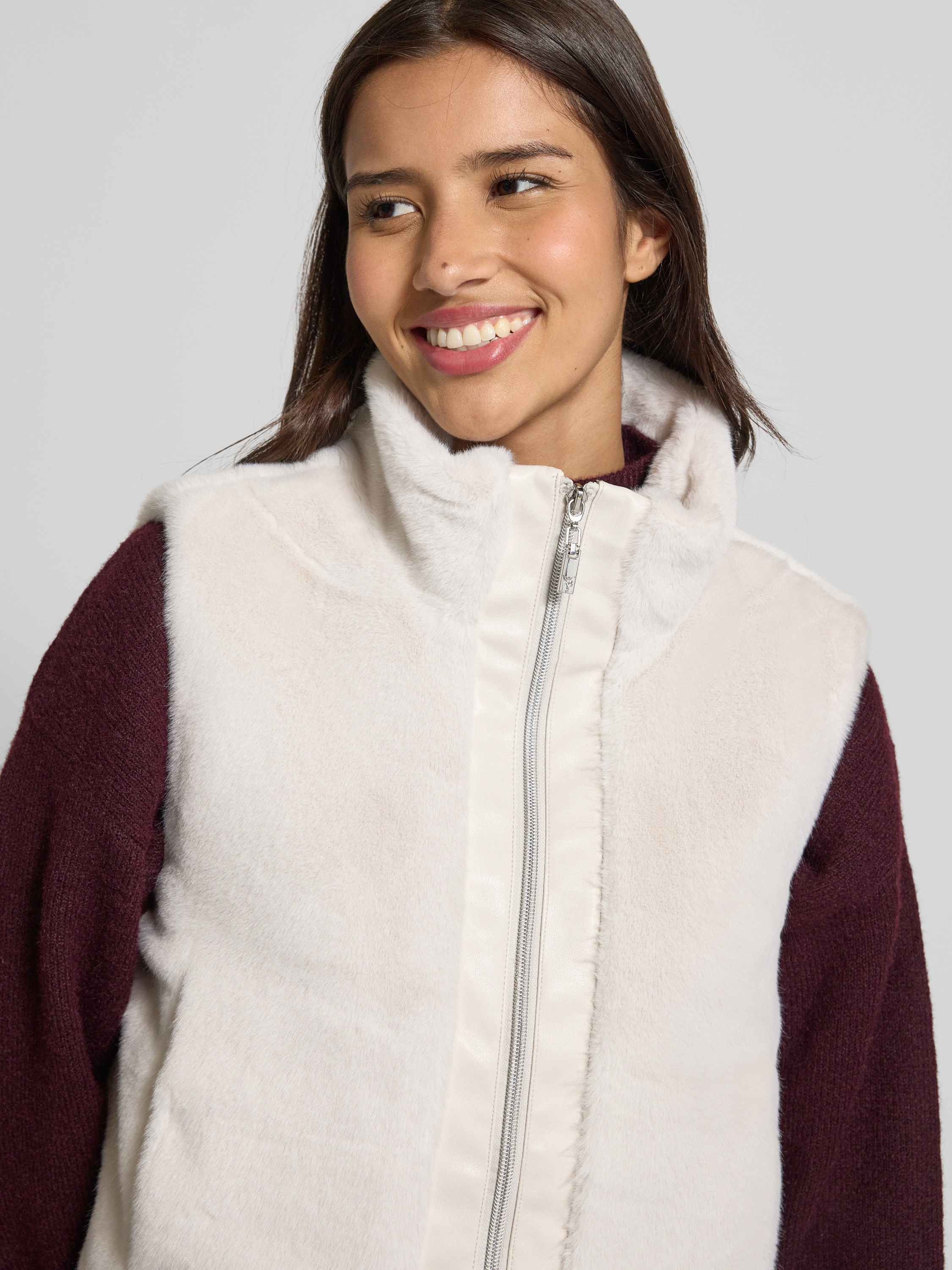 Die Weste mit Stehkragen von monari zeichnet sich durch ihren geraden Schnitt und den weichen Kunstfellbesatz aus, wodurch sie sich angenehm tragen lässt. Dank der klaren Linienführung ergänzt sie vielseitig unterschiedliche Outfits. Mit ihrem dezenten Design wirkt sie zugleich modern und unkompliziert.