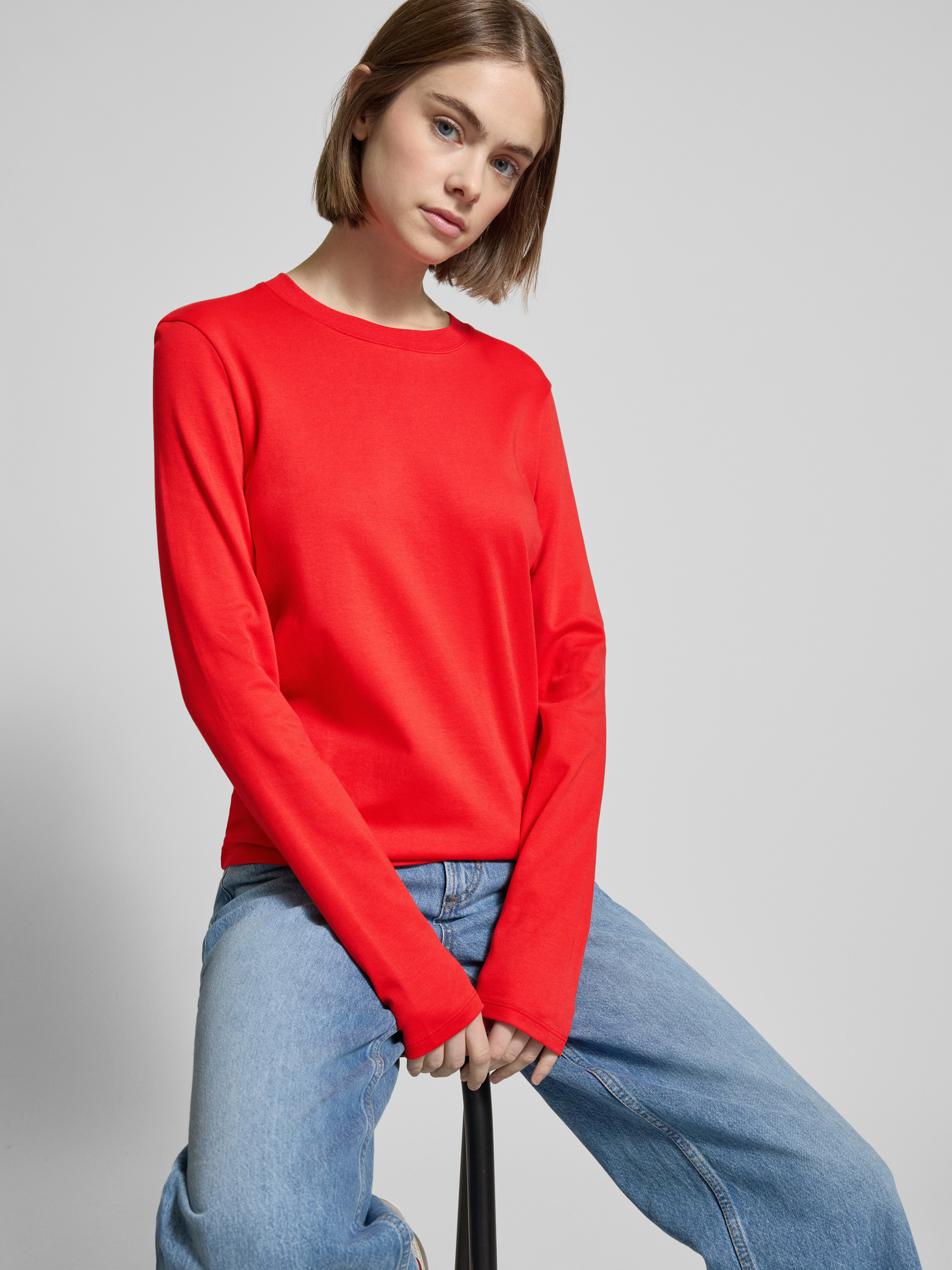 Marc O'Polo DenimLongsleeve mit geripptem Rundhalsausschnitt in rot