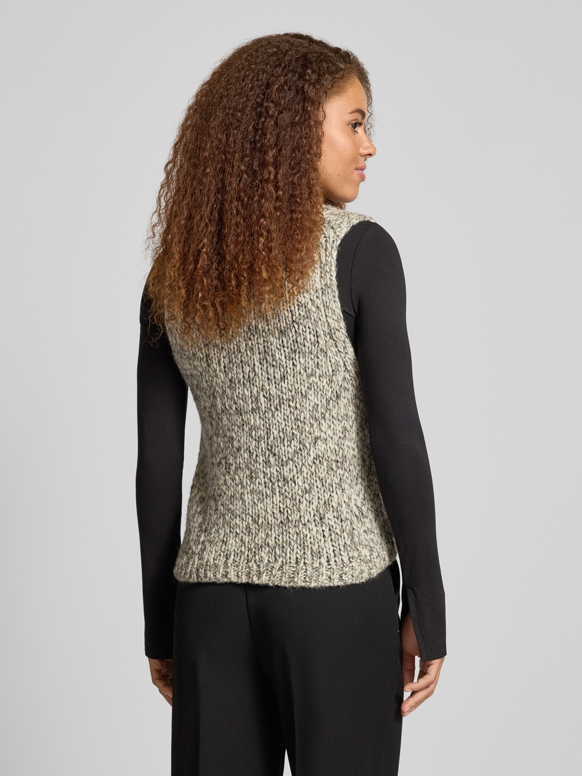 Der Damen Pullunder von Marc O’Polo Denim zeigt sich in Melange-Optik und überzeugt mit seinem Regular-Fit, der angenehm sitzt und vielseitig kombiniert werden kann. Durch den Schurwoll-Mix mit Alpaka-Anteil erhält das Grobstrick-Modell eine spürbar weiche Haptik. Der klassische Rundhals unterstreicht den zeitlosen Look, während die cropped Länge moderne Akzente setzt.