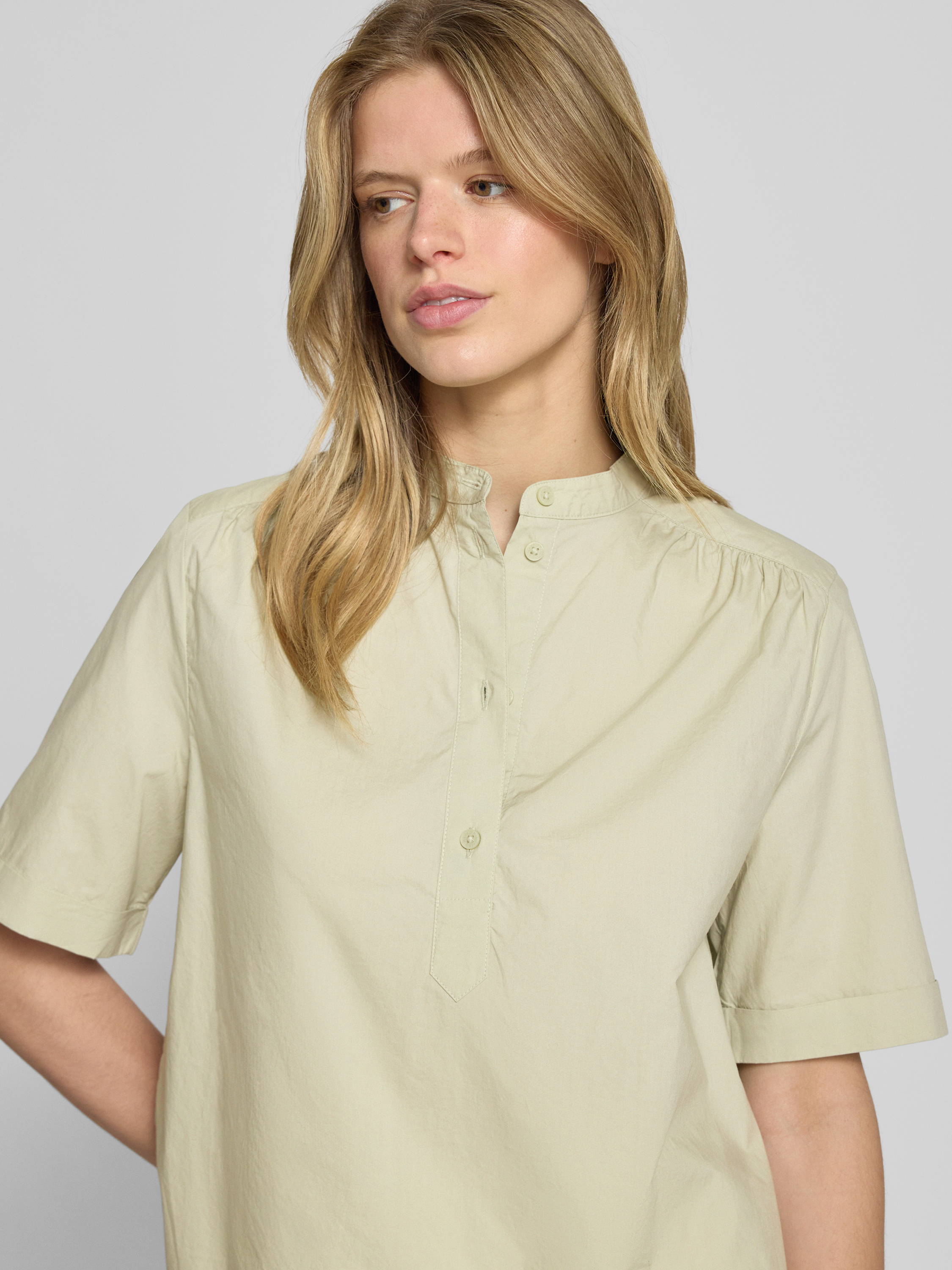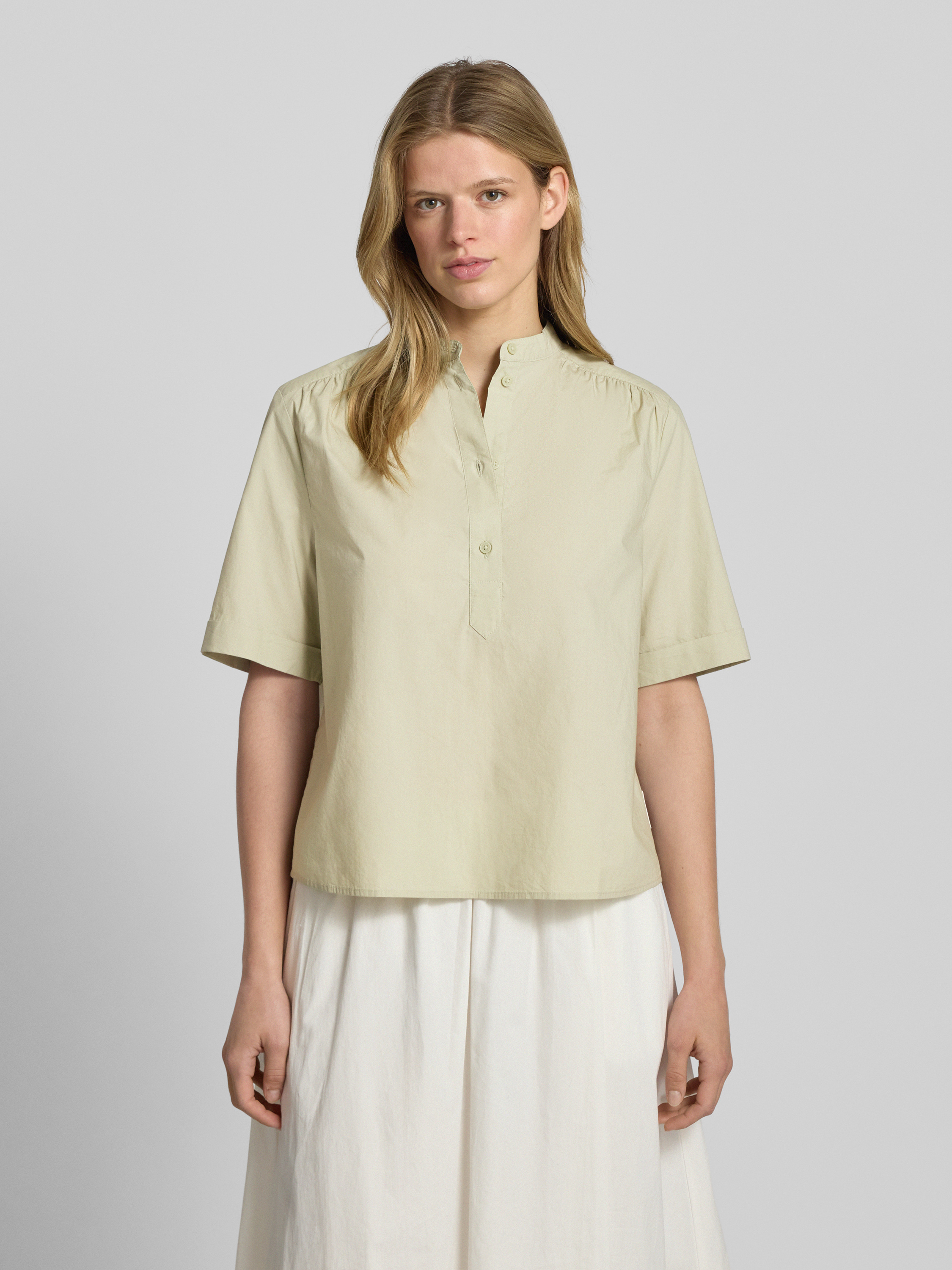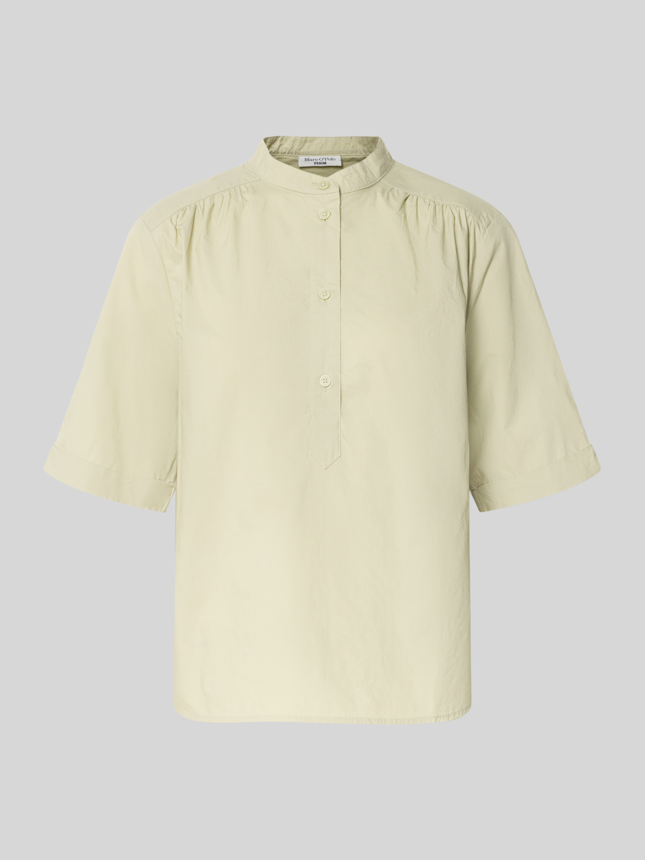 Die Marc O'Polo Denim Bluse kombiniert einen entspannten Schnitt mit einem eleganten Stehkragen, wodurch sie sowohl Komfort als auch Stil bietet. Gefertigt aus reiner Baumwolle, eignet sie sich ideal für warme Tage. Der halbe Arm verleiht der Bluse eine luftige Leichtigkeit.