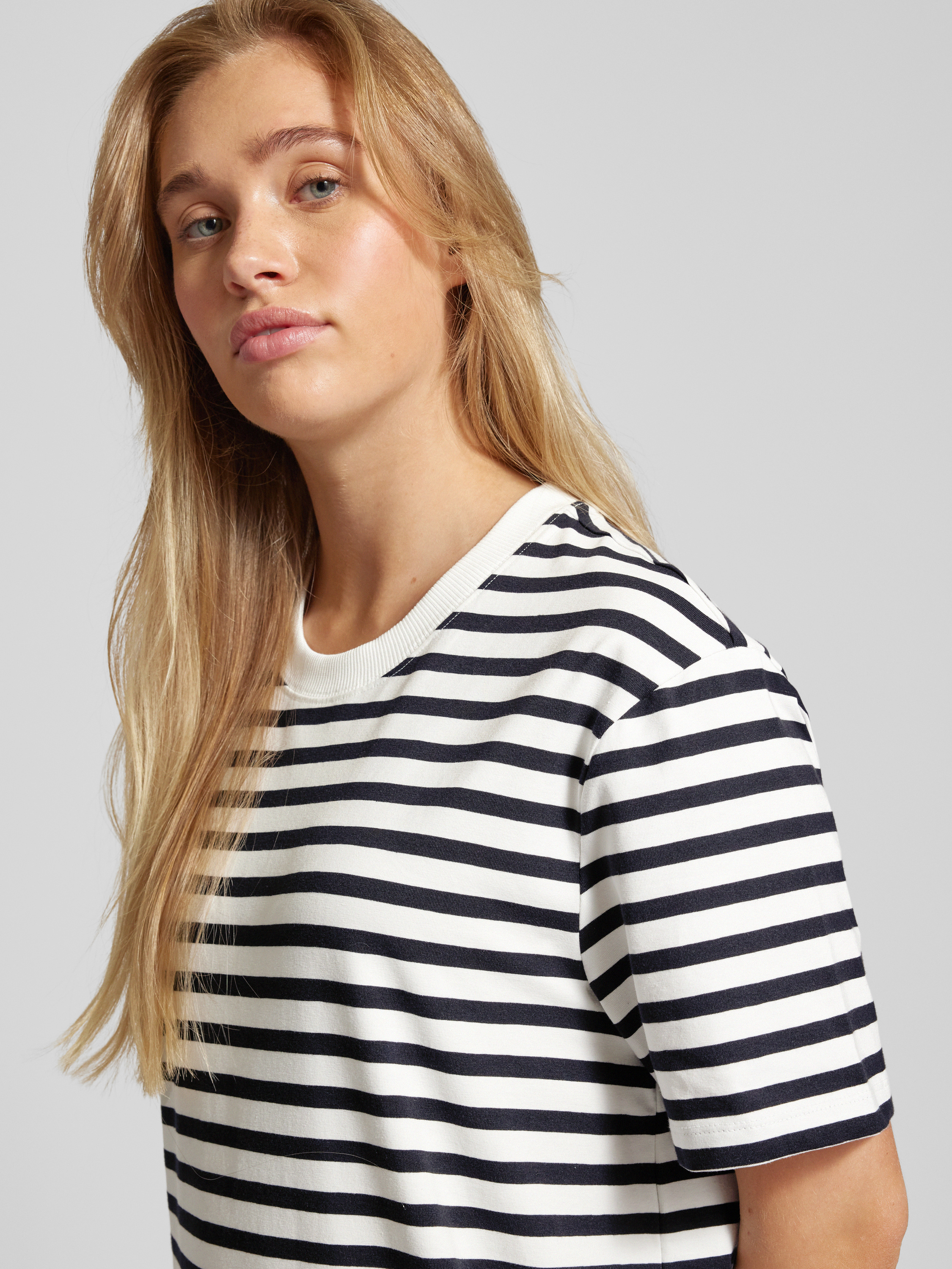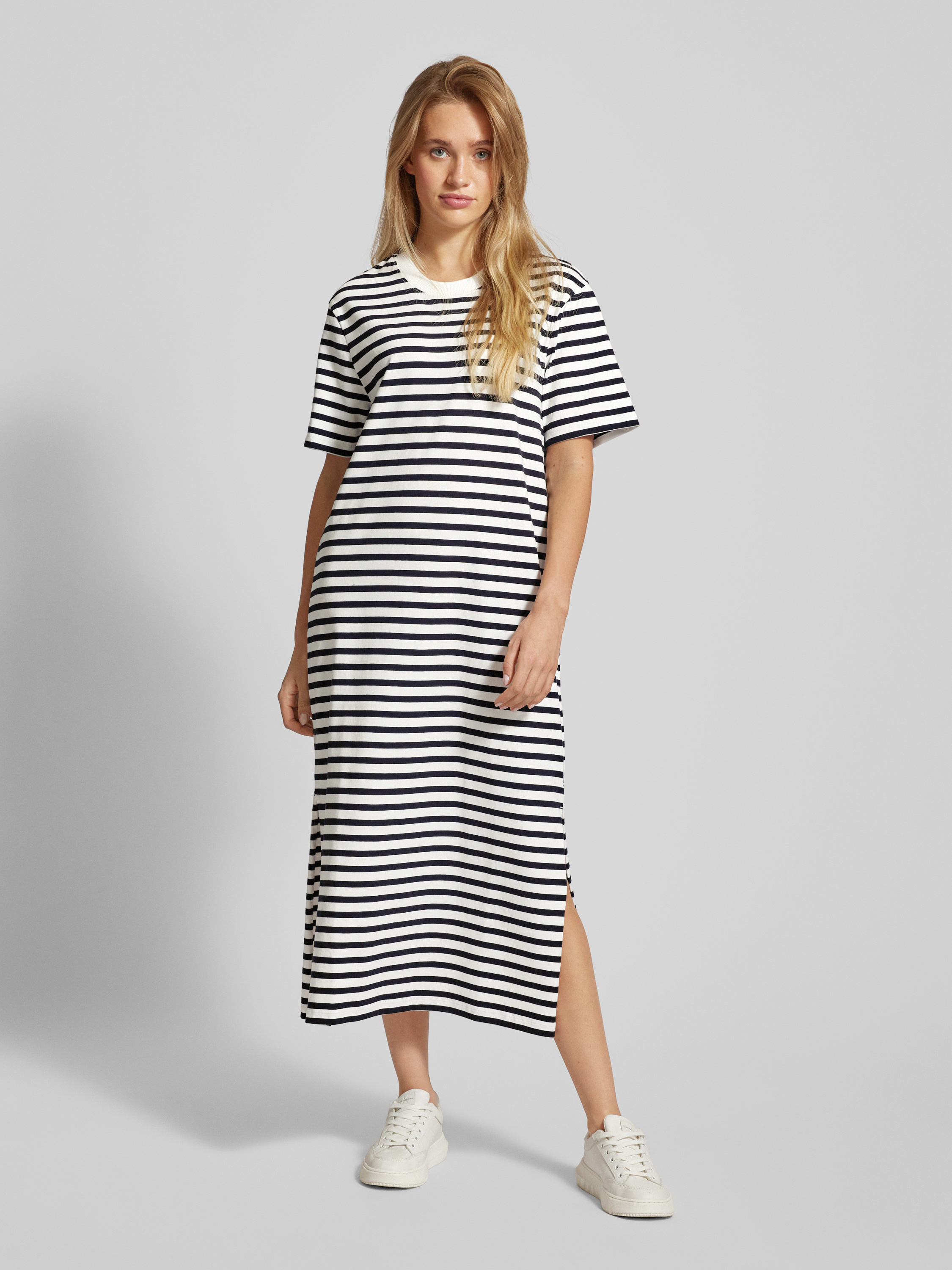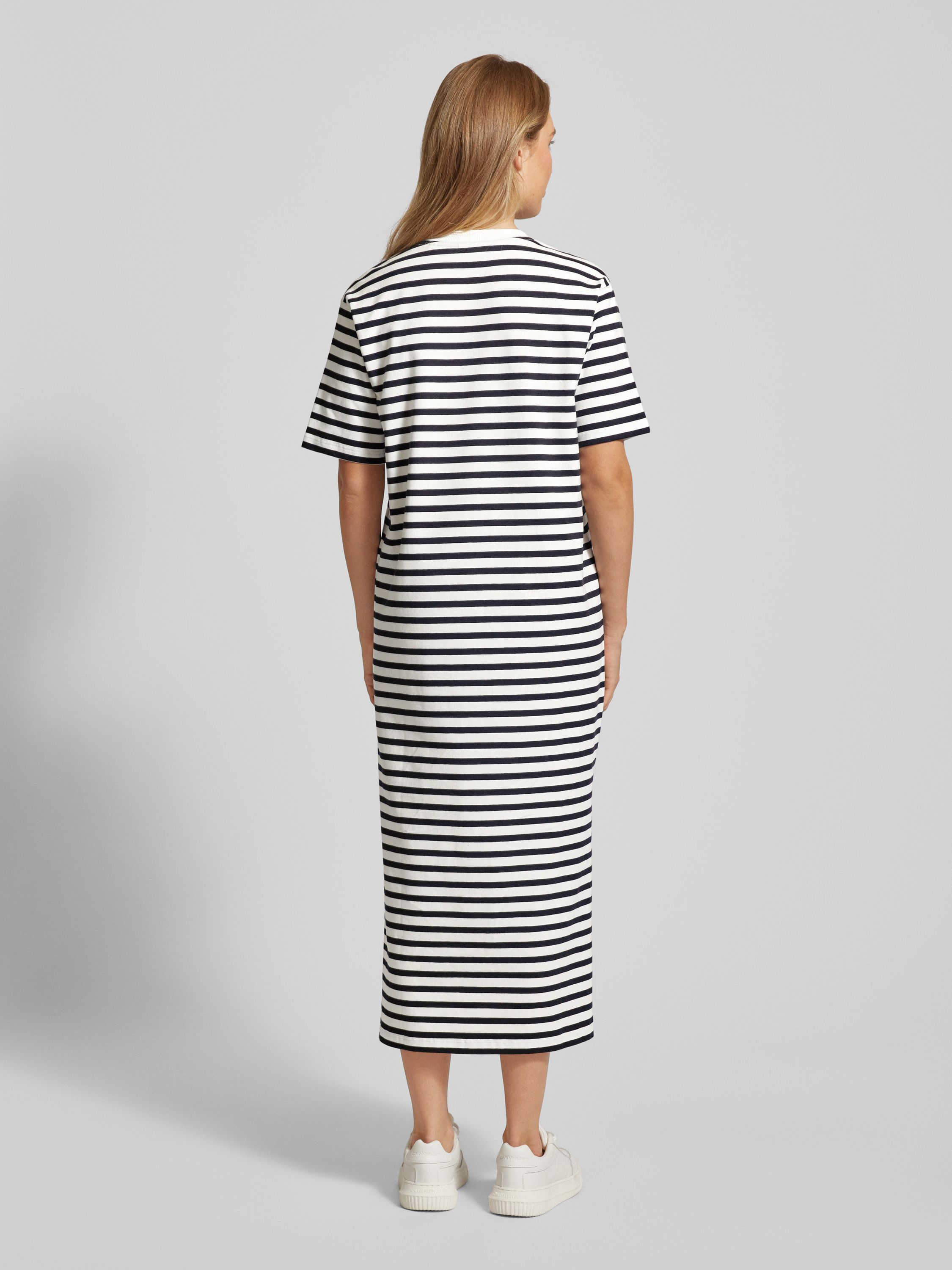 Das T-Shirt-Kleid mit Rundhalsausschnitt von Marc O'Polo Denim zeichnet sich durch seinen geraden Schnitt aus, der Bewegungsfreiheit und Komfort ermöglicht. Der Baumwoll-Elasthan-Mix liegt angenehm auf der Haut und eignet sich für verschiedenste Anlässe. Dezente Details verleihen dem Midikleid eine unaufdringliche Note.
