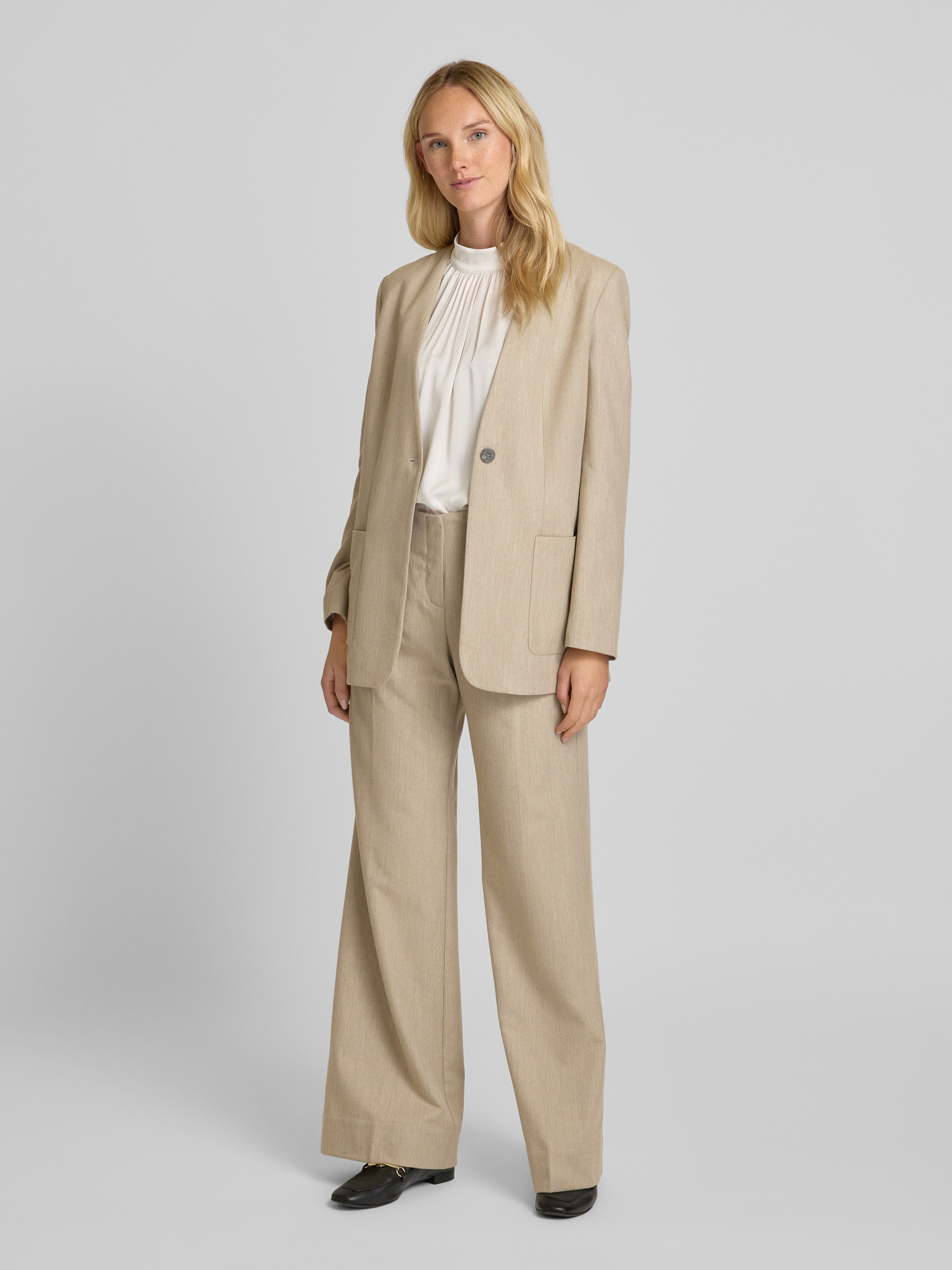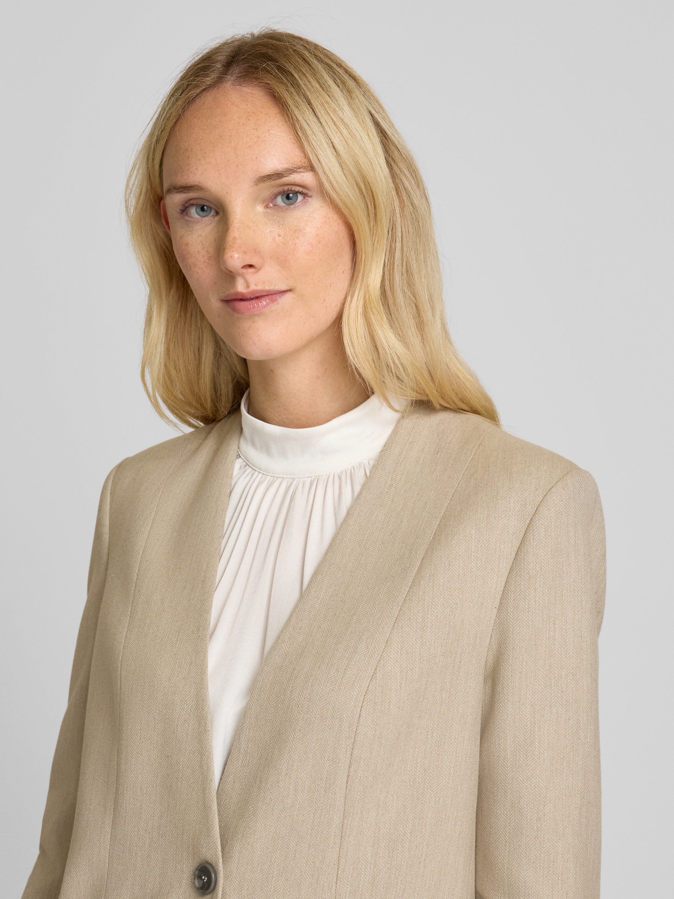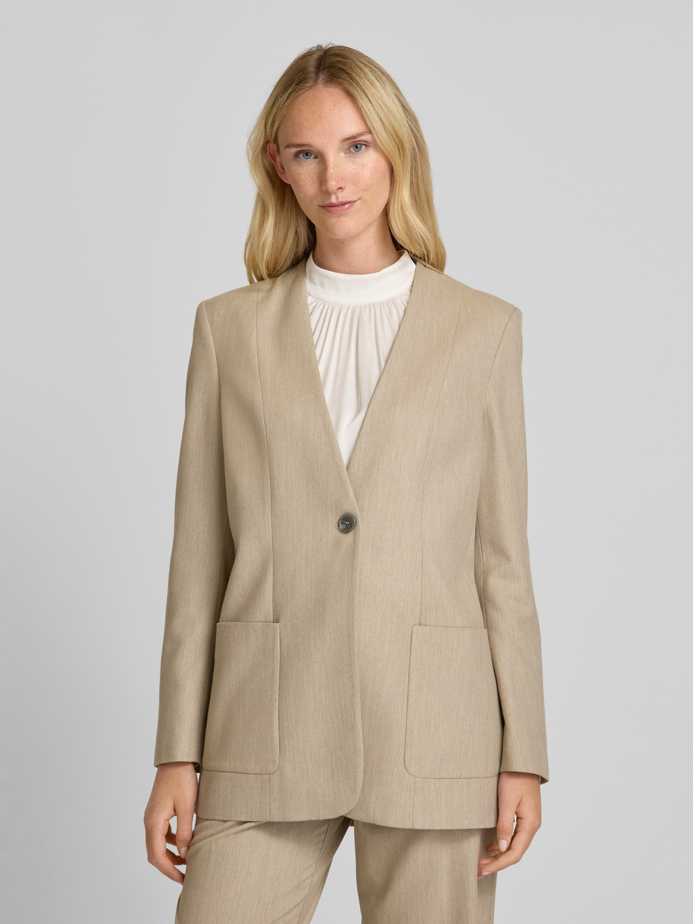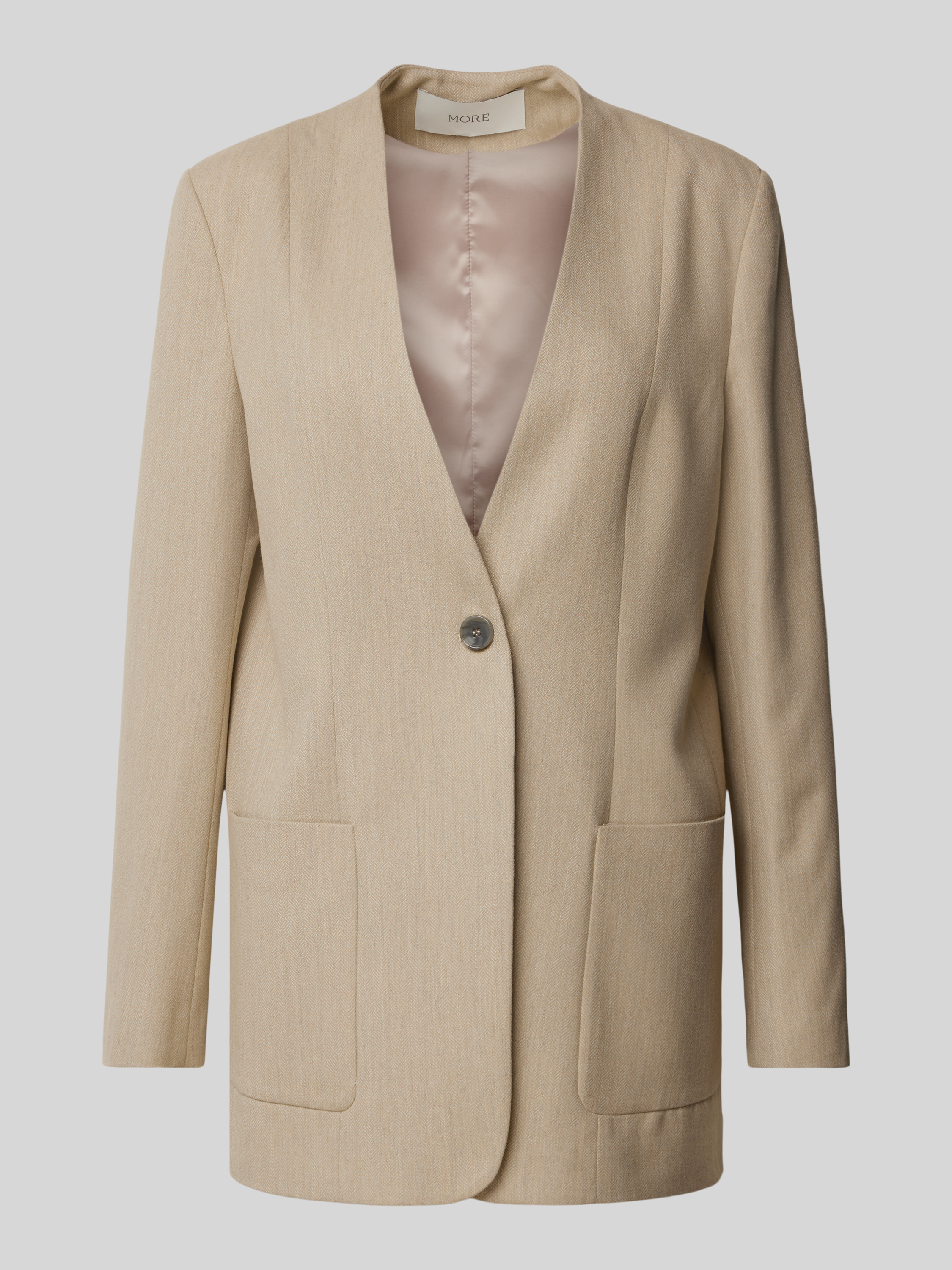 Der Damenblazer von MORE fällt durch seinen geraden Schnitt und den klassischen V-Ausschnitt angenehm ins Auge. Ausgestattet mit aufgesetzten Taschen, verleiht er Outfits eine strukturierte Note. Die Passform sorgt für Bewegungsfreiheit, sodass sich das Modell vielseitig kombinieren lässt.