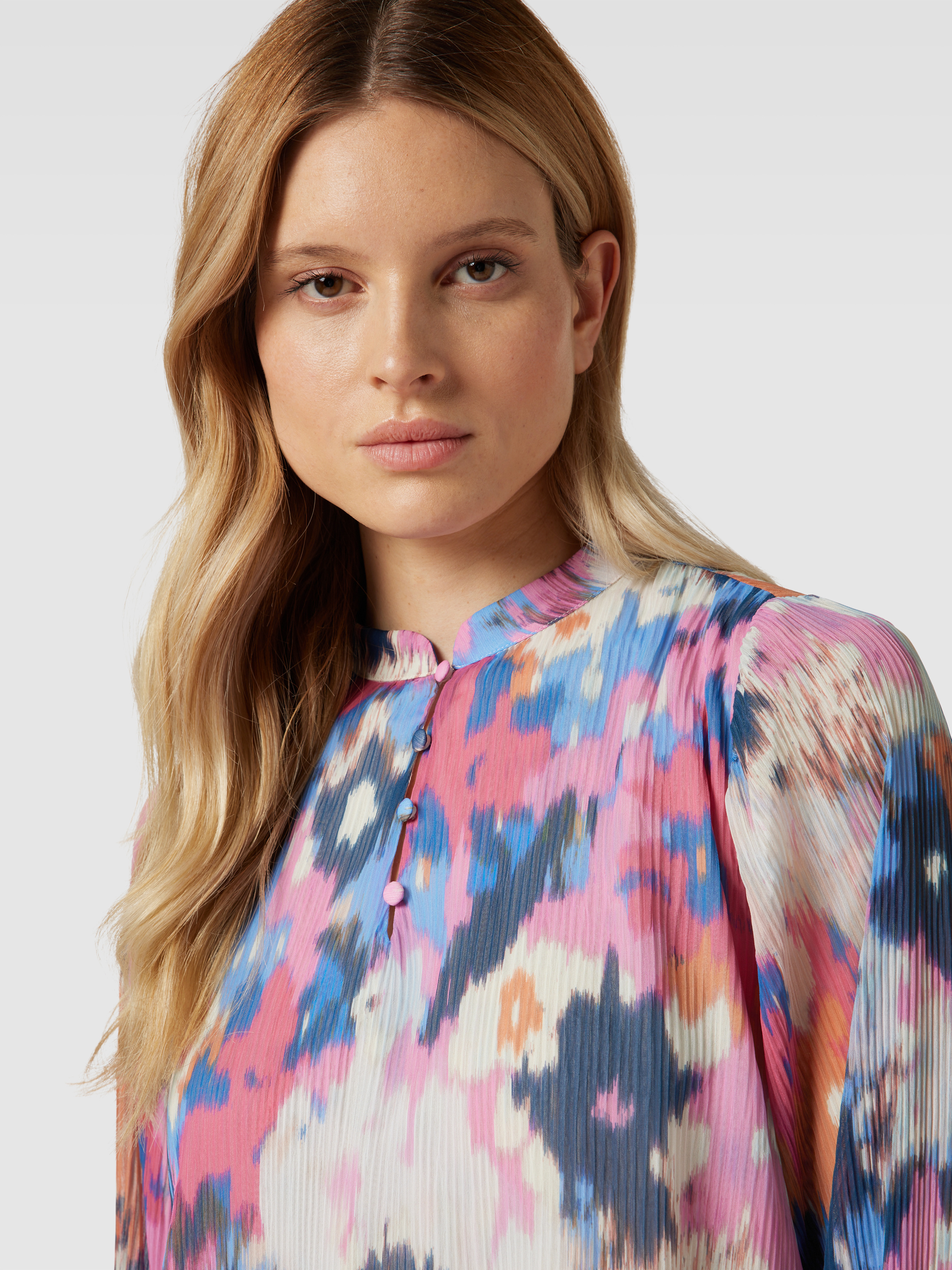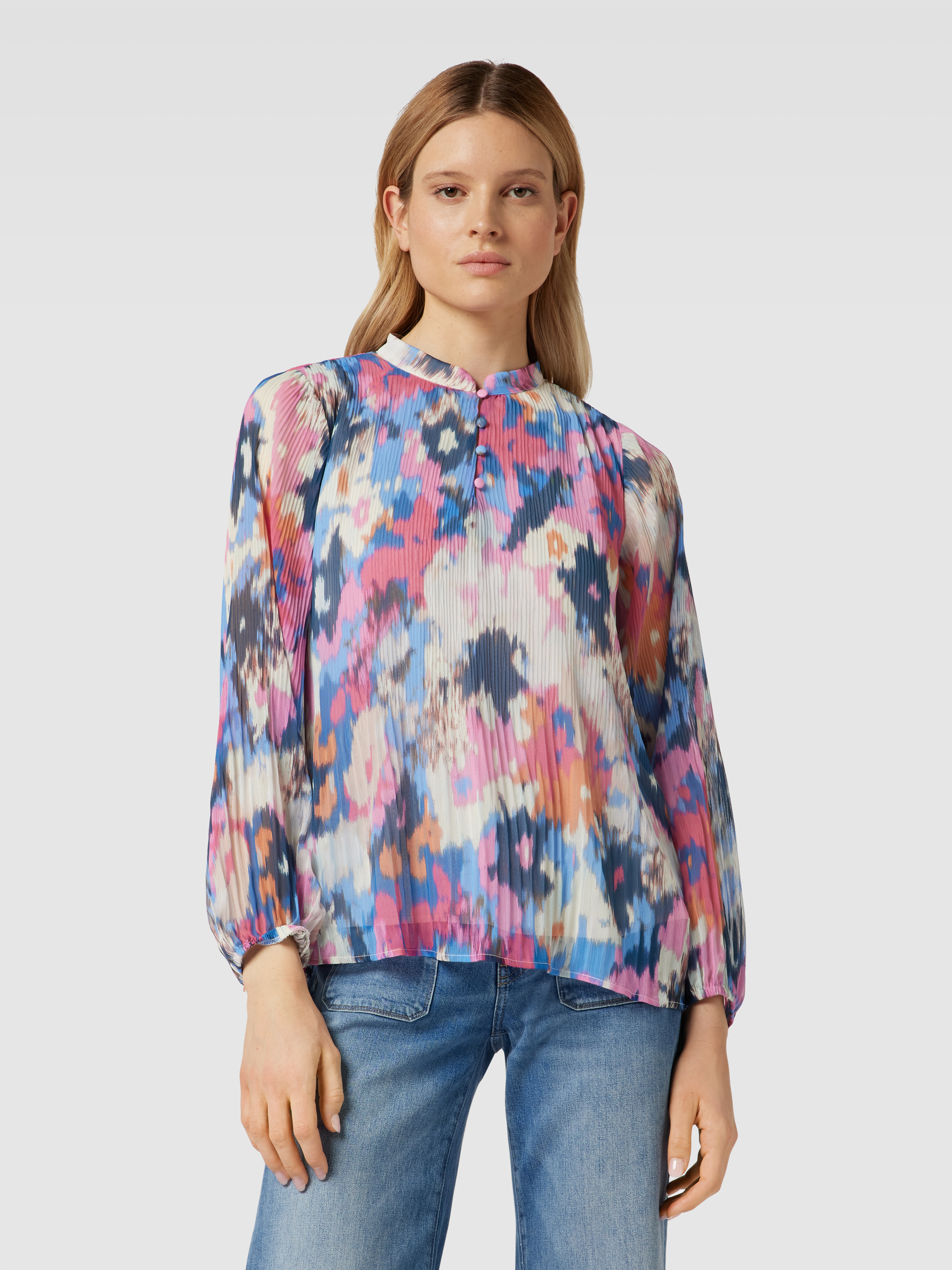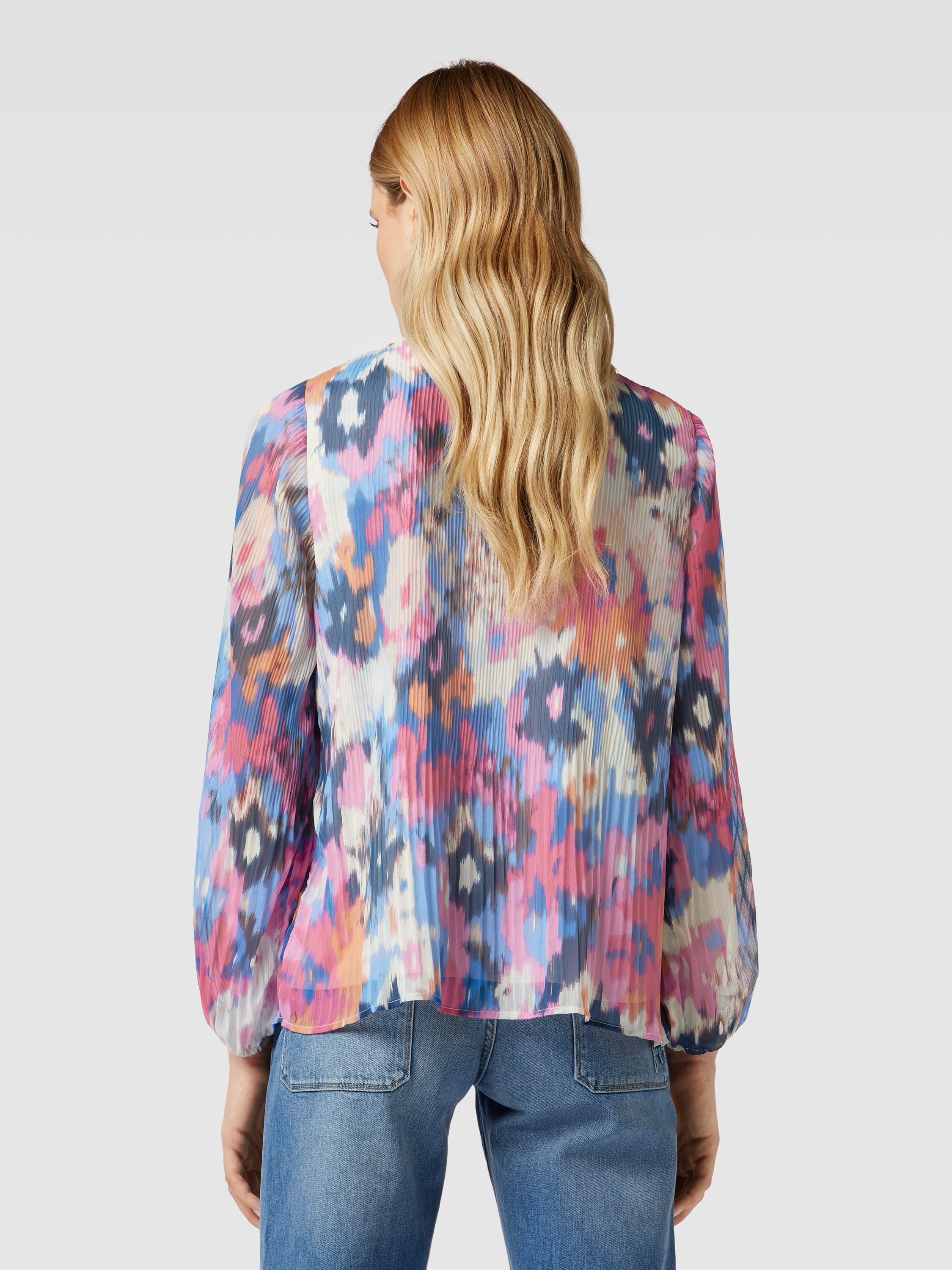 Das Blusenshirt von MORE & MORE kombiniert einen lockeren Schnitt mit einem lebendigen Allover-Print, der jedem Outfit eine besondere Note verleiht. Der Rundhalsausschnitt und die elastischen Ärmelabschlüsse sorgen für Komfort und Bewegungsfreiheit. Es eignet sich ideal für vielseitige Looks im Alltag.