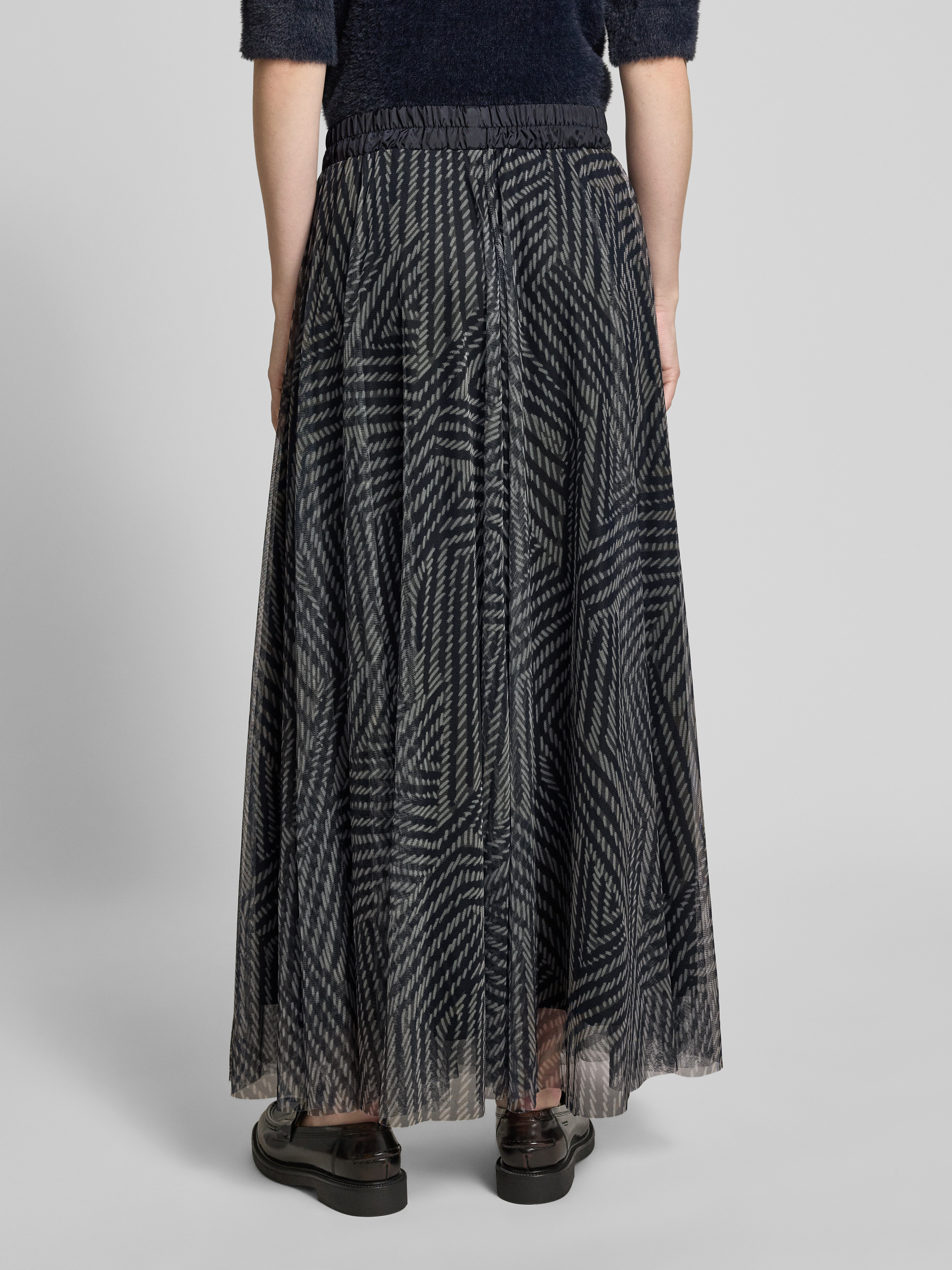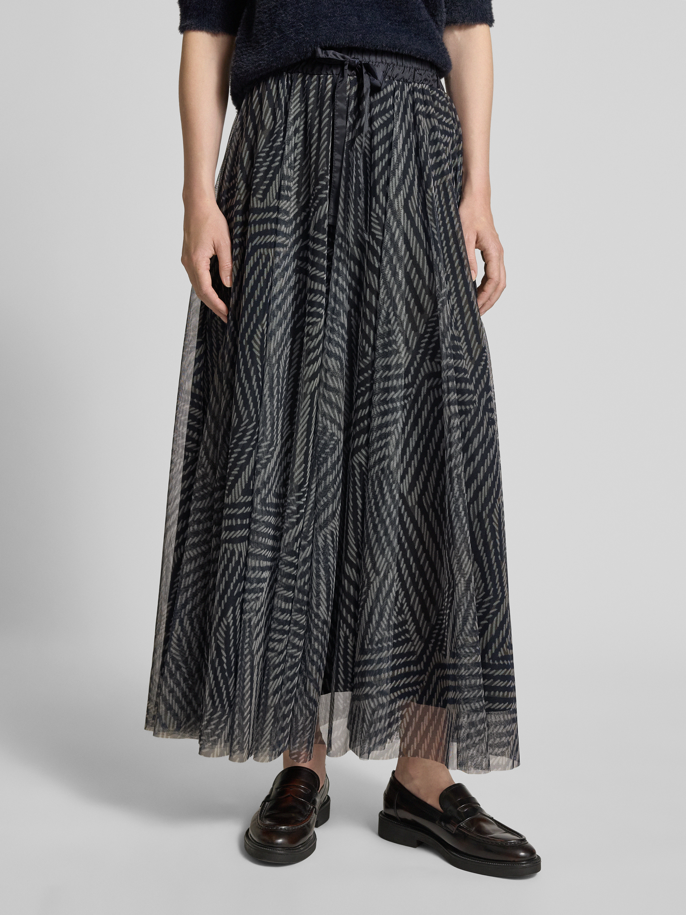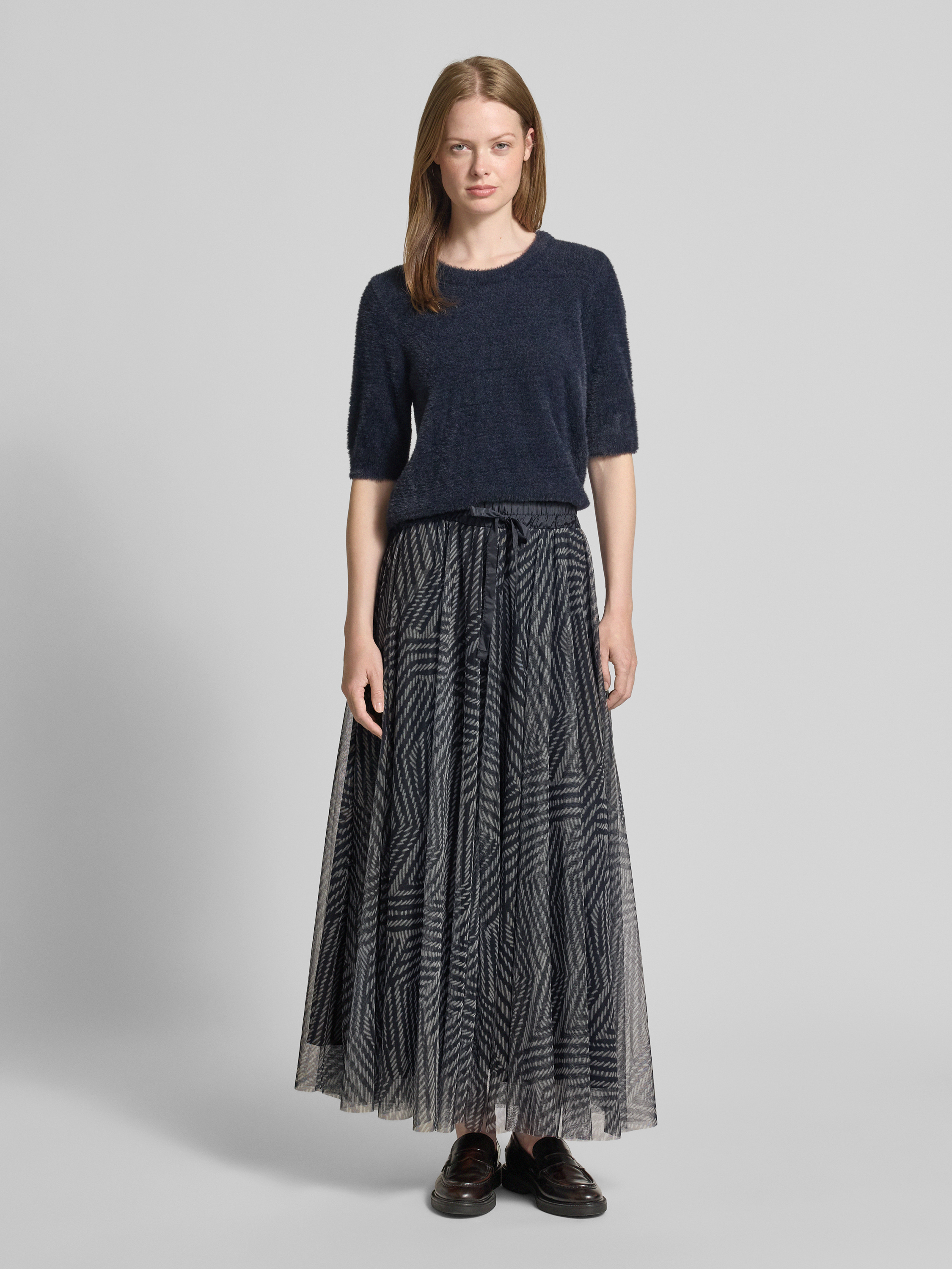 Der Maxirock von More & More fällt durch seinen fließenden Schnitt und die dezente Falten-Optik auf, wodurch sich ein angenehmes Tragegefühl ergibt. Dank des elastischen Bundes sitzt das Modell flexibel, während der blickdichte Unterrock für zusätzlichen Komfort sorgt. Eine feine Zierschleife rundet das Gesamtbild ab.