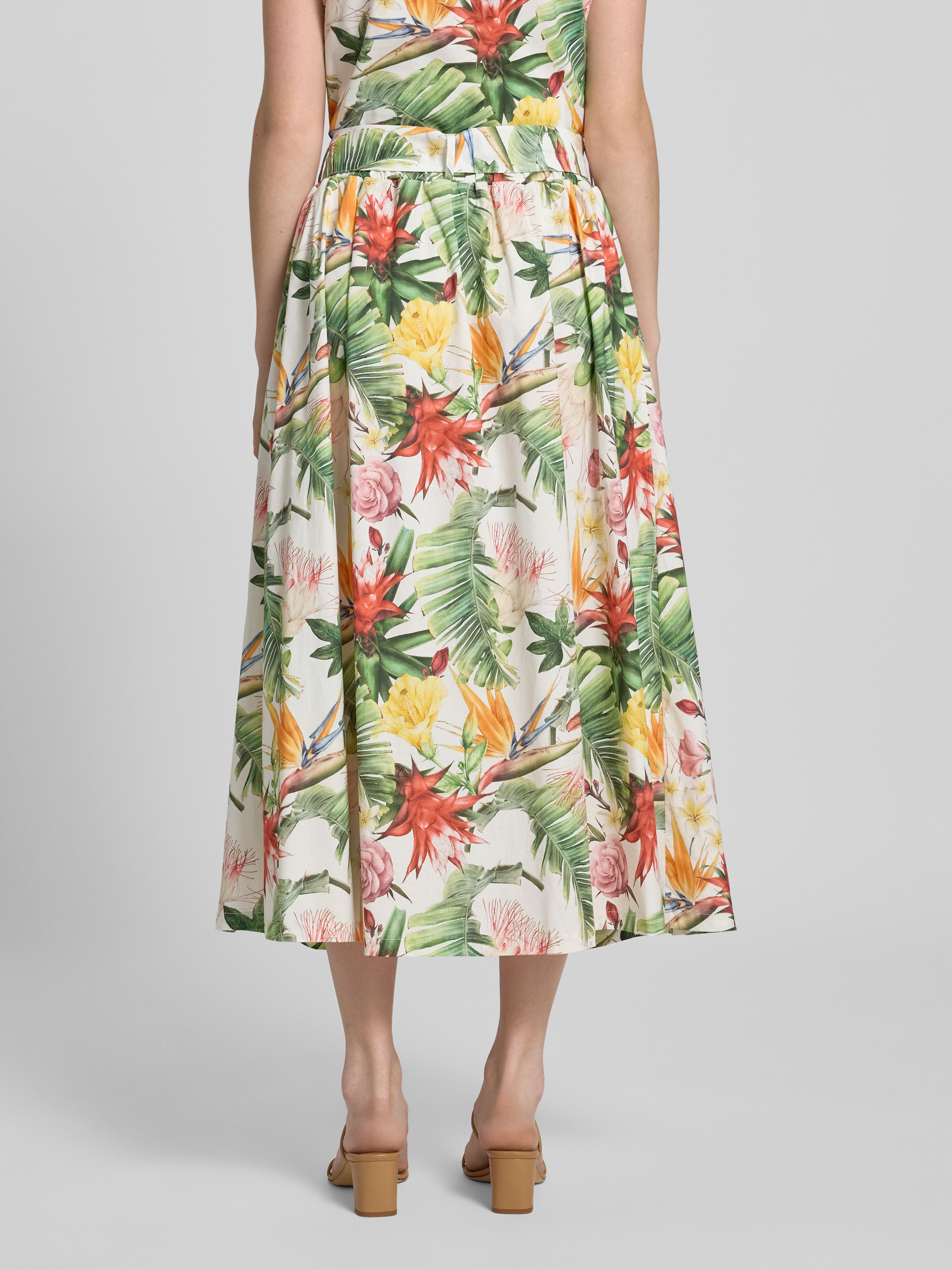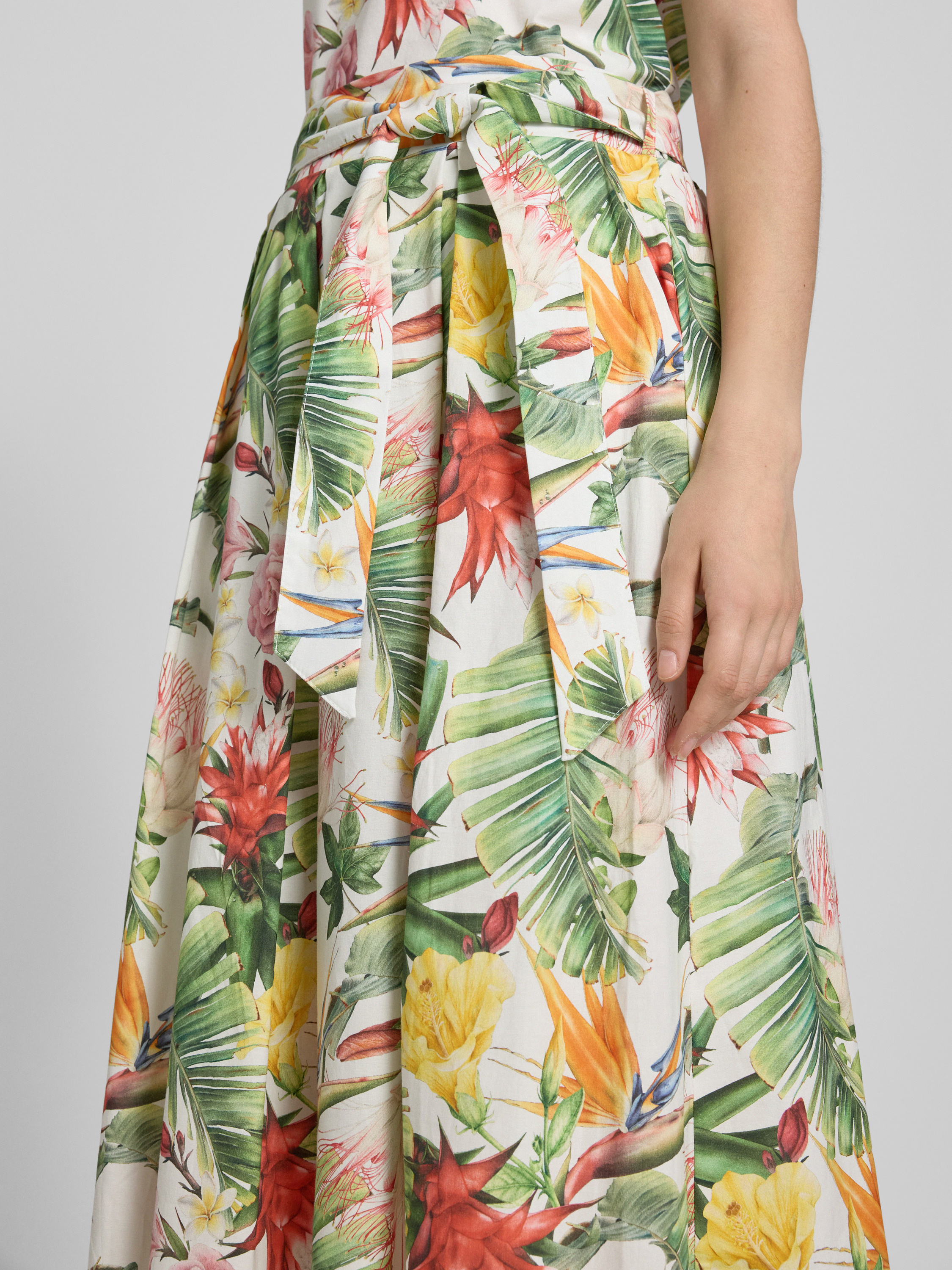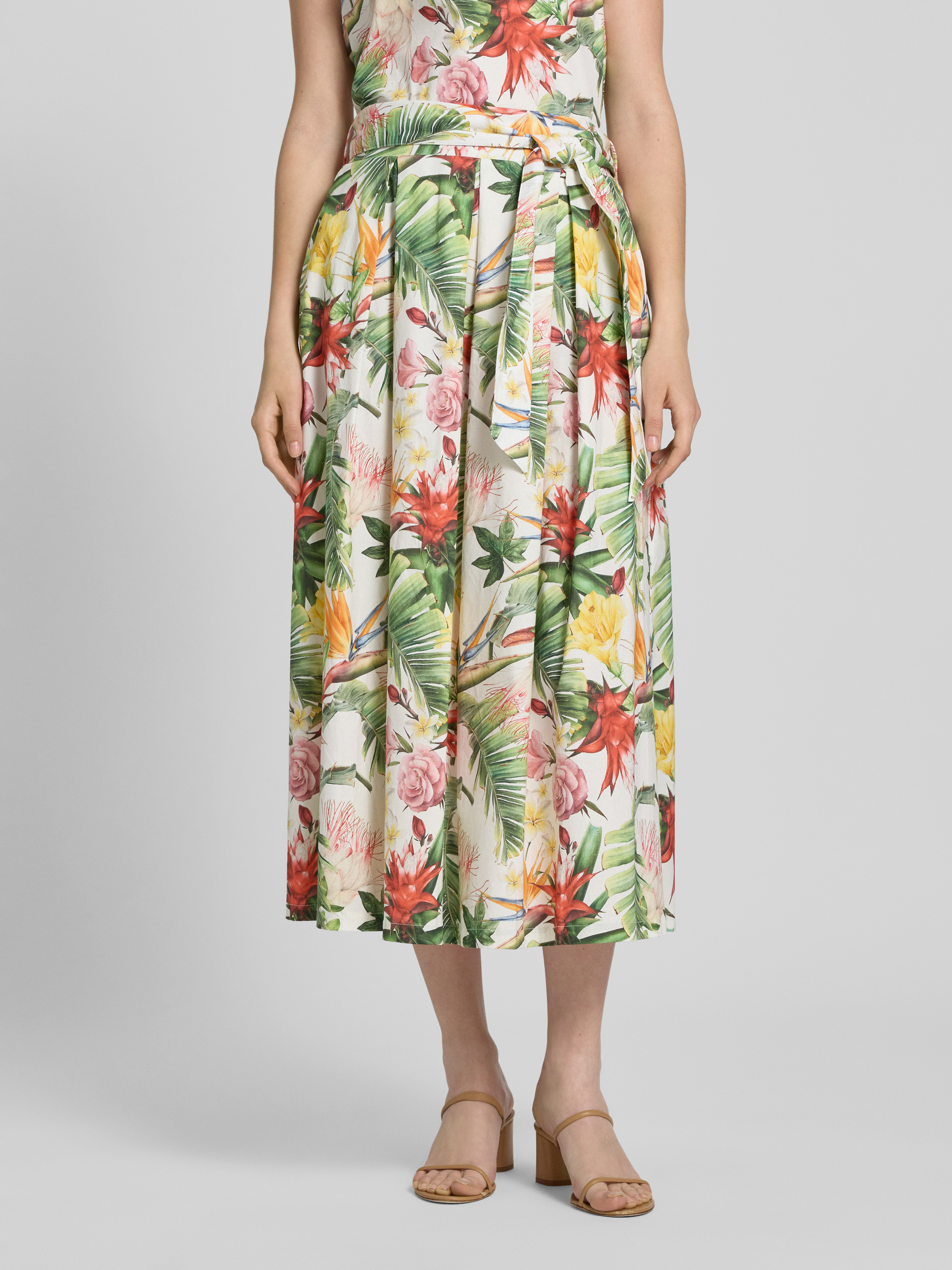 Der Midirock von More & More, gefertigt aus einem Baumwoll-Mix mit Stretch-Anteil, vereint Komfort und Eleganz. Die A-Linie sorgt für eine schmeichelhafte Silhouette, während der elastische Bund mit Bindegürtel eine flexible Passform ermöglicht. Ein vielseitiges Stück für unterschiedliche Anlässe.