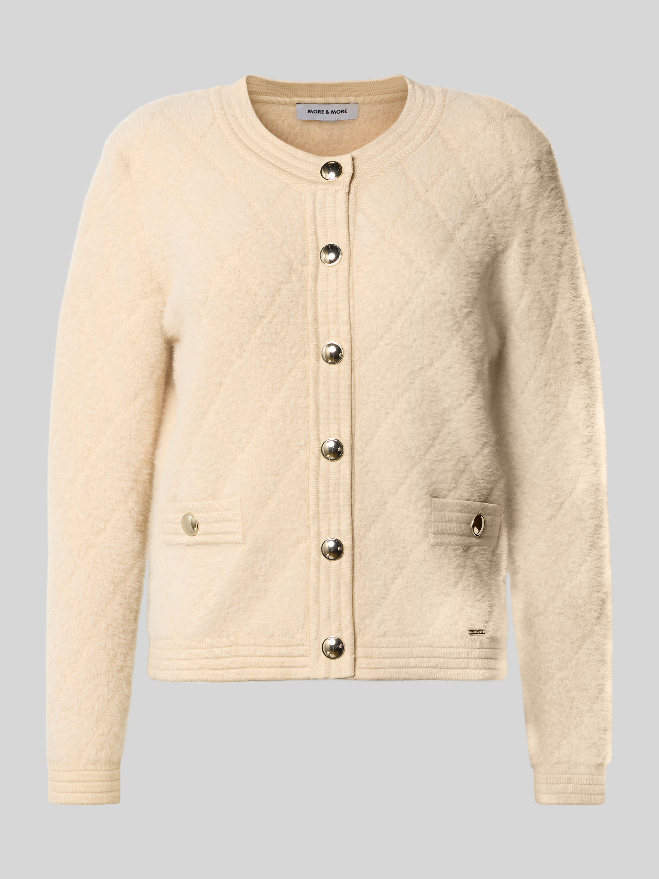 Die Strickjacke von More & More fällt durch ihren angenehmen Viskose-Mix auf, wodurch sie sich weich anfühlt und angenehm trägt. Durch den Regular Fit entsteht eine legere Silhouette, während praktische Eingrifftaschen im Alltag nützlich sind. Dezente Details runden das Gesamtbild ab.