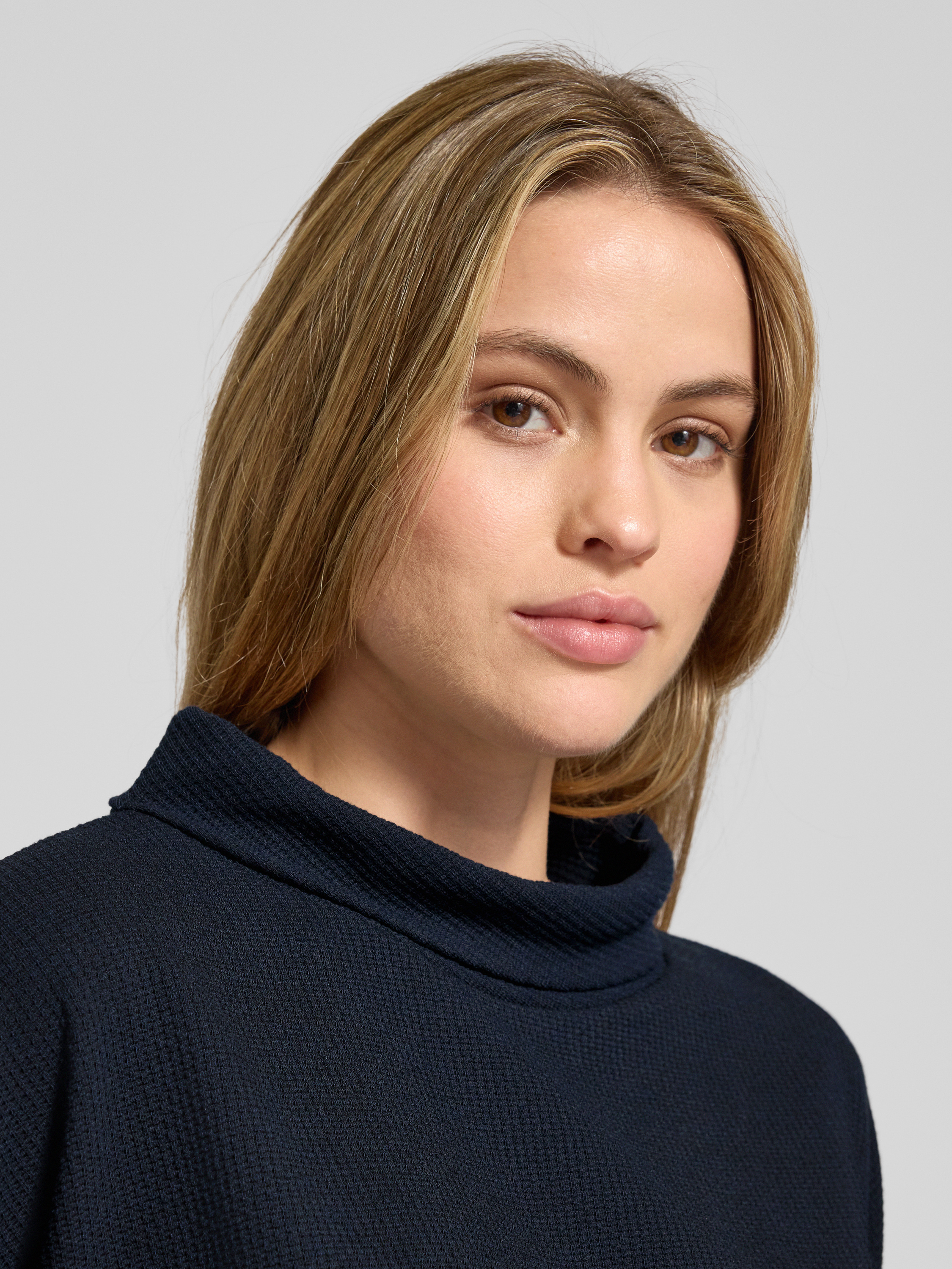 Das Damen Sweatshirt von More & More kombiniert einen lockeren Schnitt mit einem markanten Stehkragen und bringt so angenehme Bewegungsfreiheit in den Alltag. Durch das Strukturmuster entsteht eine interessante Optik, während der Material-Mix mit Viskose-Anteil angenehm auf der Haut liegt. Ideal, wenn ein unkomplizierter Stil gefragt ist.