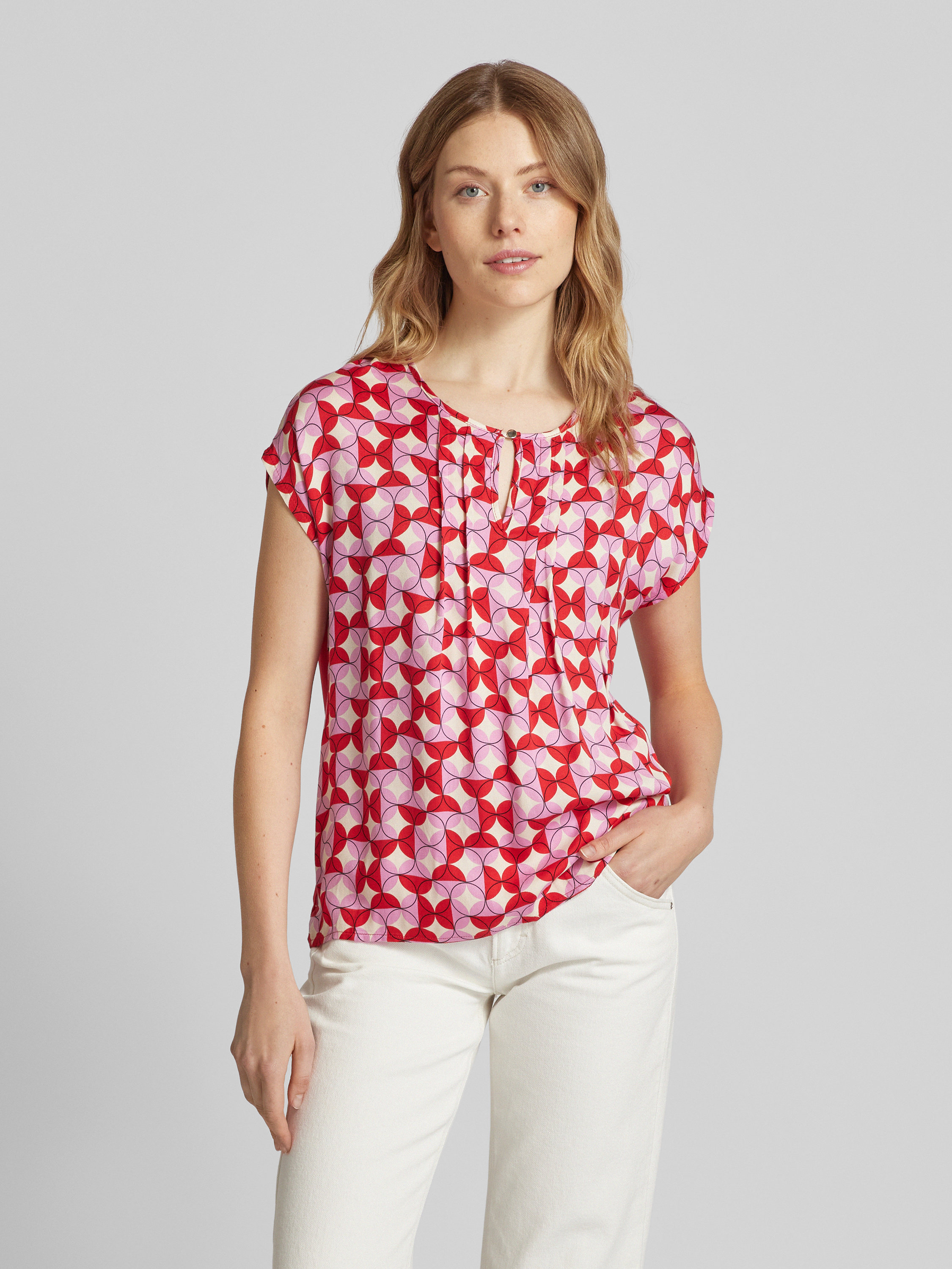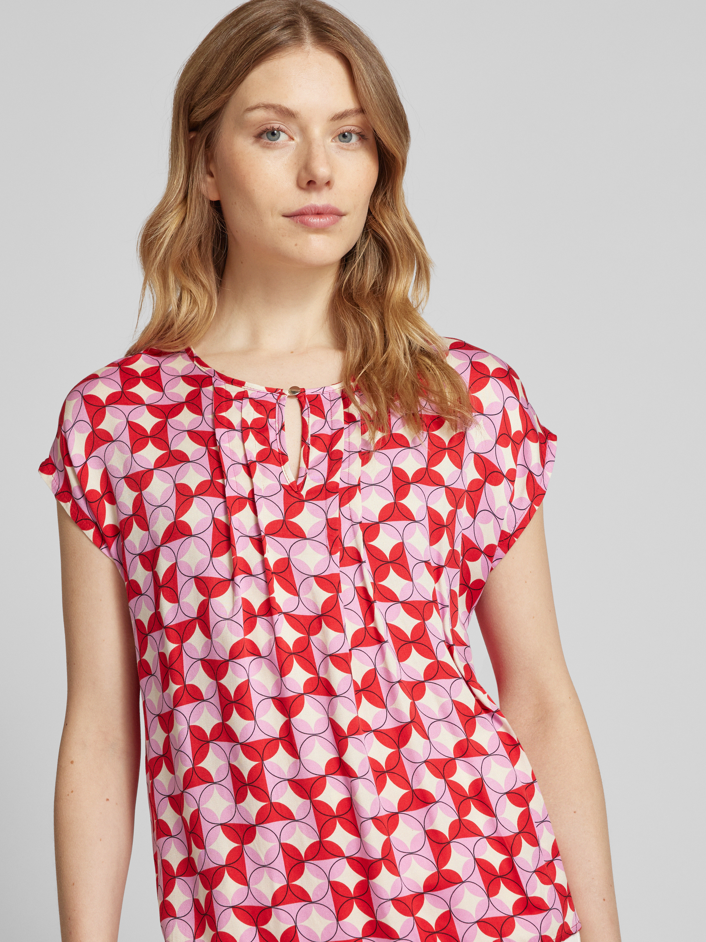 More & MoreT-Shirt aus Viskose-Mix mit Schlüsselloch-Ausschnitt in rot