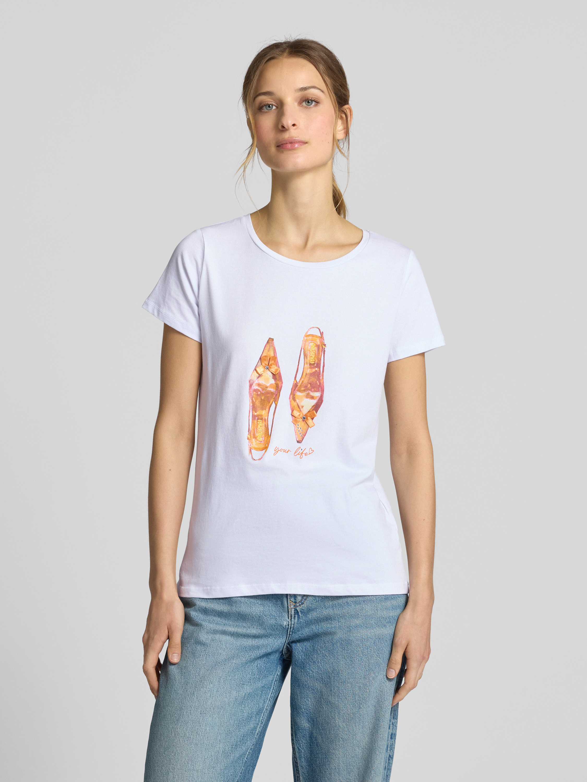 Das Damen T-Shirt von More & More kombiniert einen Baumwoll-Elasthan-Mix mit einem lässigen Regular Fit, wodurch es angenehm zu tragen ist. Der Rundhalsausschnitt und der kreative Motiv-Print verleihen jedem Outfit eine besondere Note. Ideal für den Alltag und vielseitig kombinierbar.