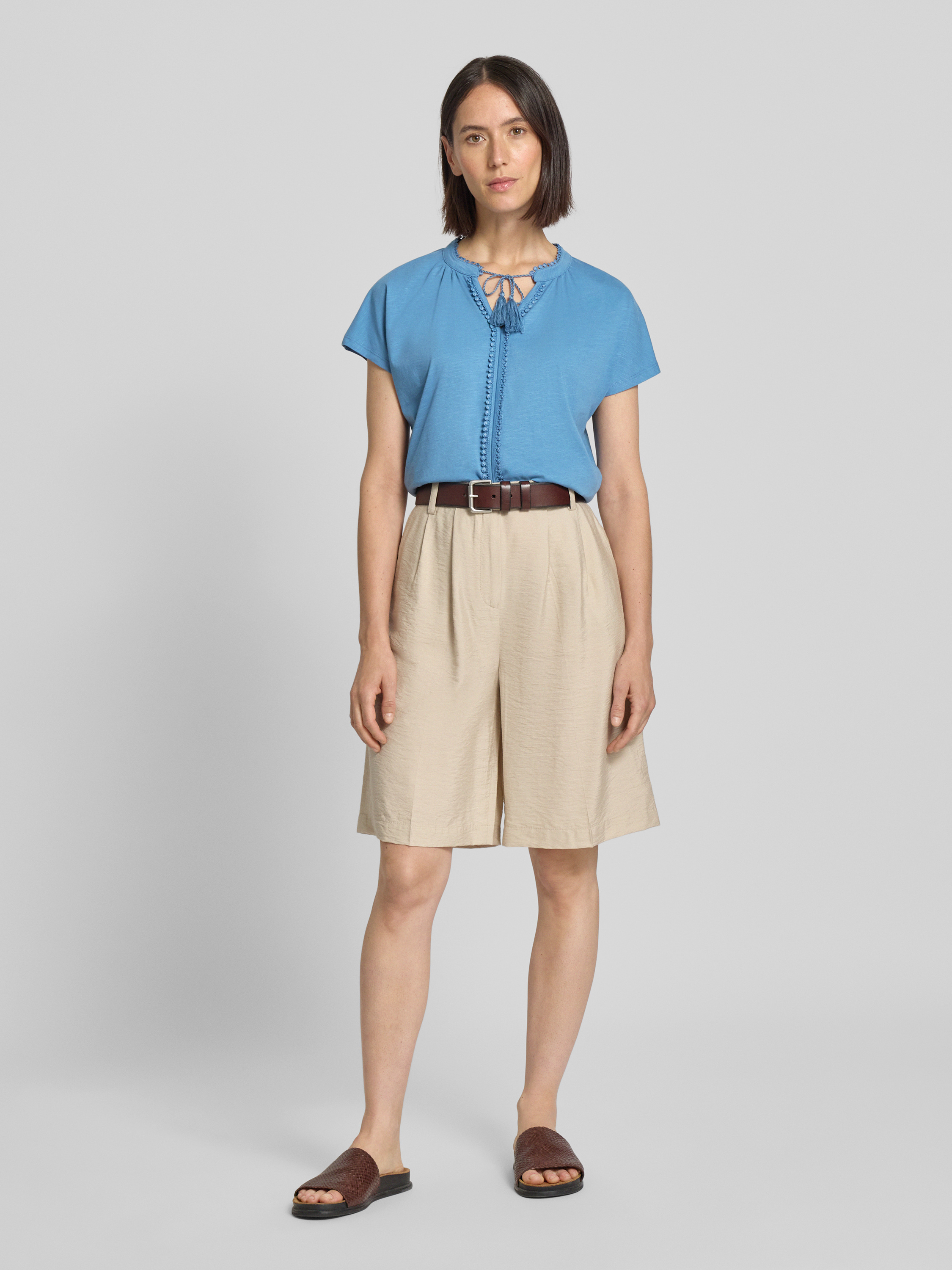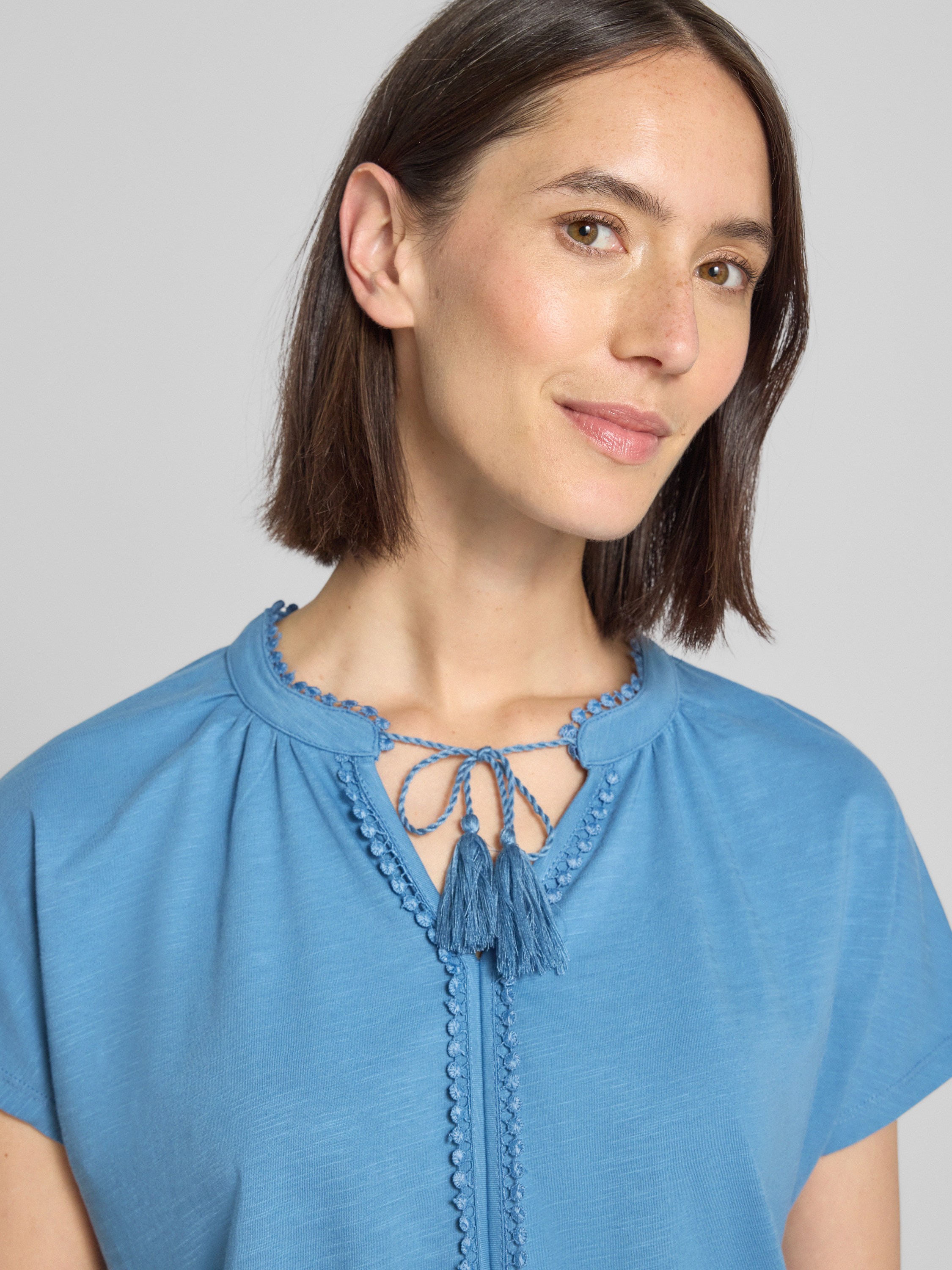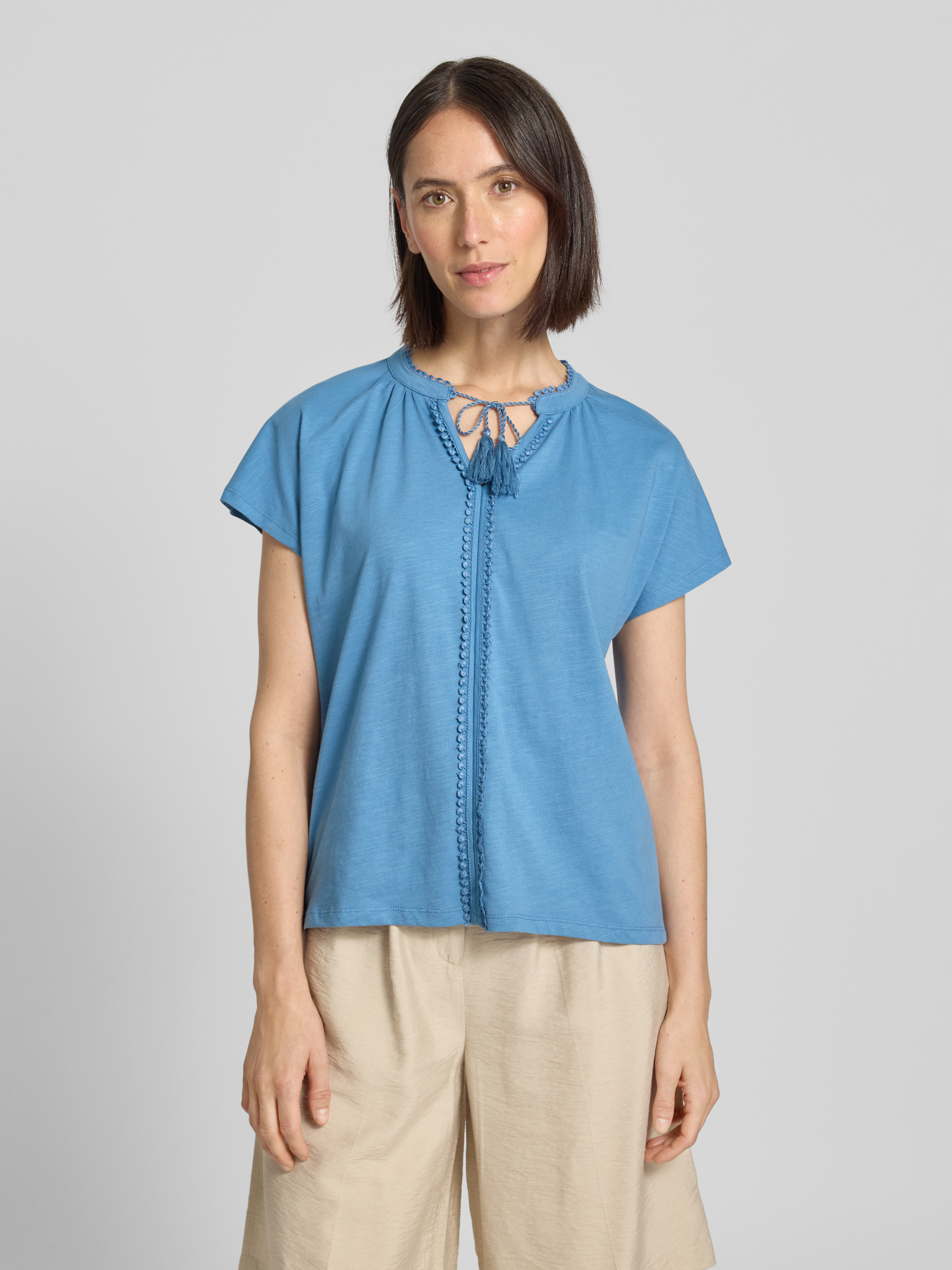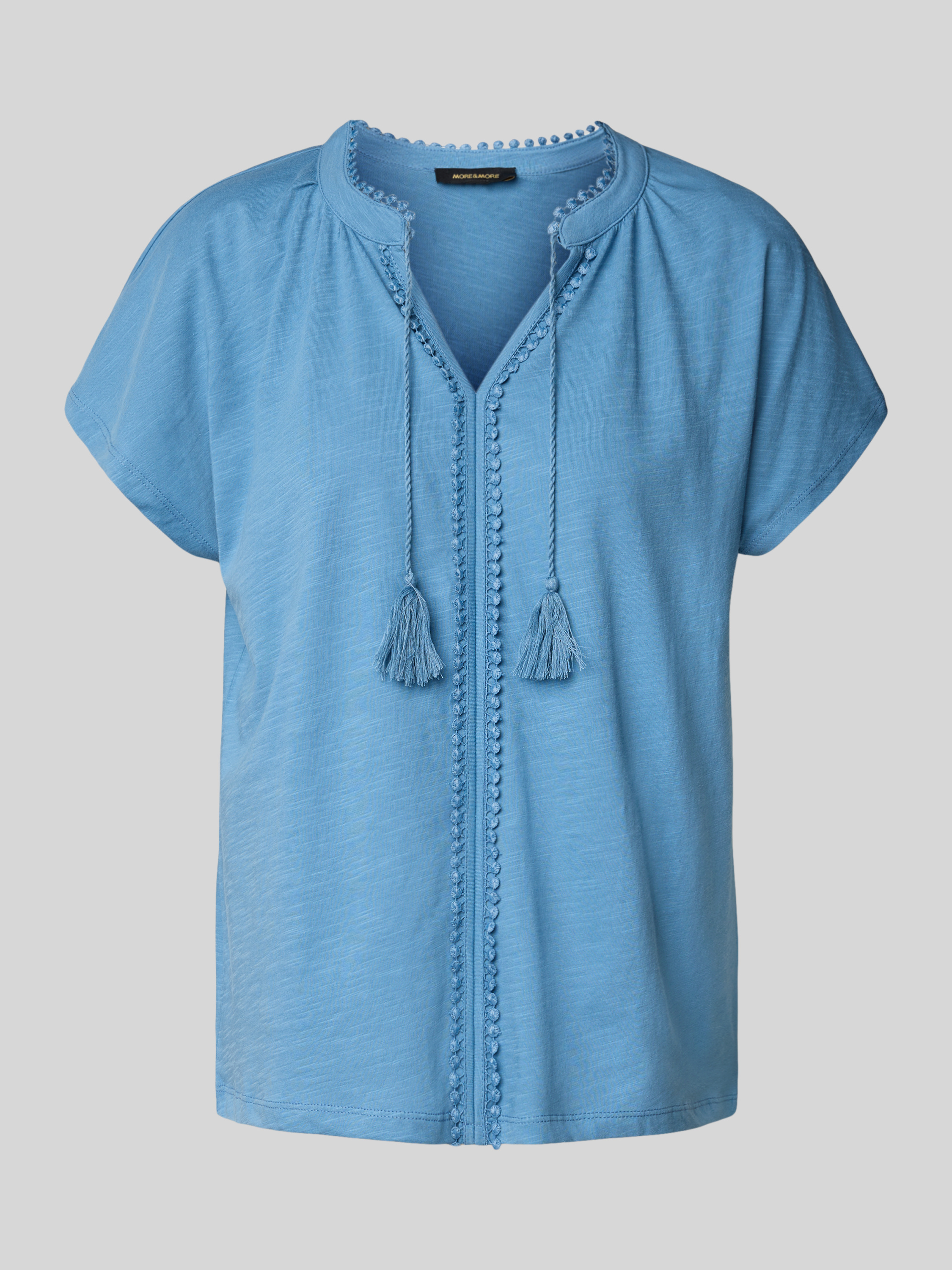More & MoreT-Shirt mit Tunikakragen und Häkelspitze in rauchblau