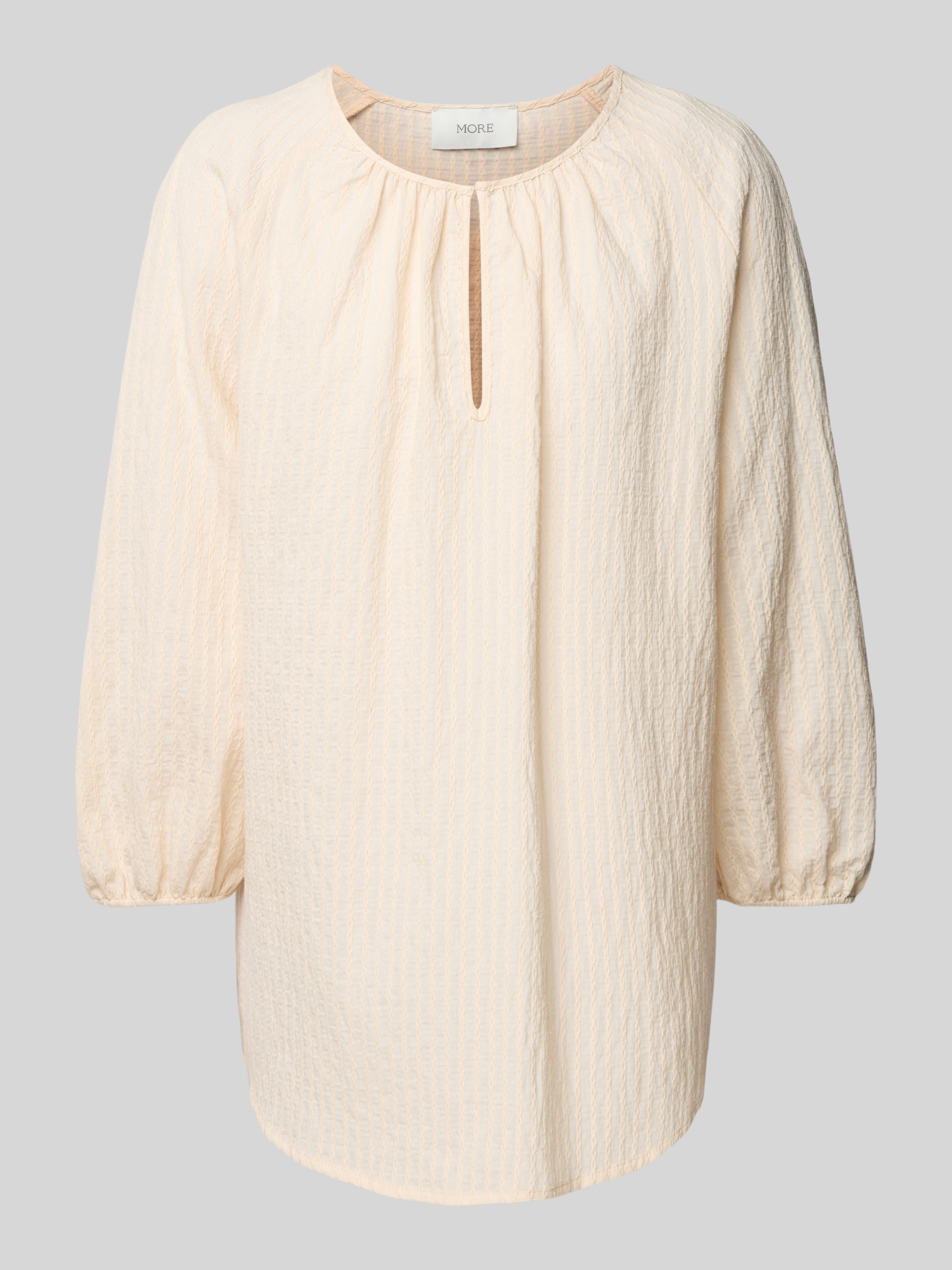Die Bluse von MORE überzeugt durch ihren entspannten Schnitt und einen angenehmen Baumwoll-Mix, der für ein komfortables Tragegefühl sorgt. Der Schlüsselloch-Ausschnitt und das feine Strukturmuster verleihen dem Modell eine dezente Eleganz. Raglanärmel in 3/4-Länge runden das Design stilvoll ab.