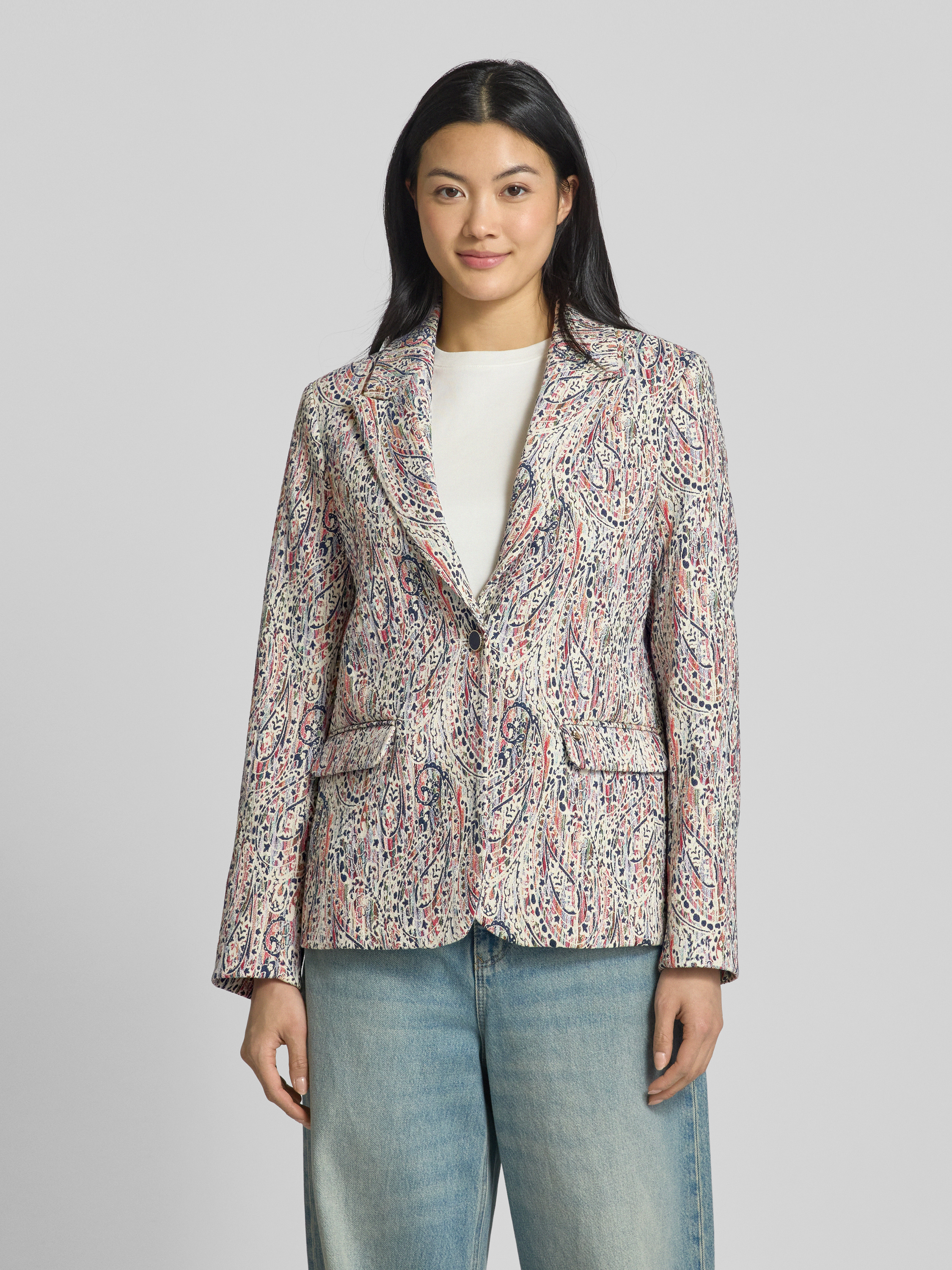 Der Blazer mit Reverskragen Modell 'LINEA PALOMA' von MOS MOSH verbindet einen elastischen Material-Mix mit Baumwoll-Anteil und einem geraden Schnitt, was Bewegungsfreiheit und Komfort ermöglicht. Der klassische Reverskragen verleiht dem Design zeitlose Eleganz. Ideal für vielseitige, stilvolle Kombinationen.