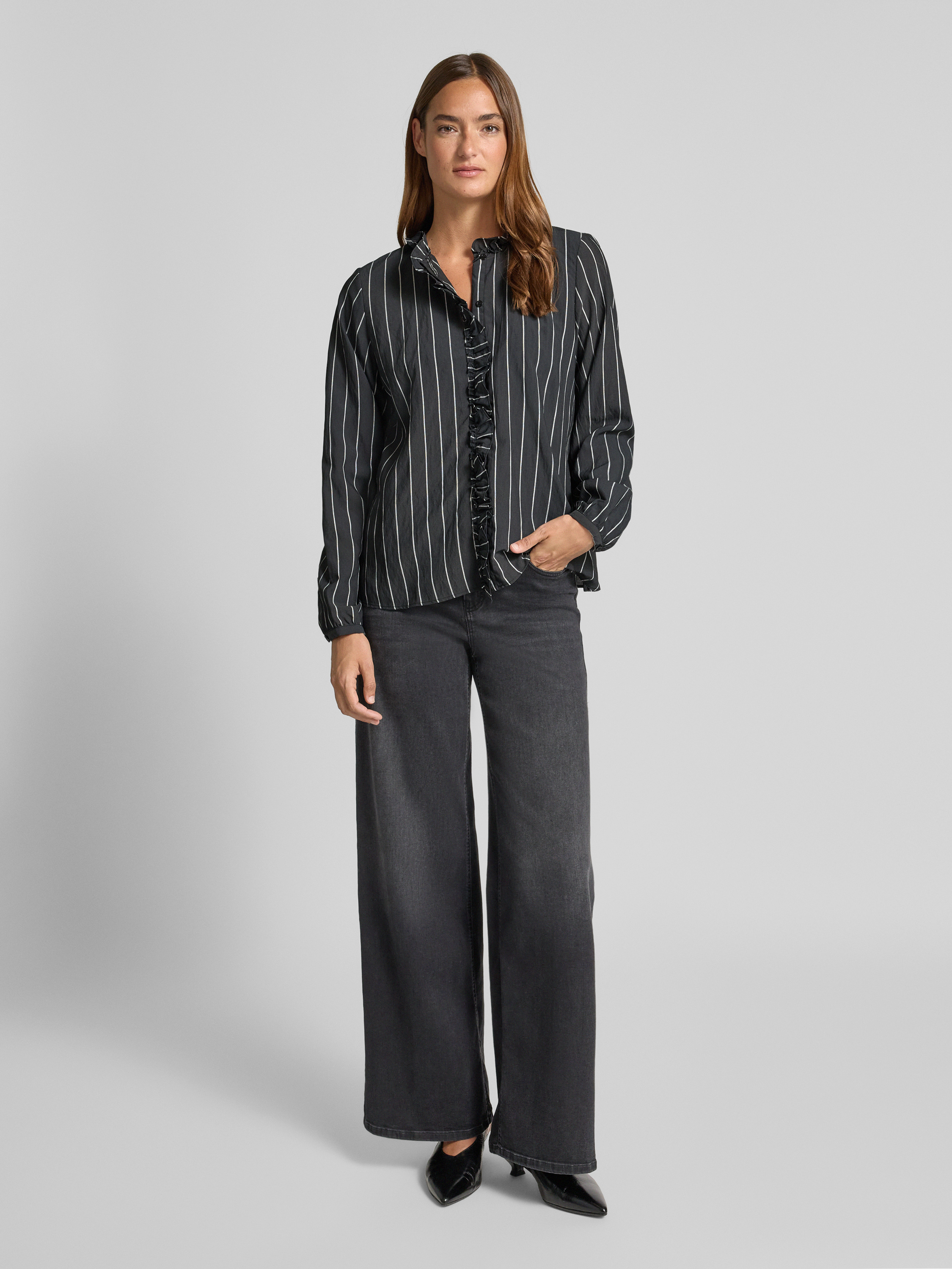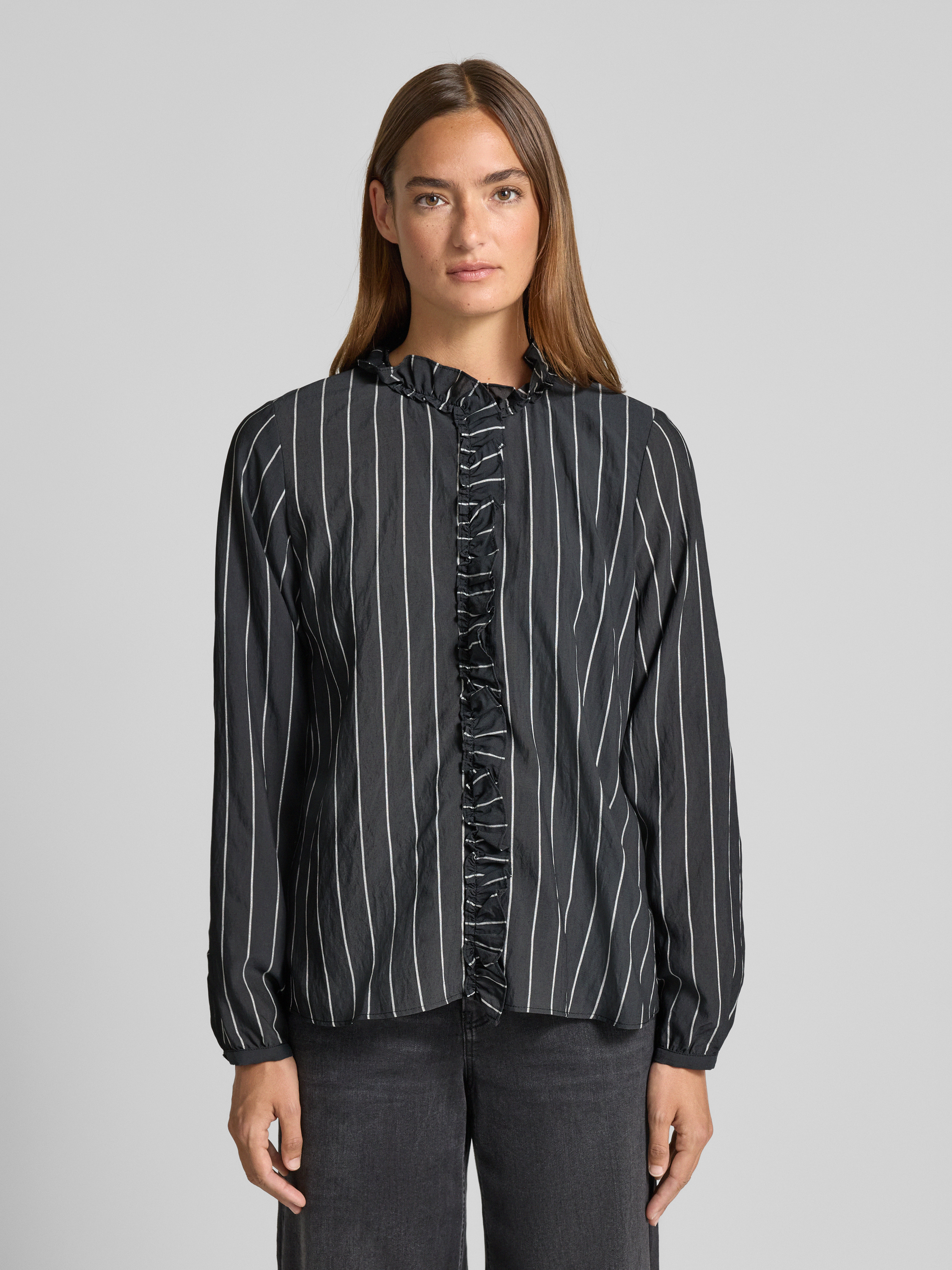 MOS MOSHBluse aus Viskose-Mix mit Rüschen Modell 'Billy' in dunkelgrau