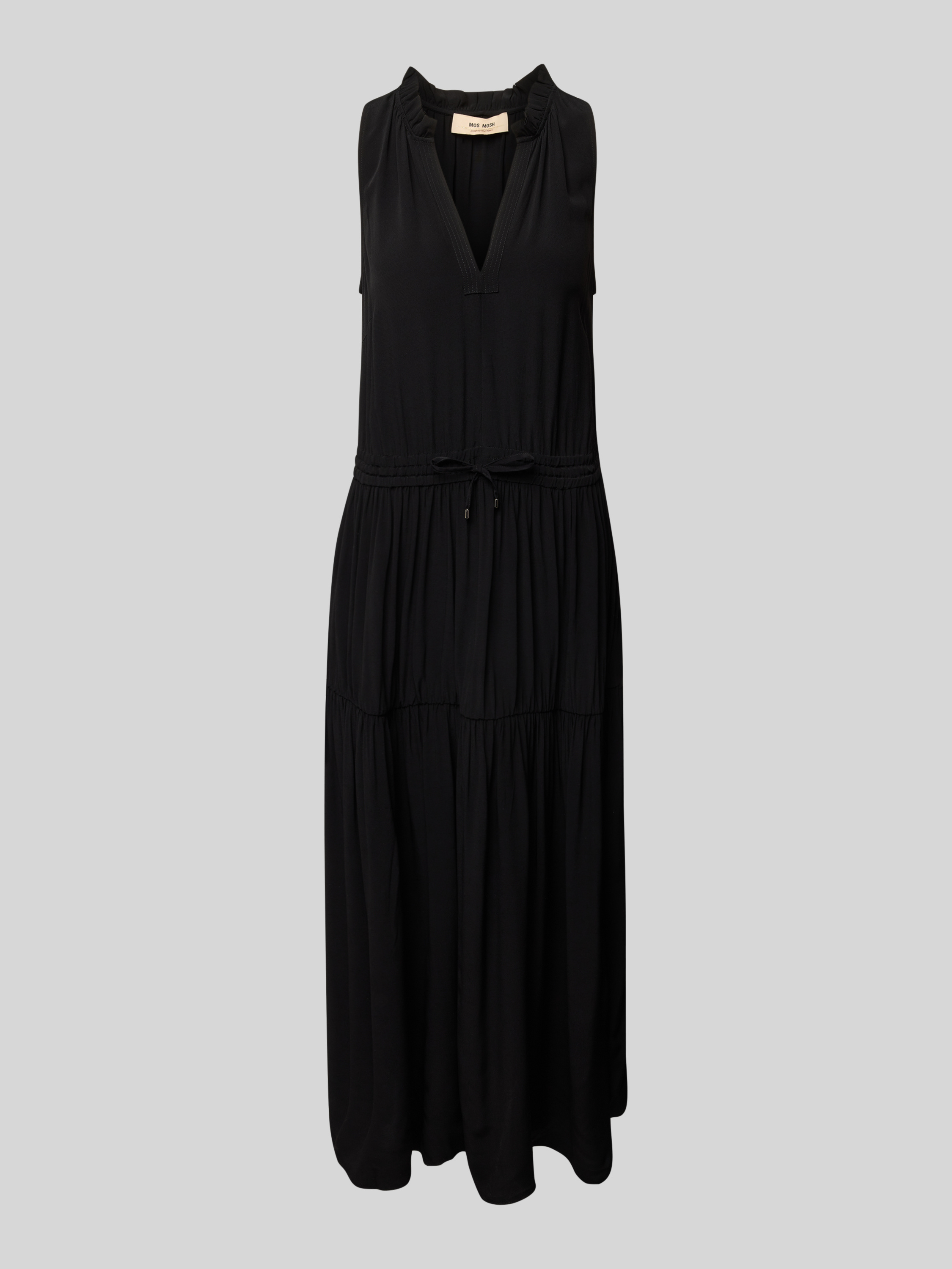 Das Maxikleid von MOS MOSH, Modell 'Sabri', vereint einen geraden Schnitt mit einem eleganten Tunikakragen und feinen Falten. Aus reiner Viskose gefertigt, bietet es ein angenehmes Tragegefühl. Der Tunnelzug in der Taille und der Stufen-Look sorgen für eine feminine Silhouette.