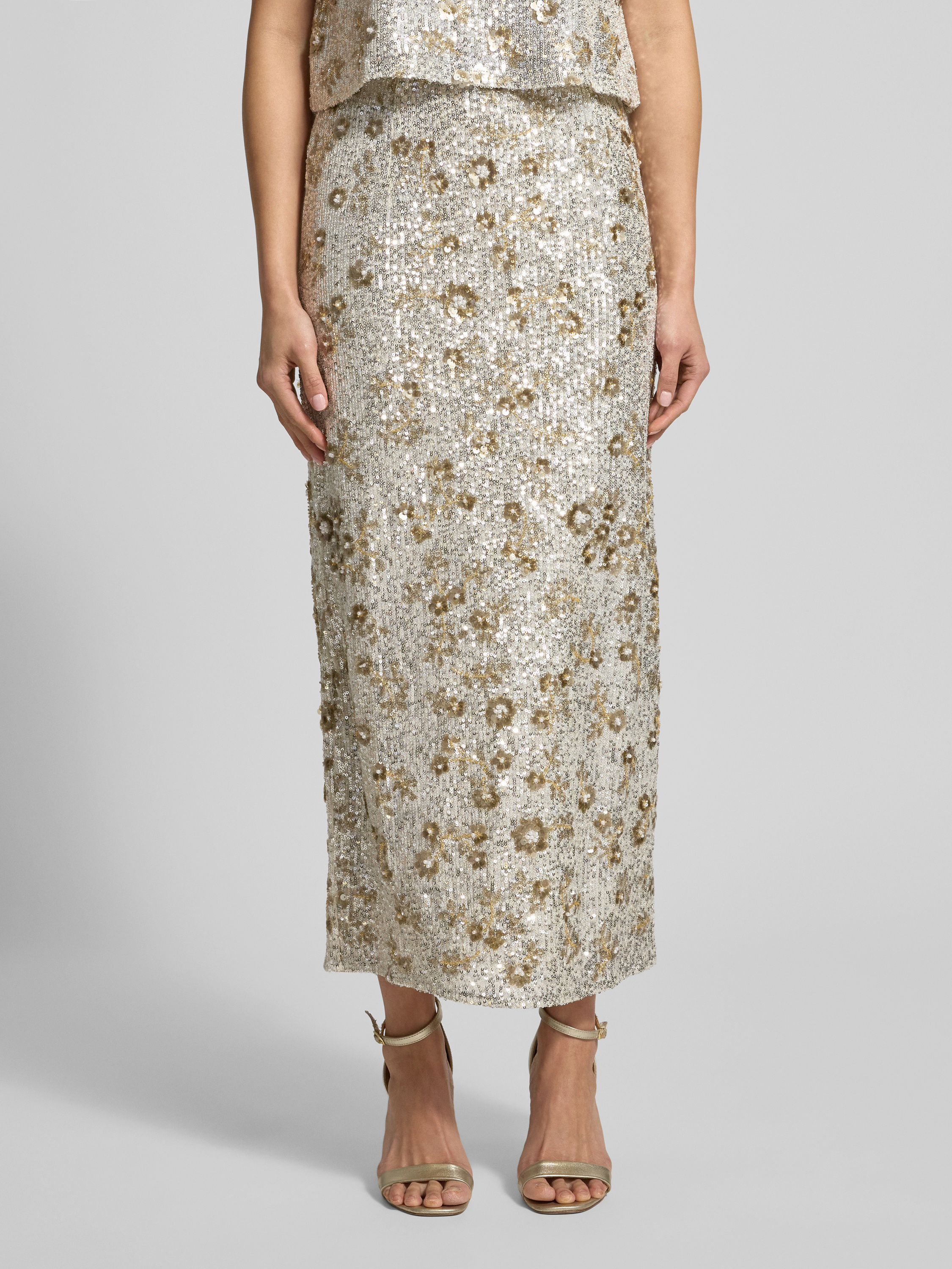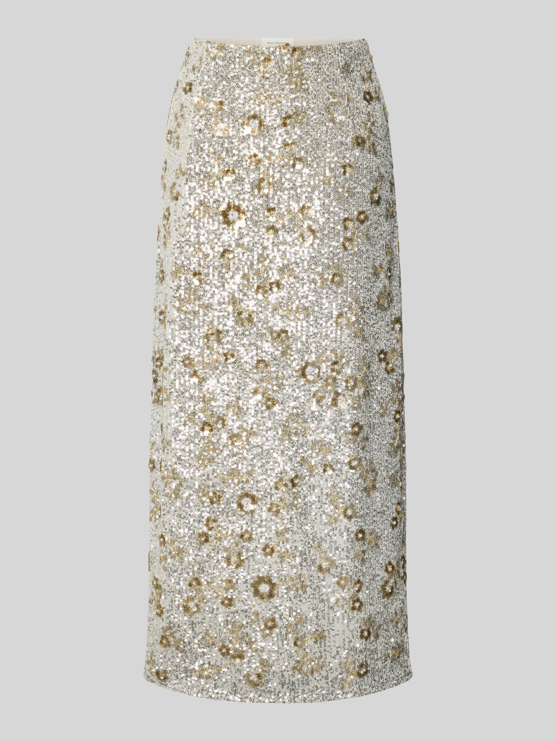 MSCH CopenhagenHigh Waist Maxirock mit Pailletten Modell 'Magnolia' in silber