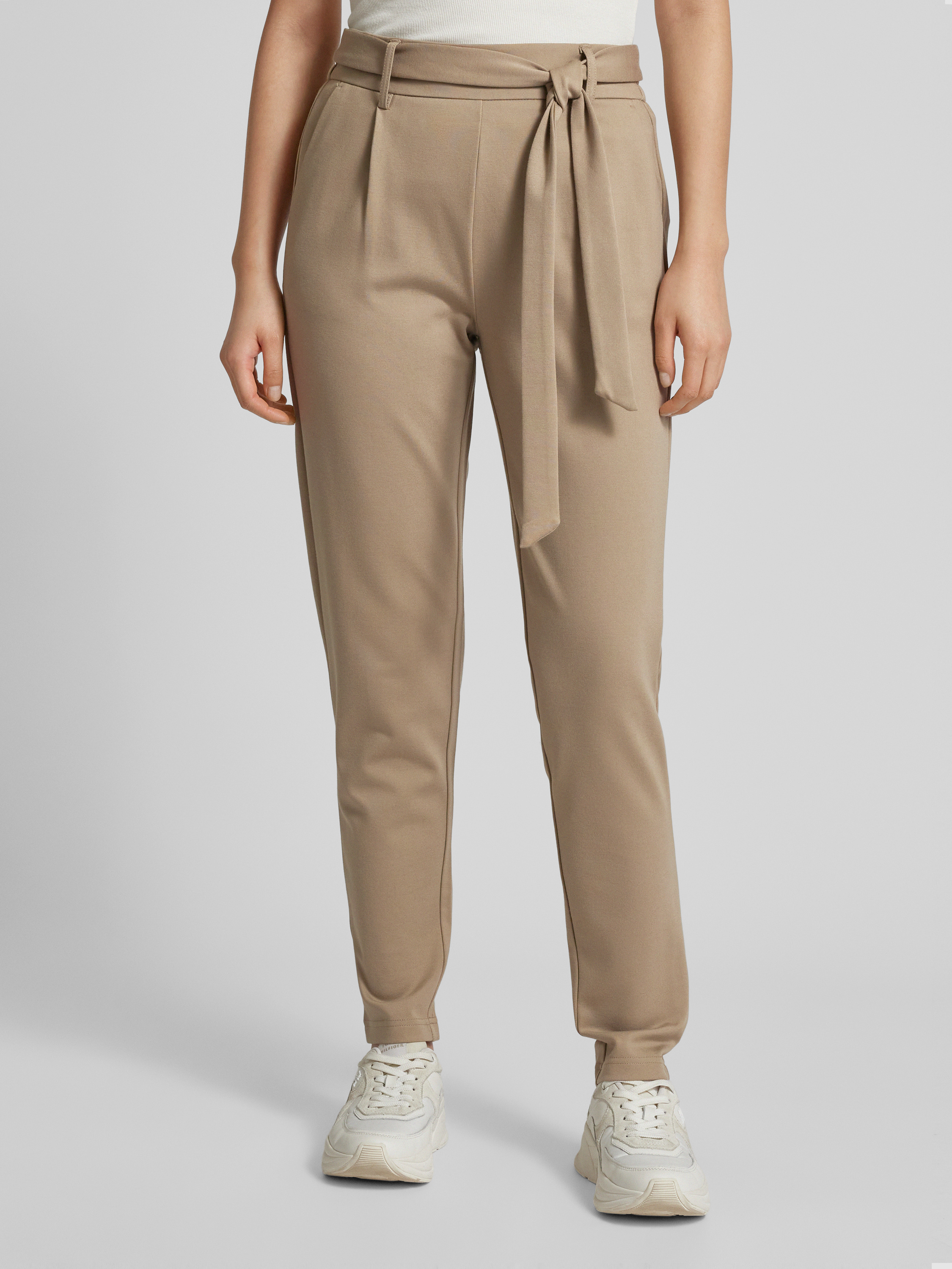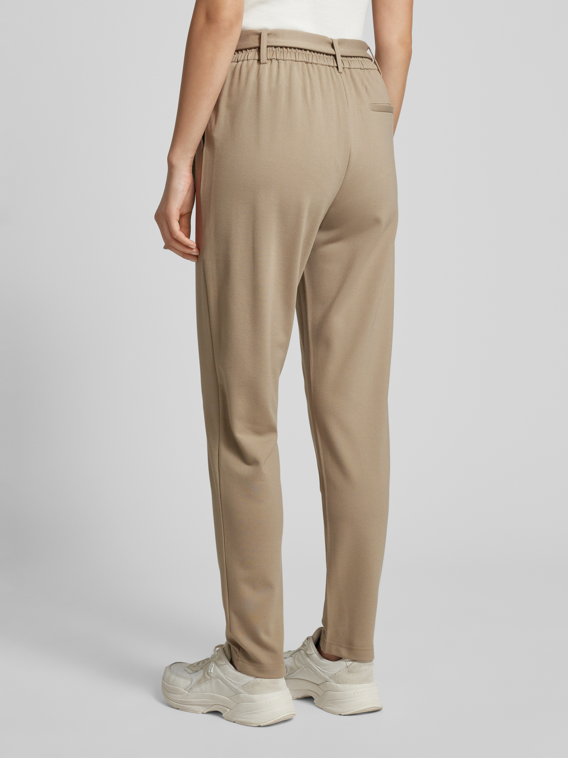 Die Stoffhose von MSCH Copenhagen ist aus einer Viskose-Mix gefertigt. Sie kommt mit gebundenem Gürtel, elastischem Bund und Eingrifftaschen. Der Vorteil an Schlupfhosen: Sie kaschieren breite Hüften und kräftige Oberschenkel.