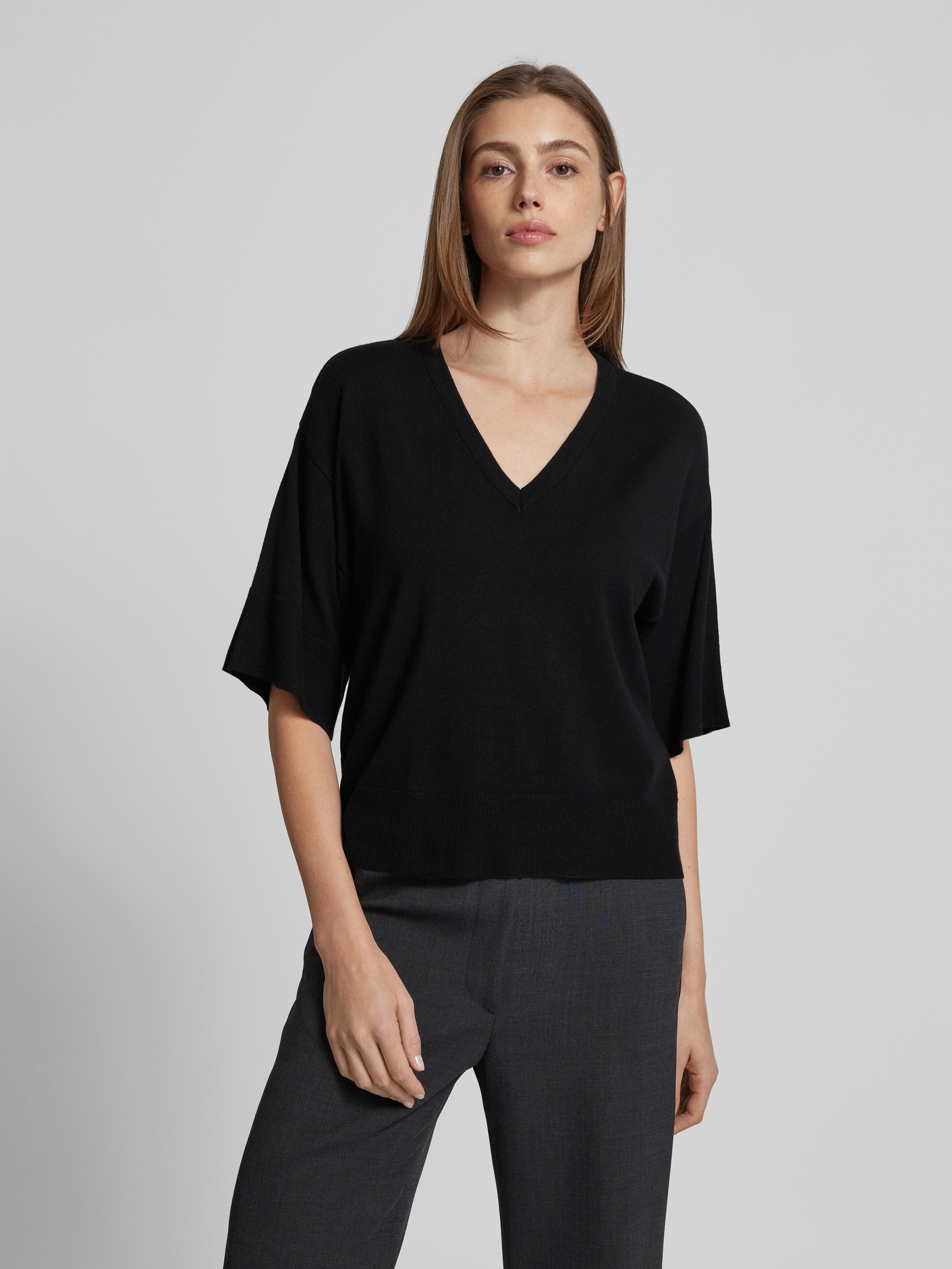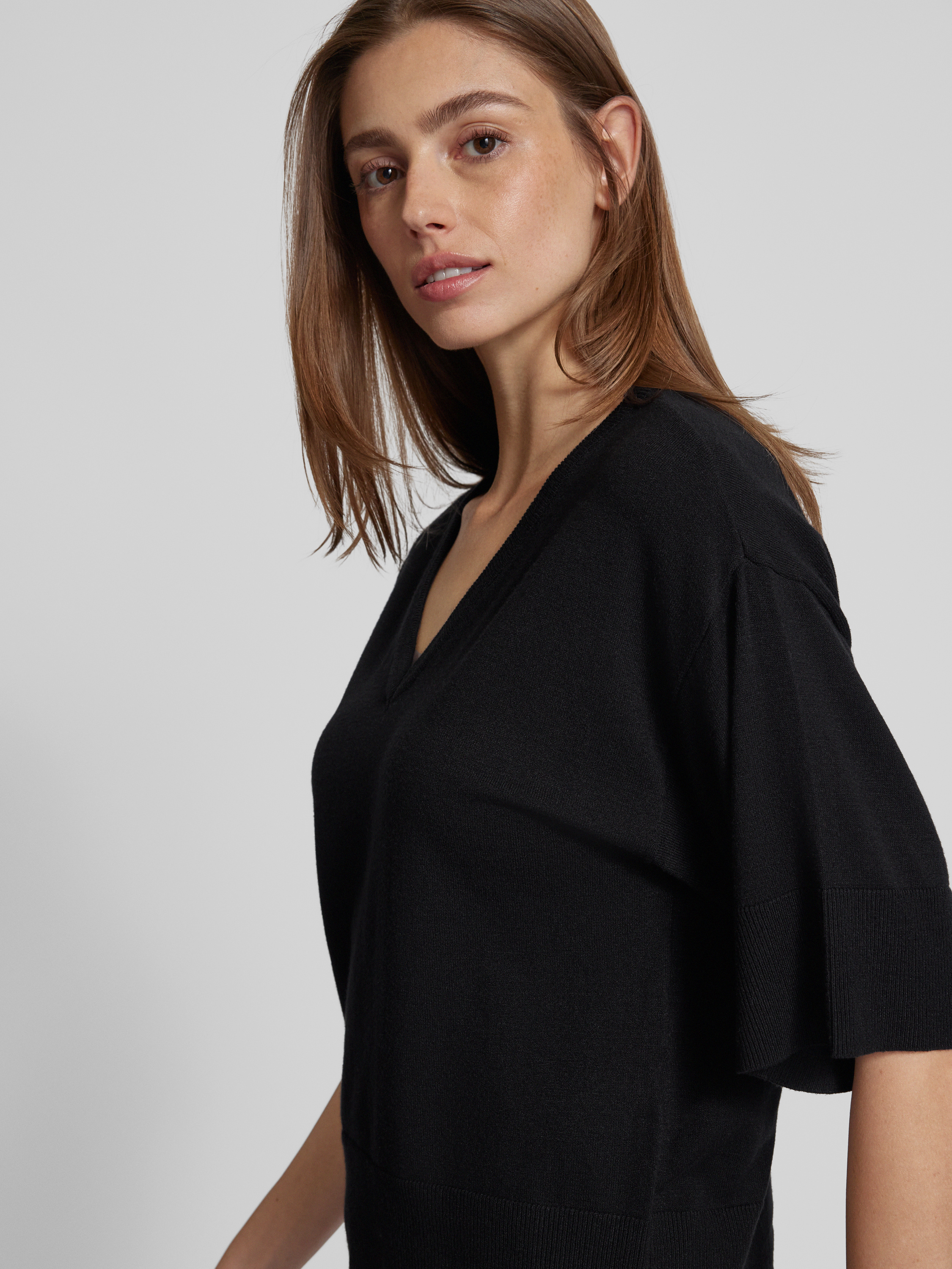 MSCH CopenhagenOversized T-Shirt aus Viskose mit V-Ausschnitt Modell 'Eslina' in black