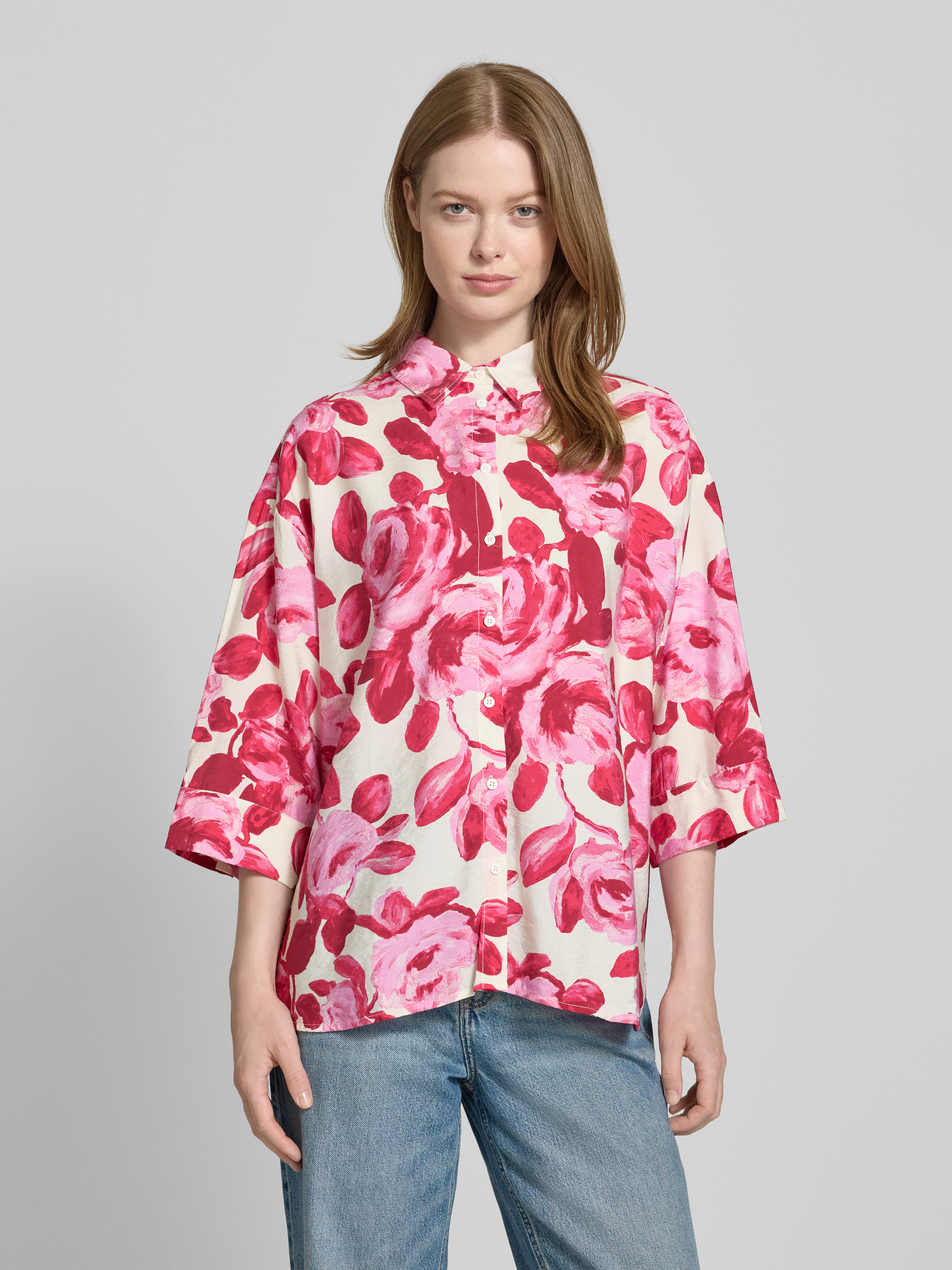 Die Regular Fit Bluse mit 3/4-Arm Modell 'Edrina' von MSCH Copenhagen zeichnet sich durch ihren angenehmen Viskose-Mix und den klassischen Hemdblusenkragen aus. Dank der durchgehenden Knopfleiste lässt sich das Modell flexibel kombinieren. Der Schnitt bietet eine lockere Passform für vielseitige Anlässe.