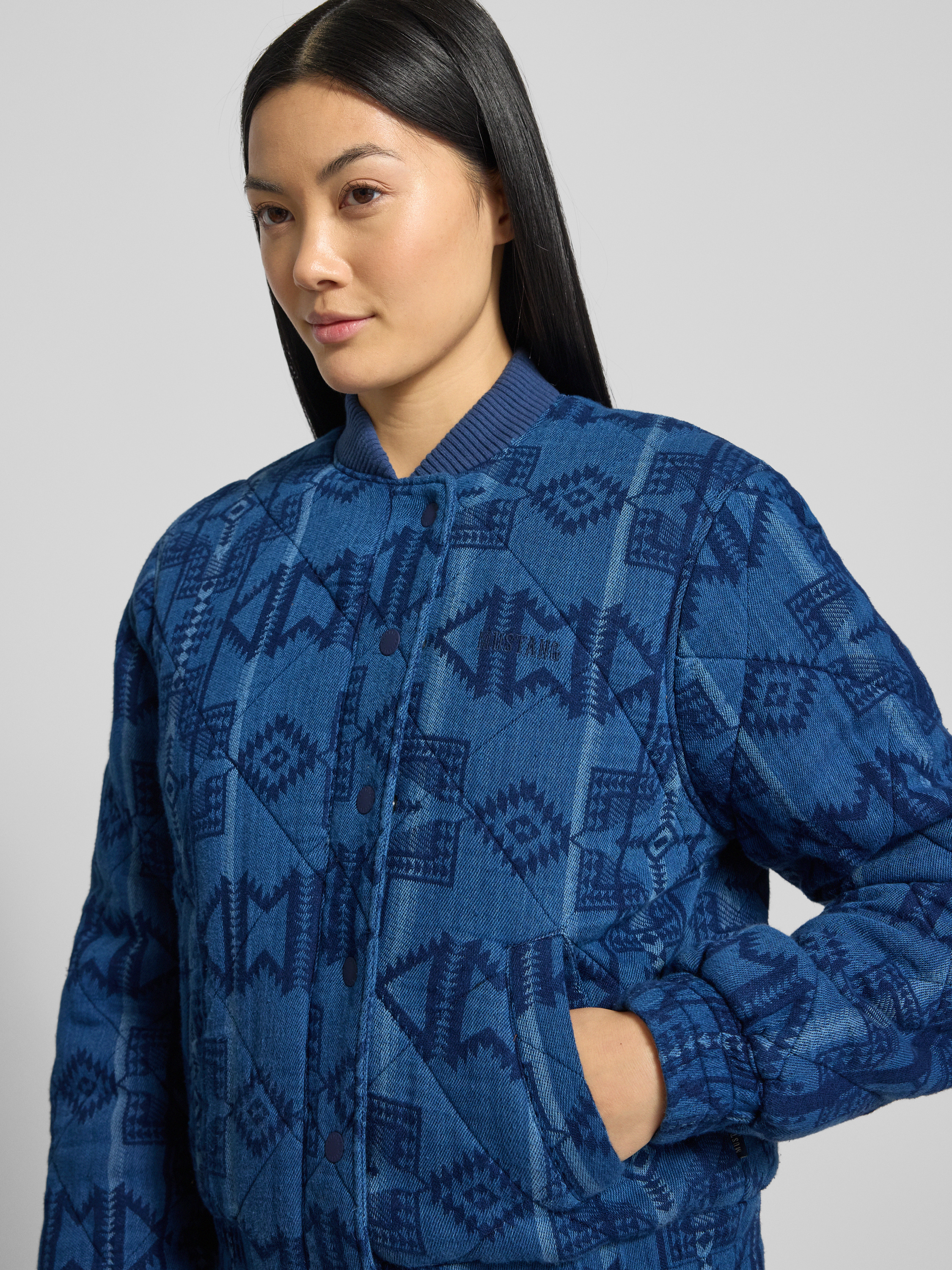 Der Damen Blouson von Mustang im Modell 'BOUSE' kombiniert einen angenehmen Regular-Fit mit reiner Baumwolle, wodurch sich das Material angenehm auf der Haut anfühlt. Der Stehkragen und die klassische Knopfleiste verleihen dem Allover-Look eine dezente Struktur. Dank der praktischen Eingrifftaschen lassen sich Kleinigkeiten unkompliziert verstauen, sodass sich der Blouson flexibel im Alltag einsetzen lässt.