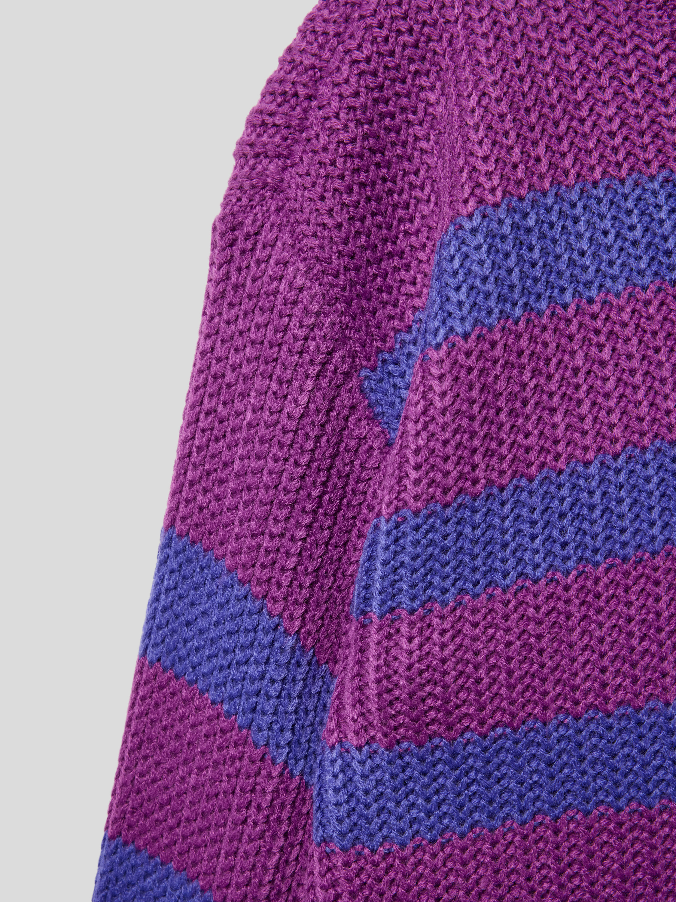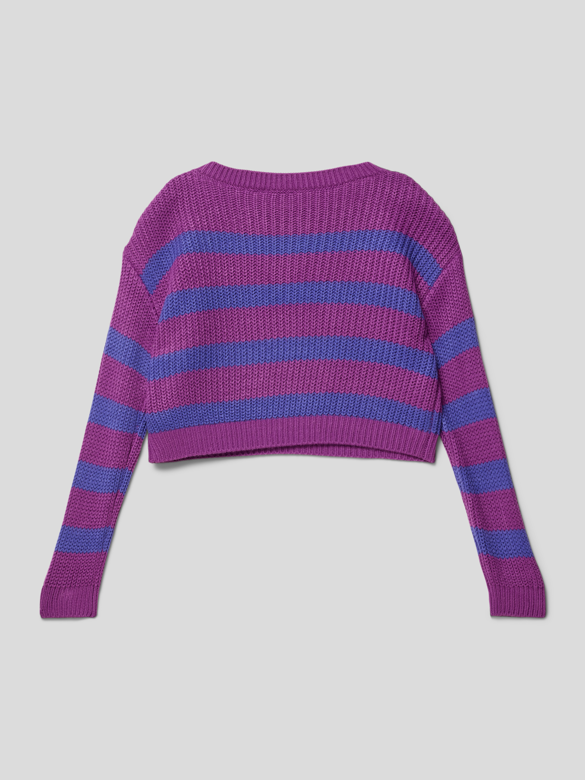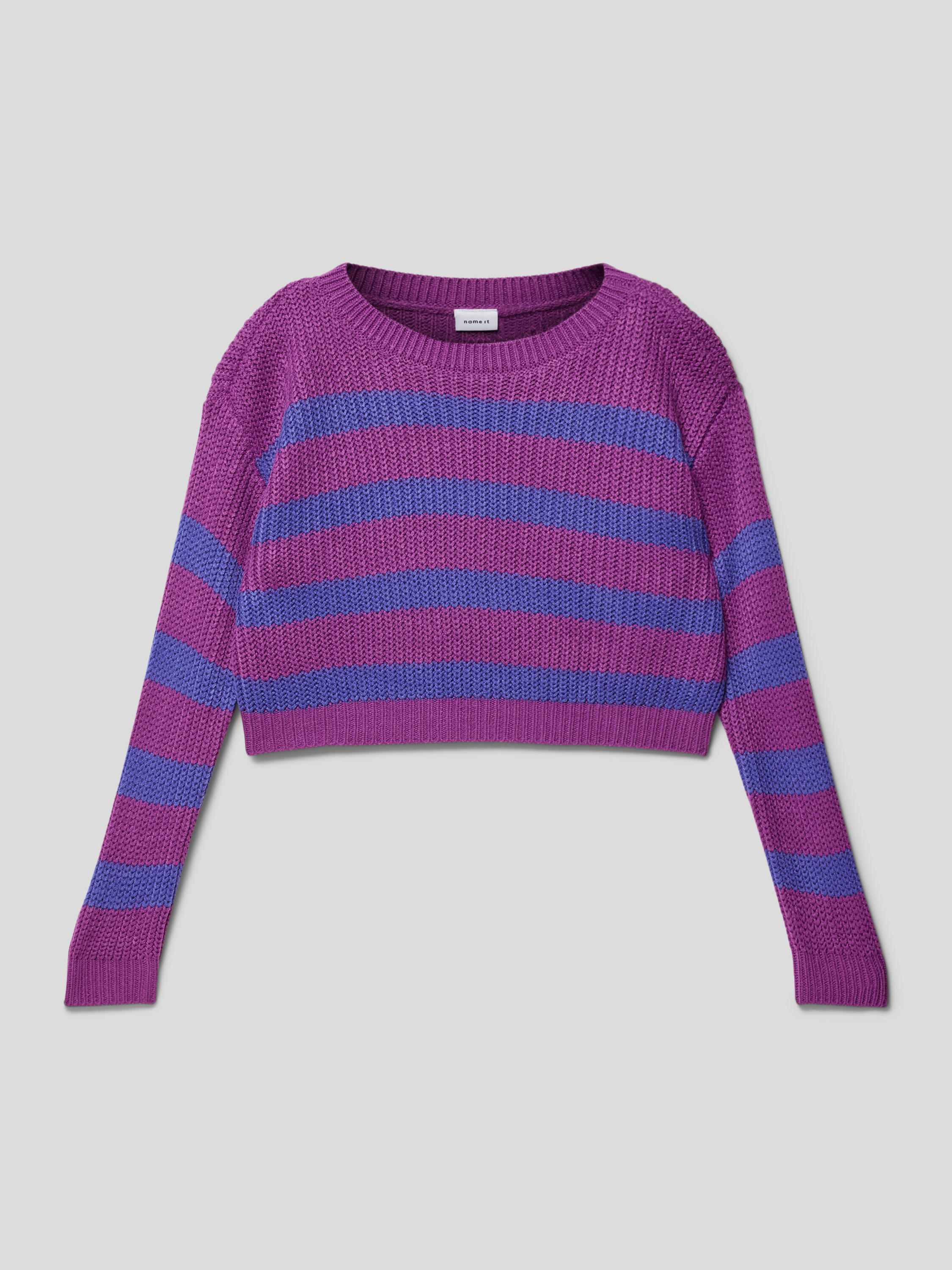 Der Strickpullover von NAME IT, gestaltet mit einem lockeren Schnitt, bringt durch sein Streifenmuster Farbe in den Alltag. Dank des gerippten Rundhalsausschnitts und der Abschlüsse bietet er angenehmen Tragekomfort. Ideal für Kinder, die Bewegungsfreiheit und Stil schätzen.