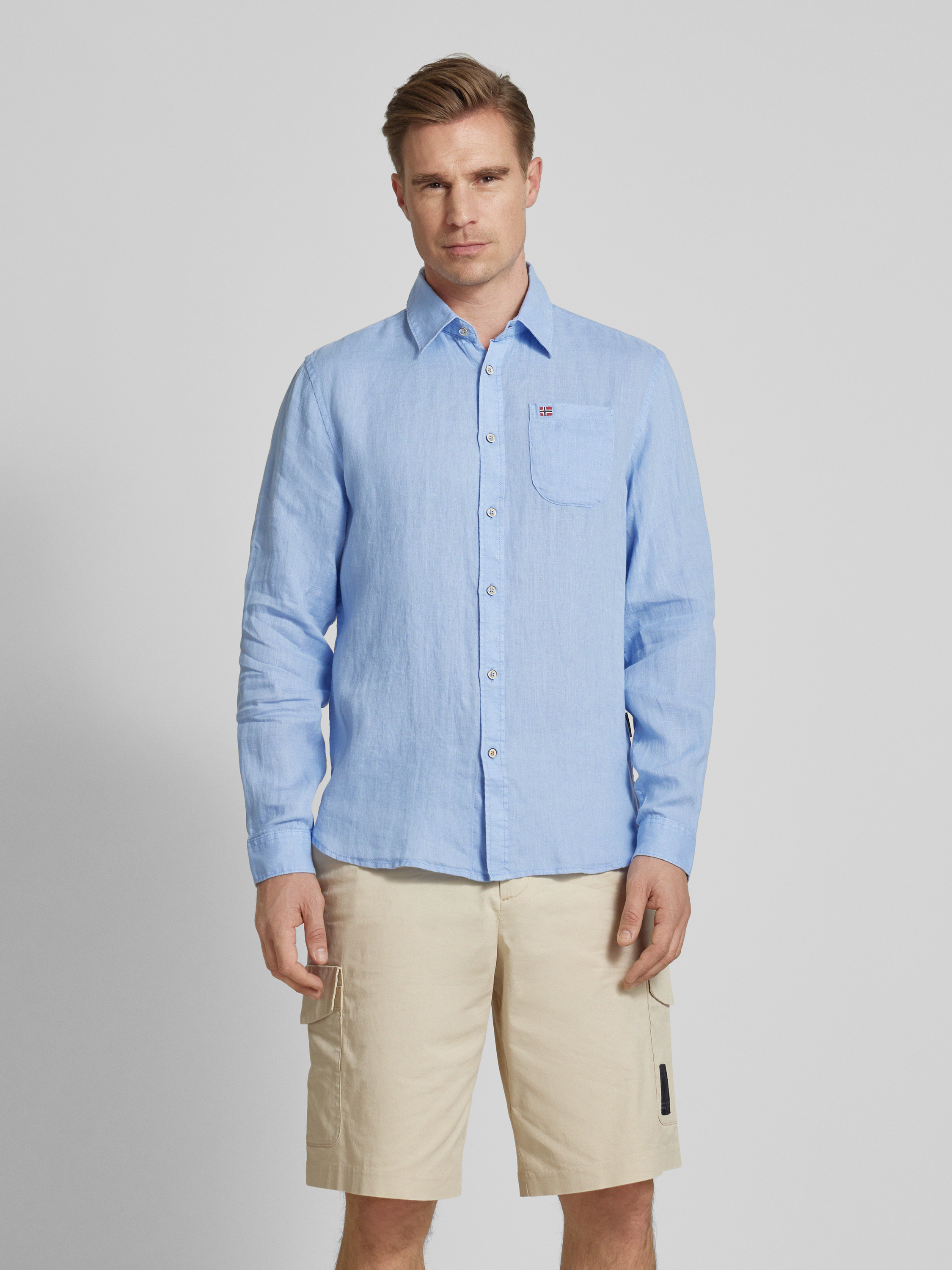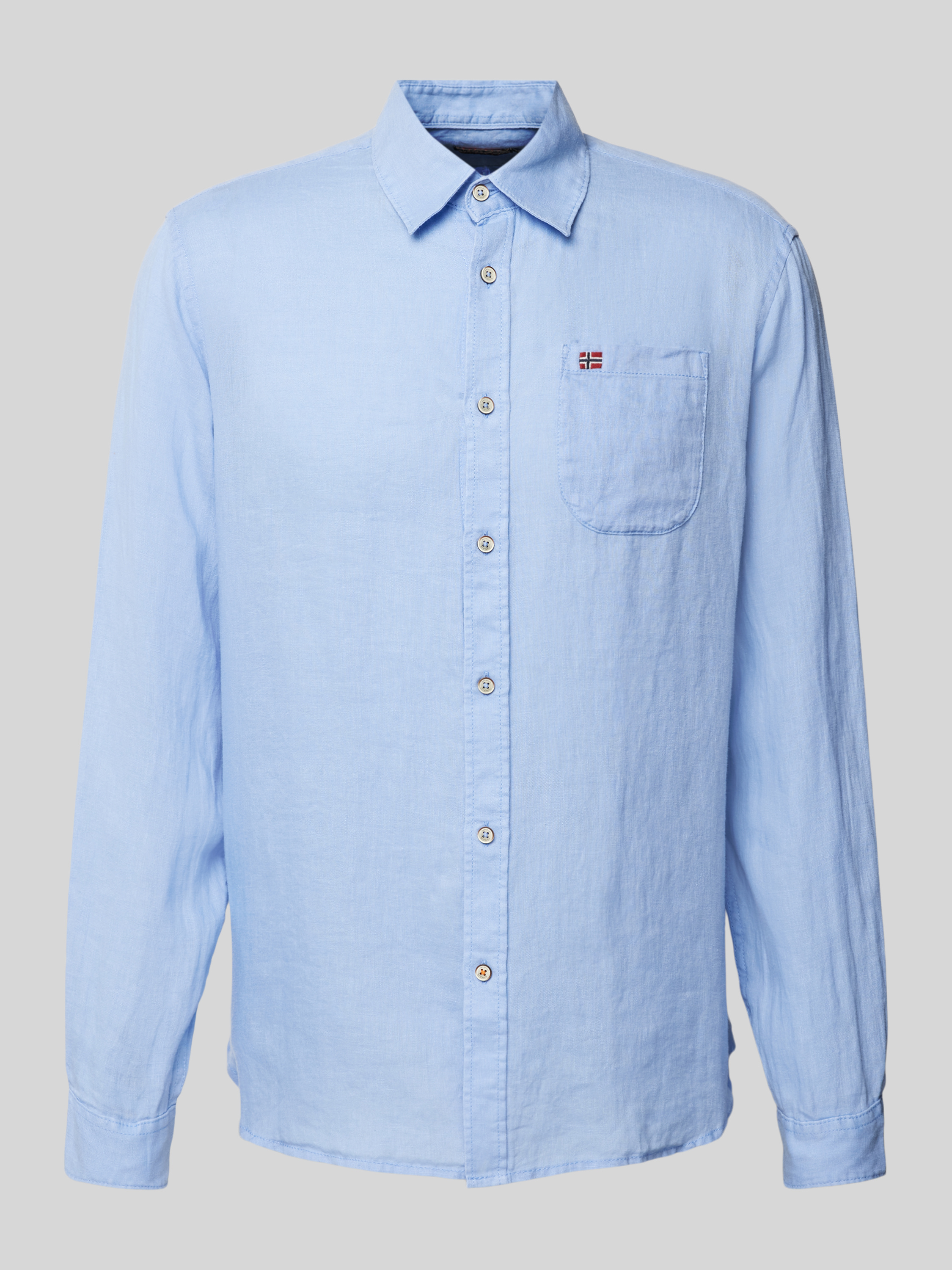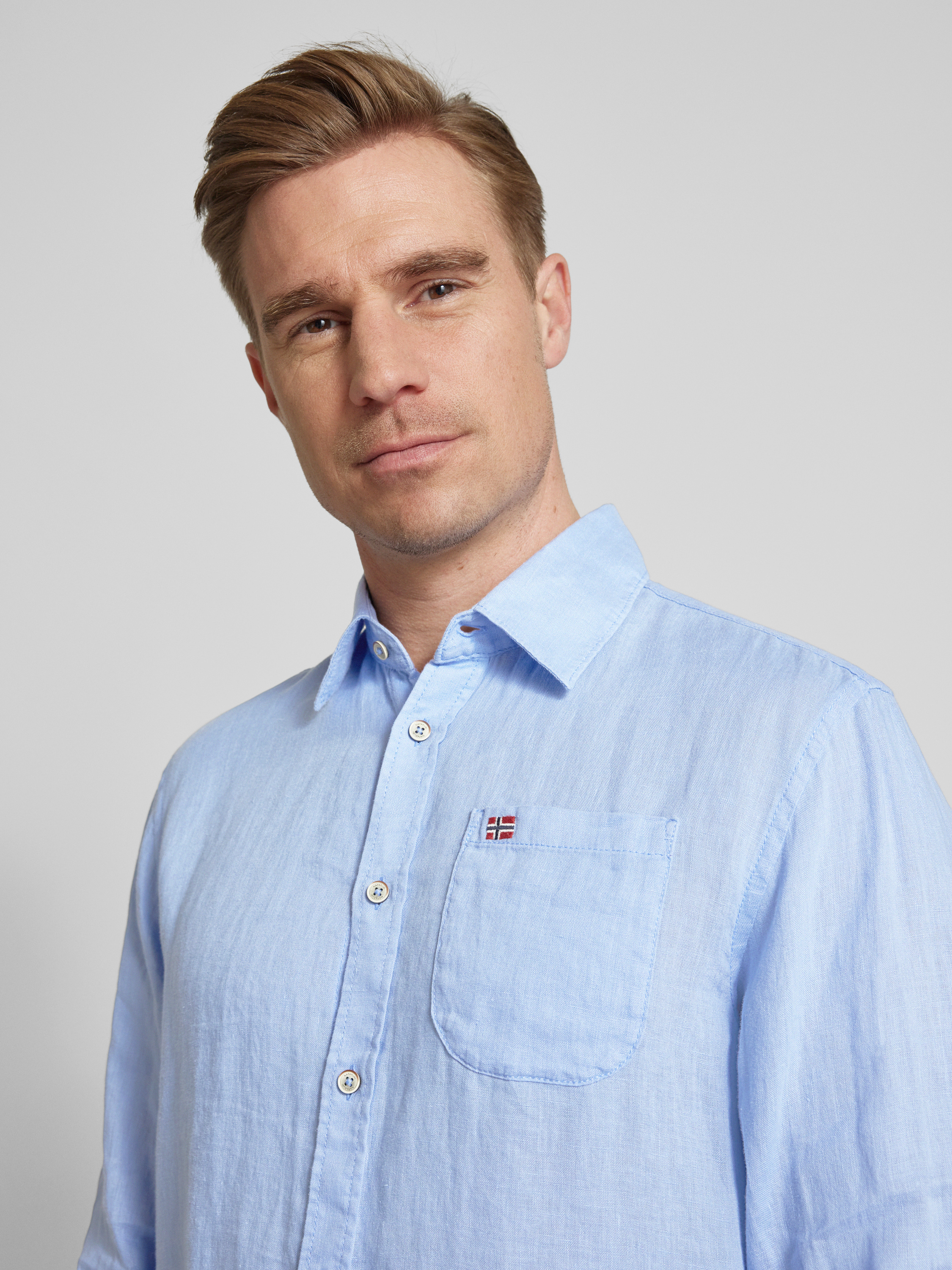 NapapijriFreizeithemd aus Leinen mit Brusttasche in hellblau