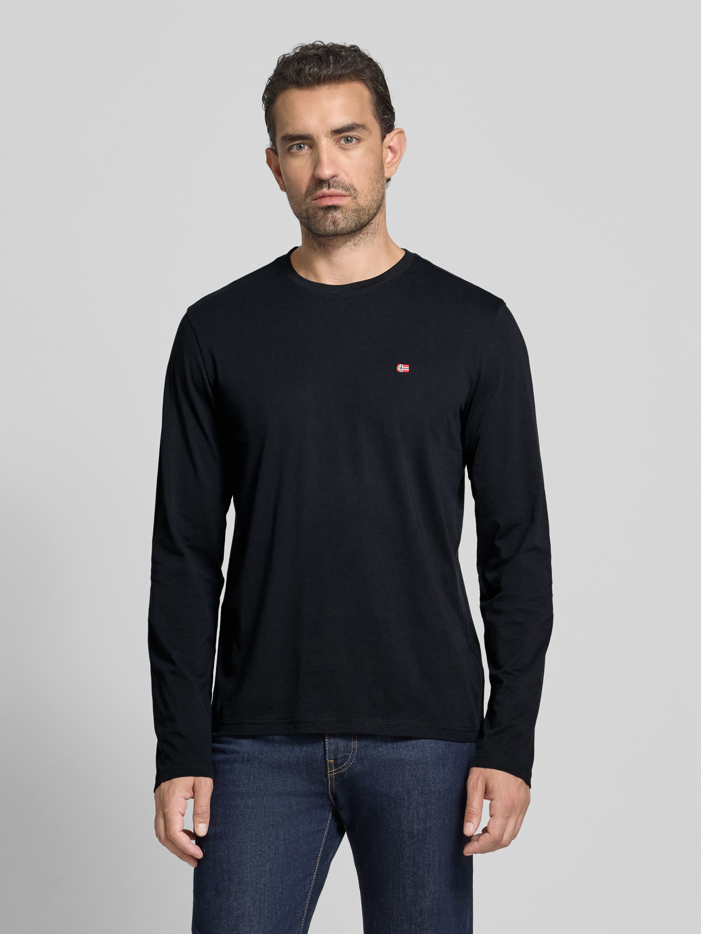 Das Herren Longsleeve von Napapijri, Modell 'Salis', zeichnet sich durch einen angenehm weichen Baumwoll-Elasthan-Mix und eine körpernahe Passform aus. Dank des Rundhalsausschnitts entsteht ein klassischer Look, während das dezente Logo-Stitching dem Outfit eine sportive Note verleiht.