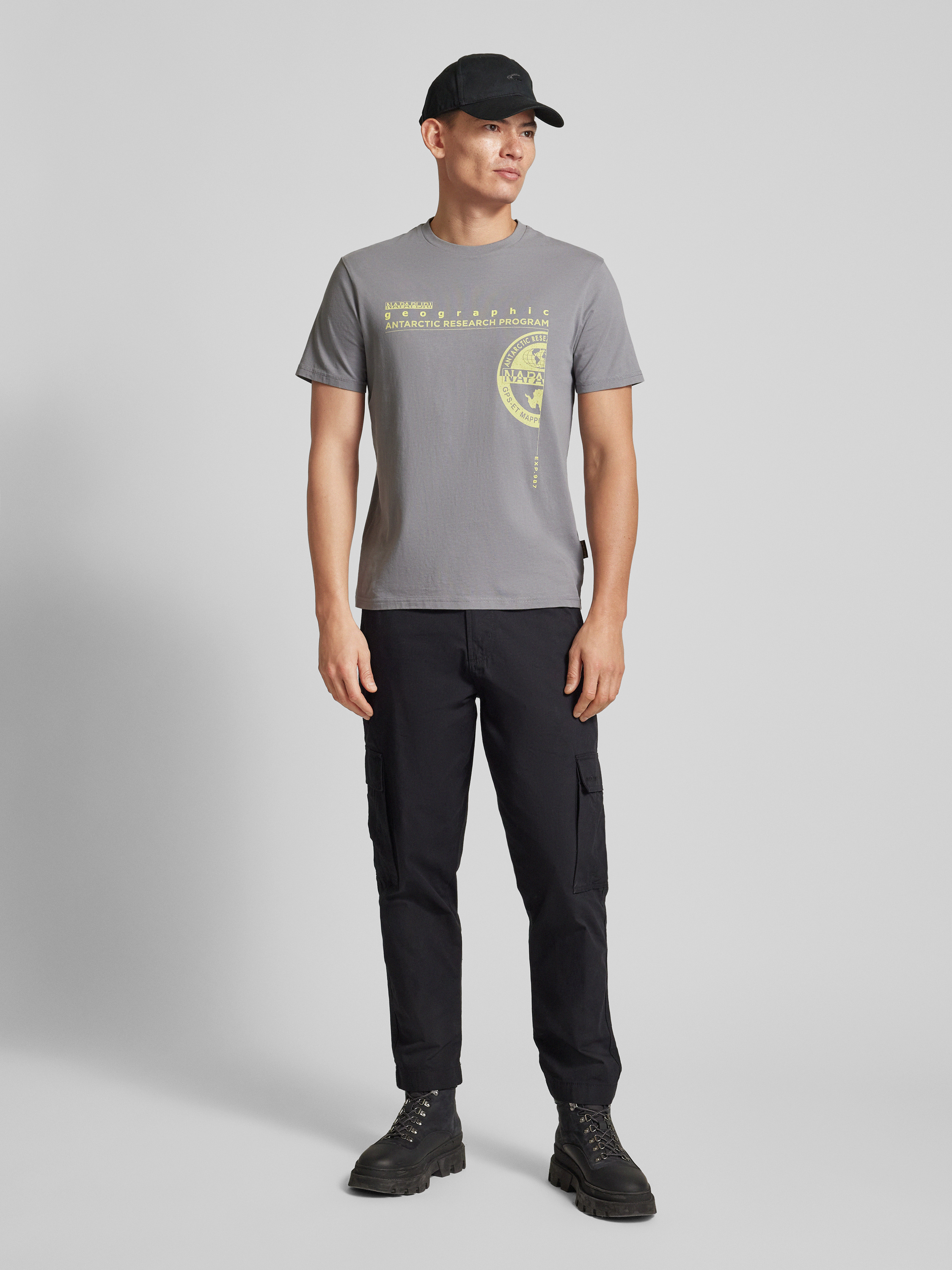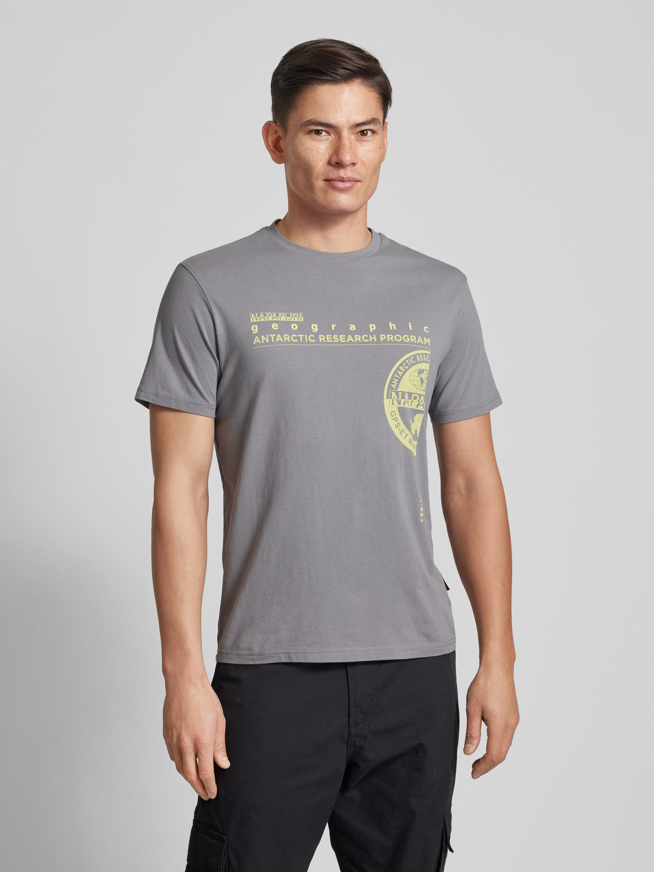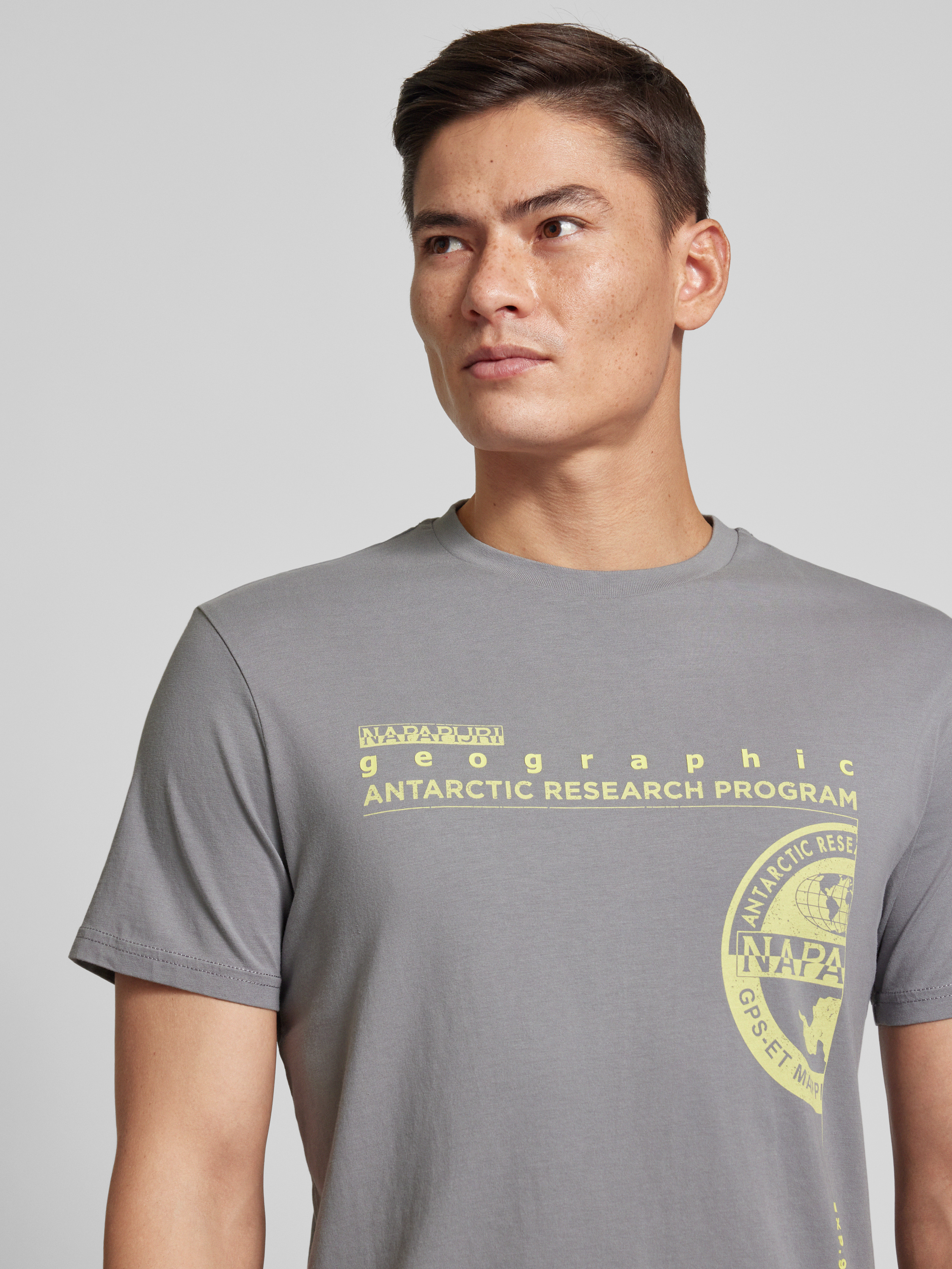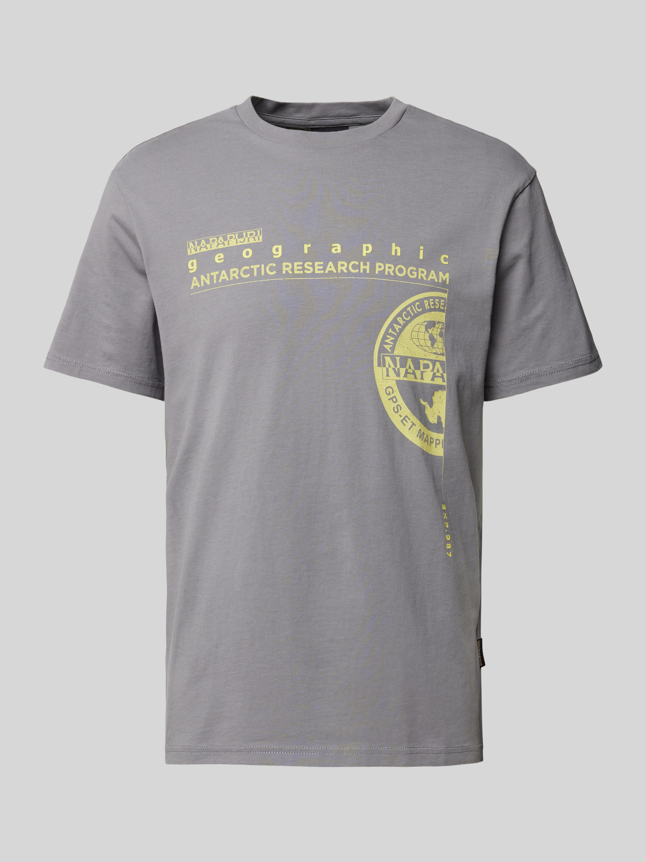NapapijriT-Shirt mit Label- und Motiv-Print Modell 'MANTA' in mittelgrau