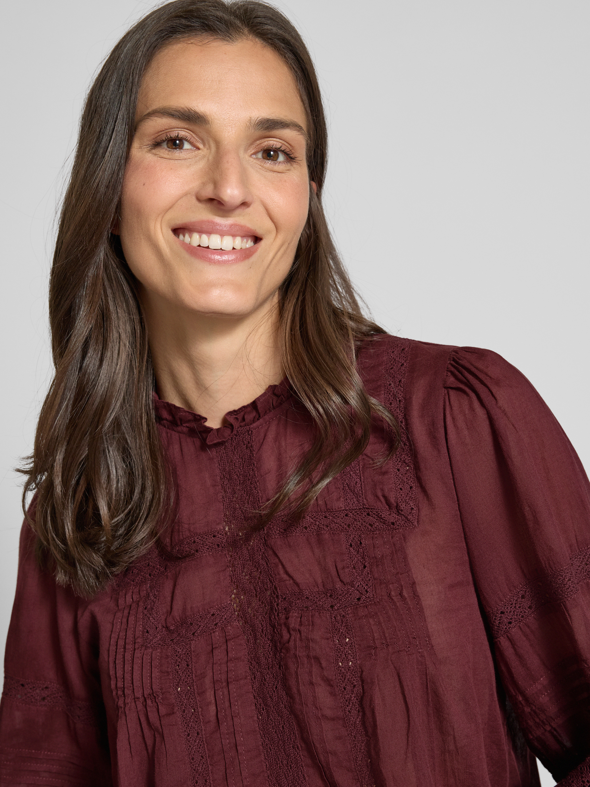 Neo NoirBluse mit rückseitigem Knopfverschluss Modell 'Ebba' in bordeaux