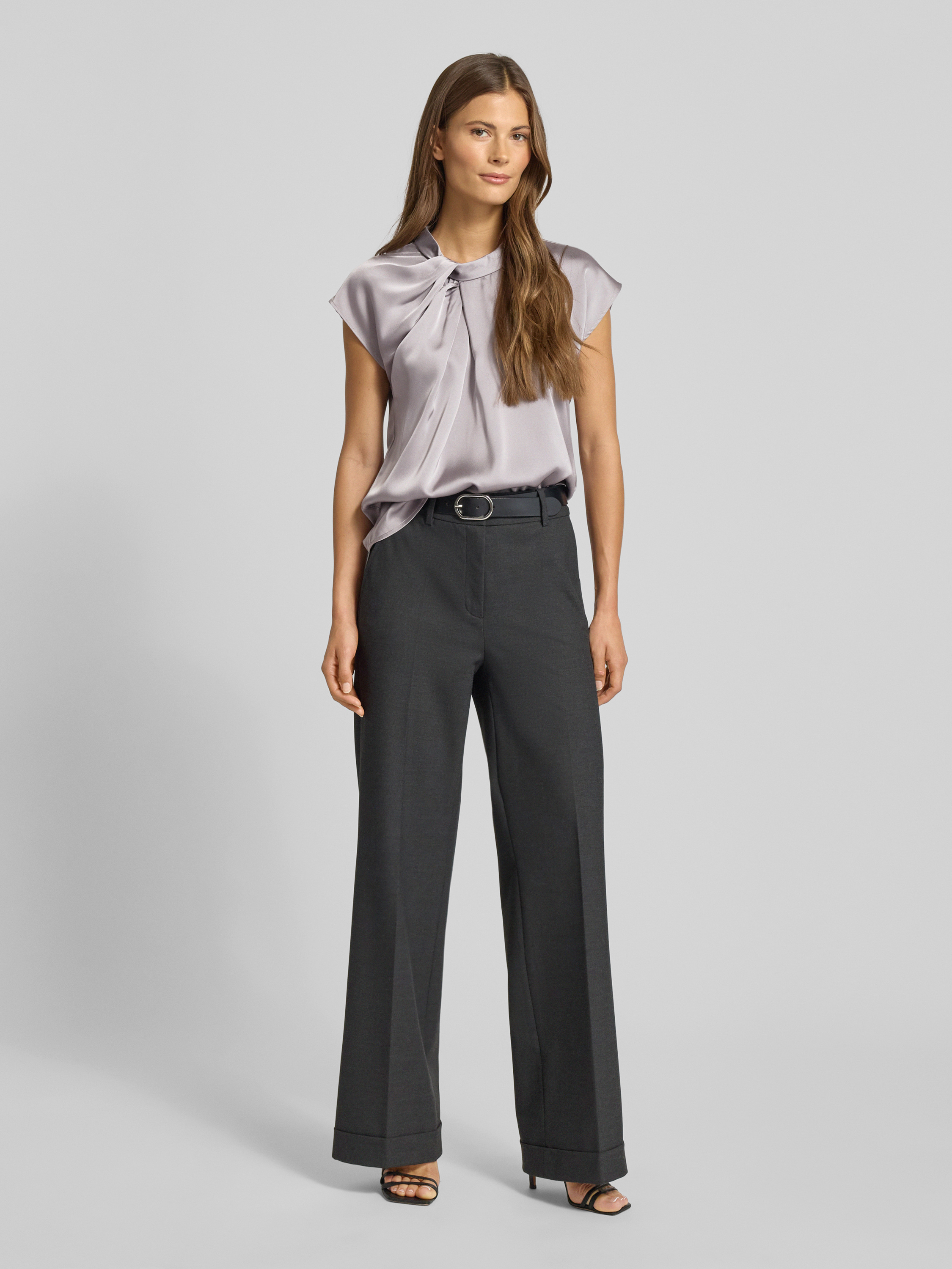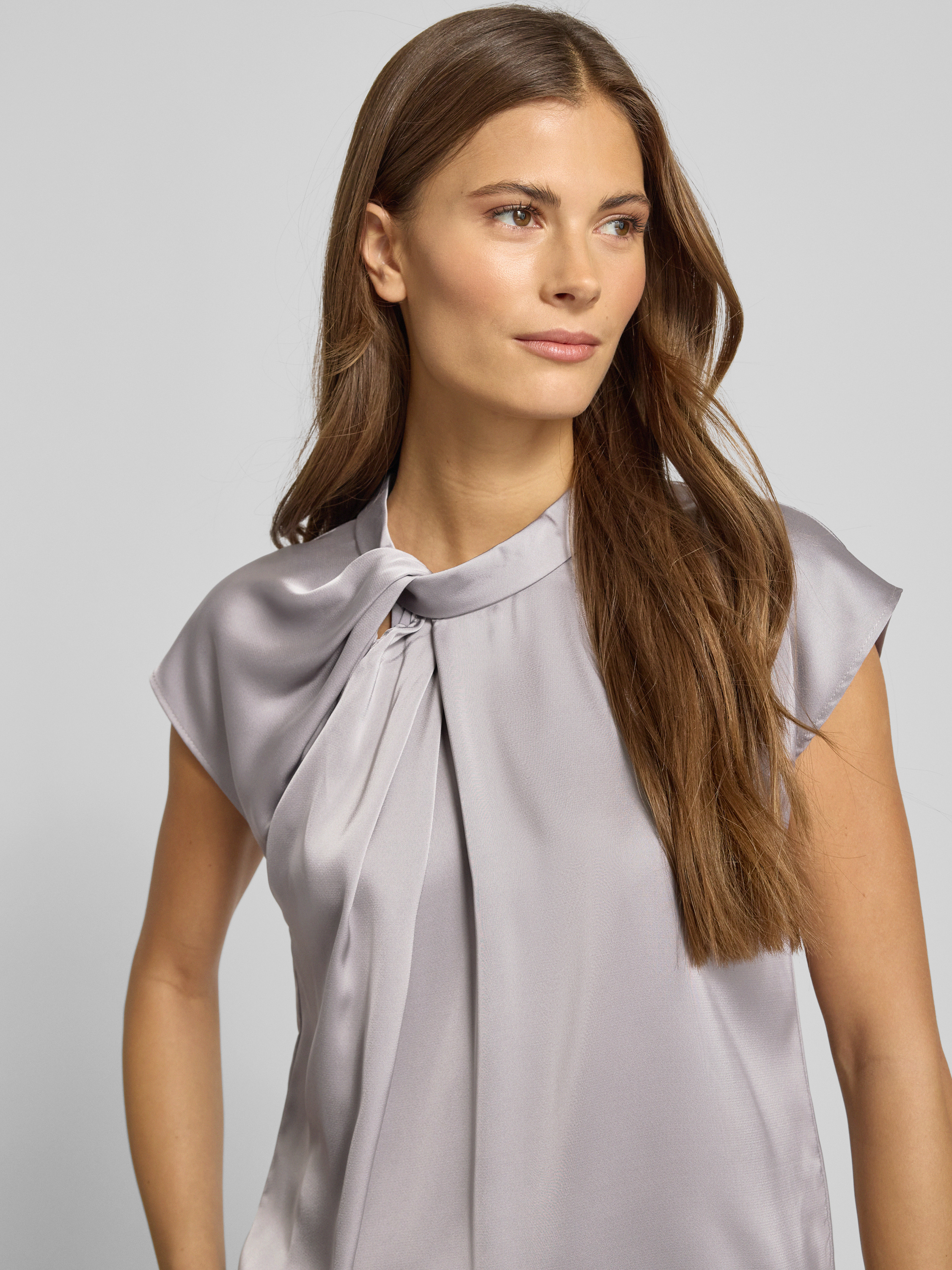 Das Damen Blusenshirt von Neo Noir fällt durch seinen lockeren Schnitt angenehm leicht und luftig, wodurch Bewegungsfreiheit entsteht. Ein Stehkragen und die Wickel-Optik sorgen für eine moderne Ausstrahlung, während die Rückenlänge bei Größe 36 eine harmonische Silhouette formt. So eignet sich das Blusenshirt besonders für entspannte oder stilvolle Anlässe.