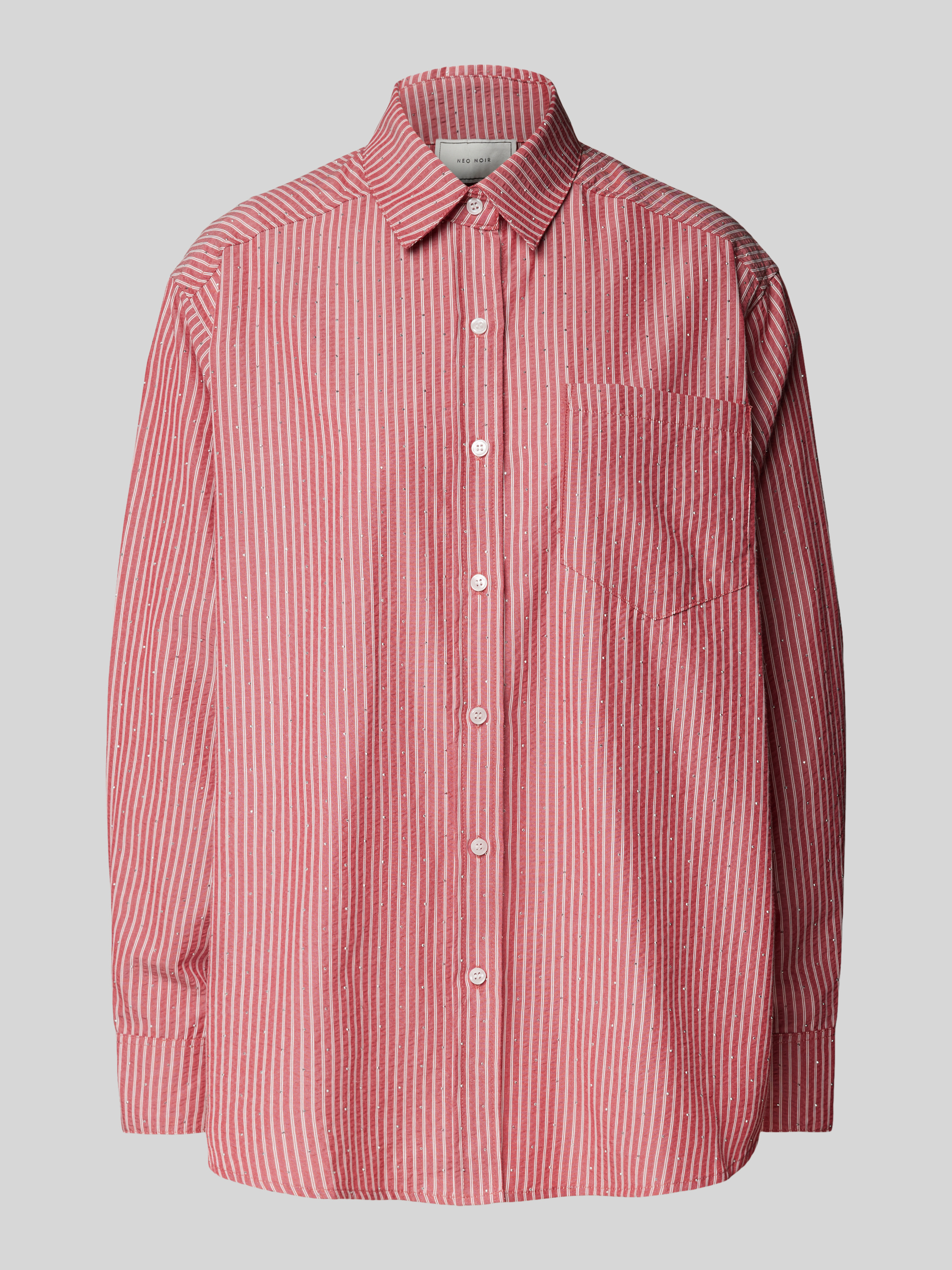 Die Hemdbluse 'Dalma' von Neo Noir kombiniert einen angenehmen Material-Mix mit einem lässigen Schnitt, der Bewegungsfreiheit bietet. Der klassische Hemdblusenkragen und die praktische Brusttasche verleihen der Bluse einen zeitlosen Charme. Ideal für den Alltag und vielseitig kombinierbar.