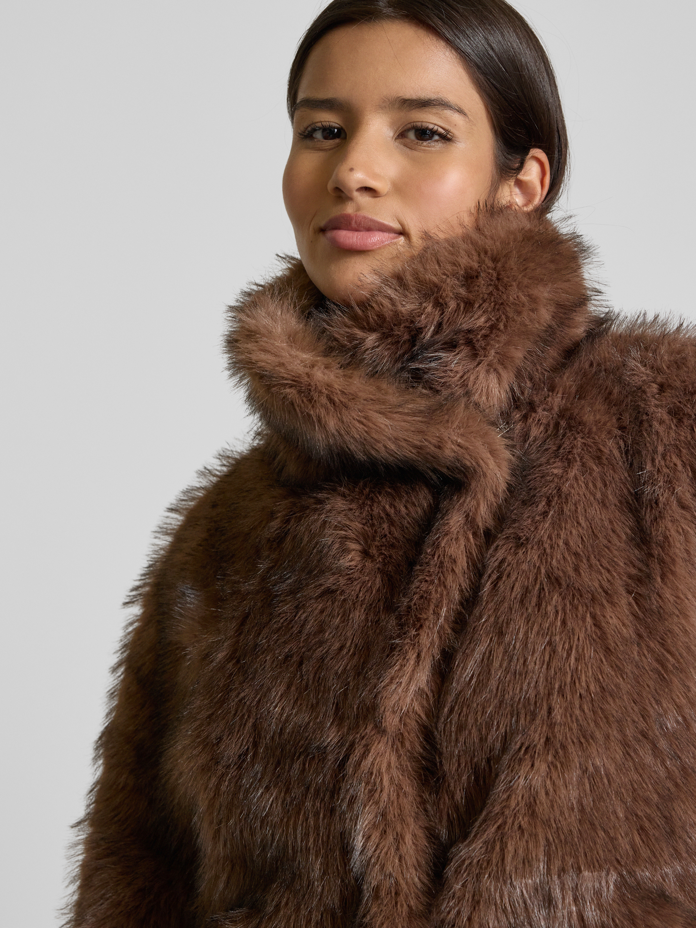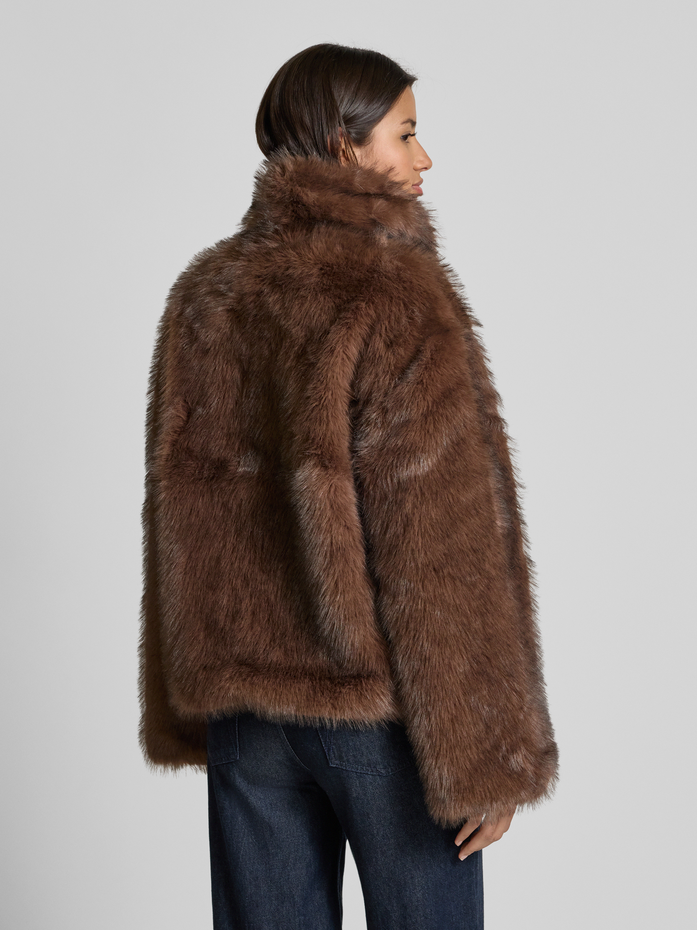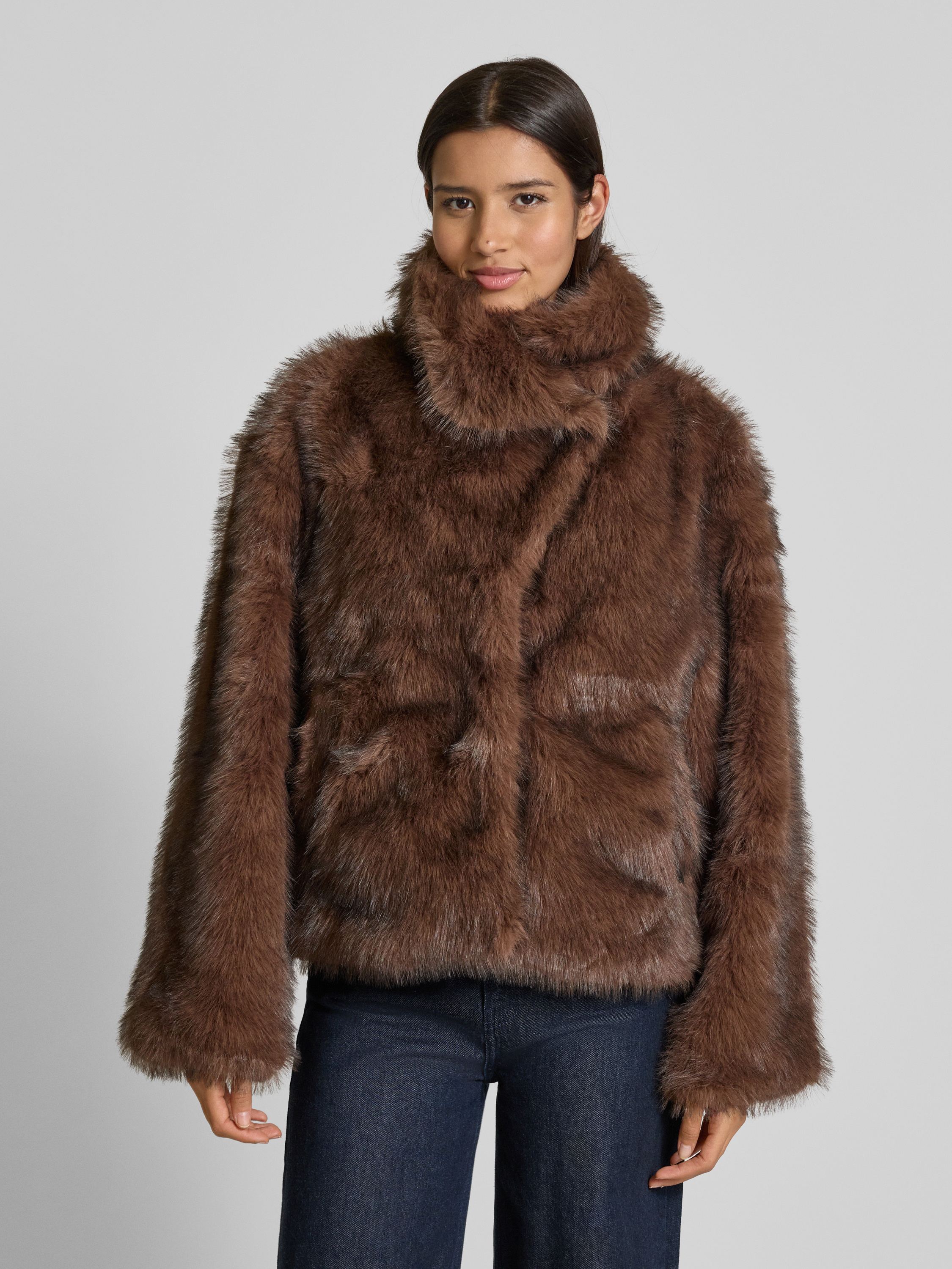 Neo NoirJacke aus Kunstfell Modell 'Stephanie' in mittelbraun