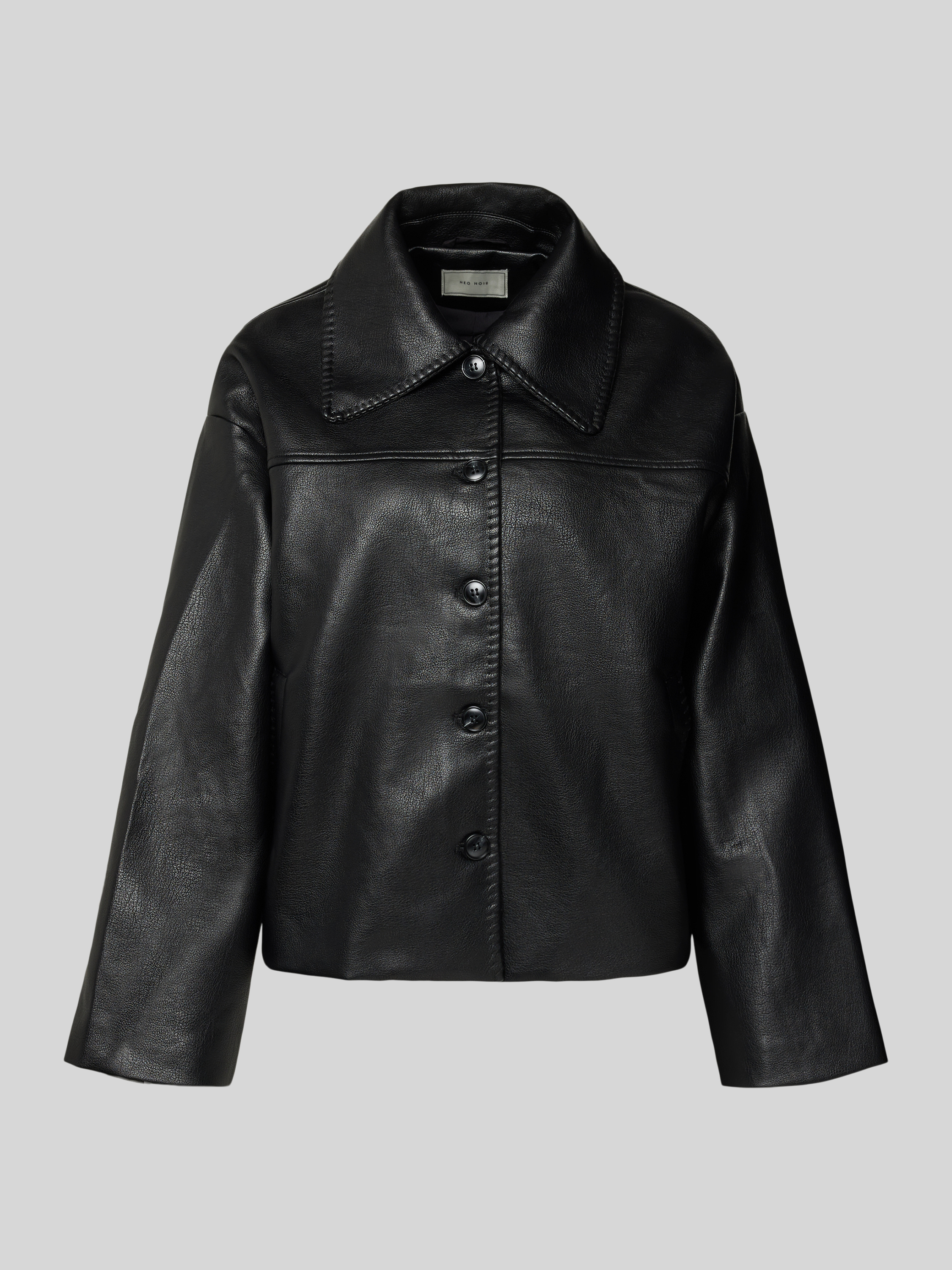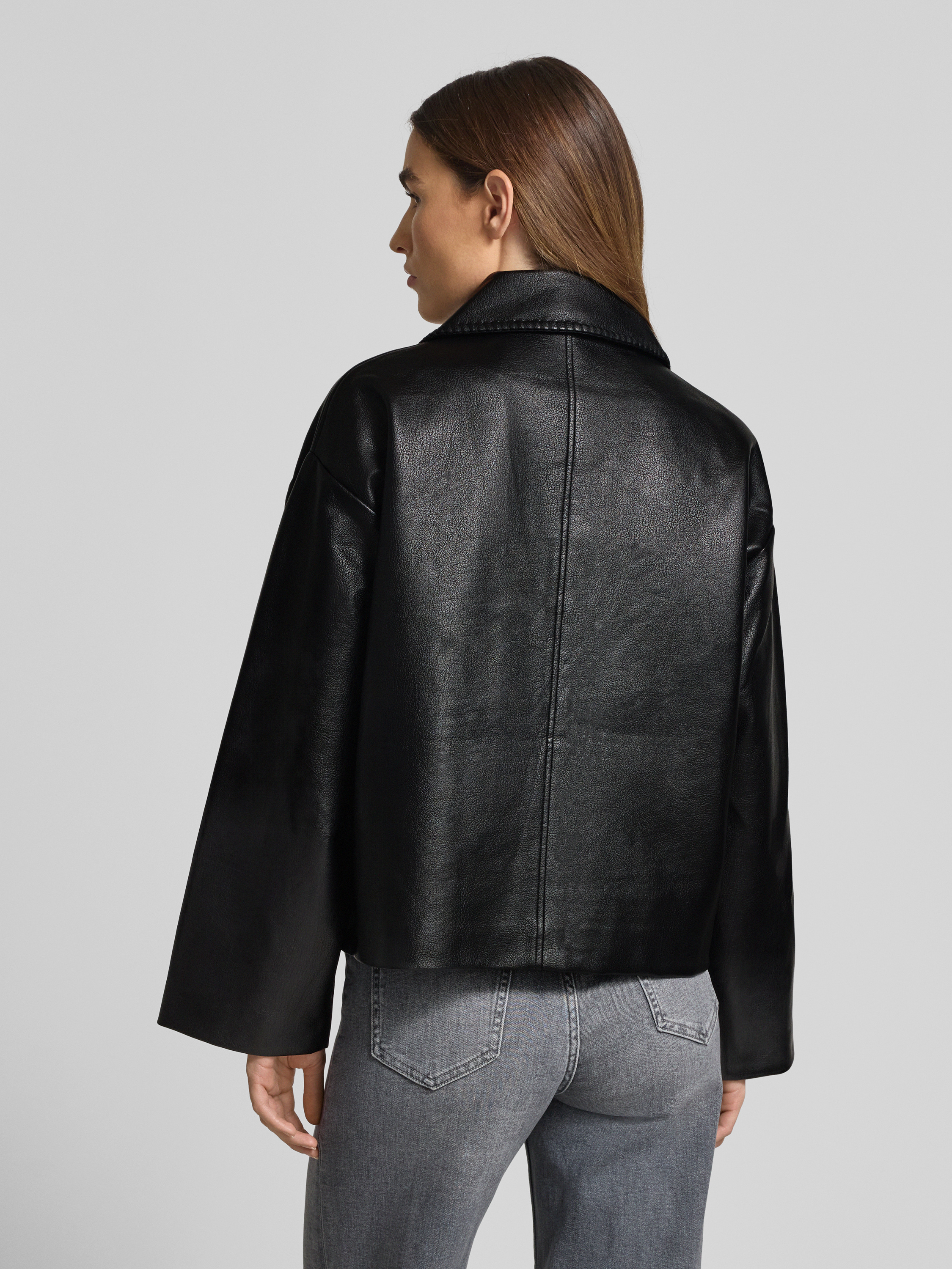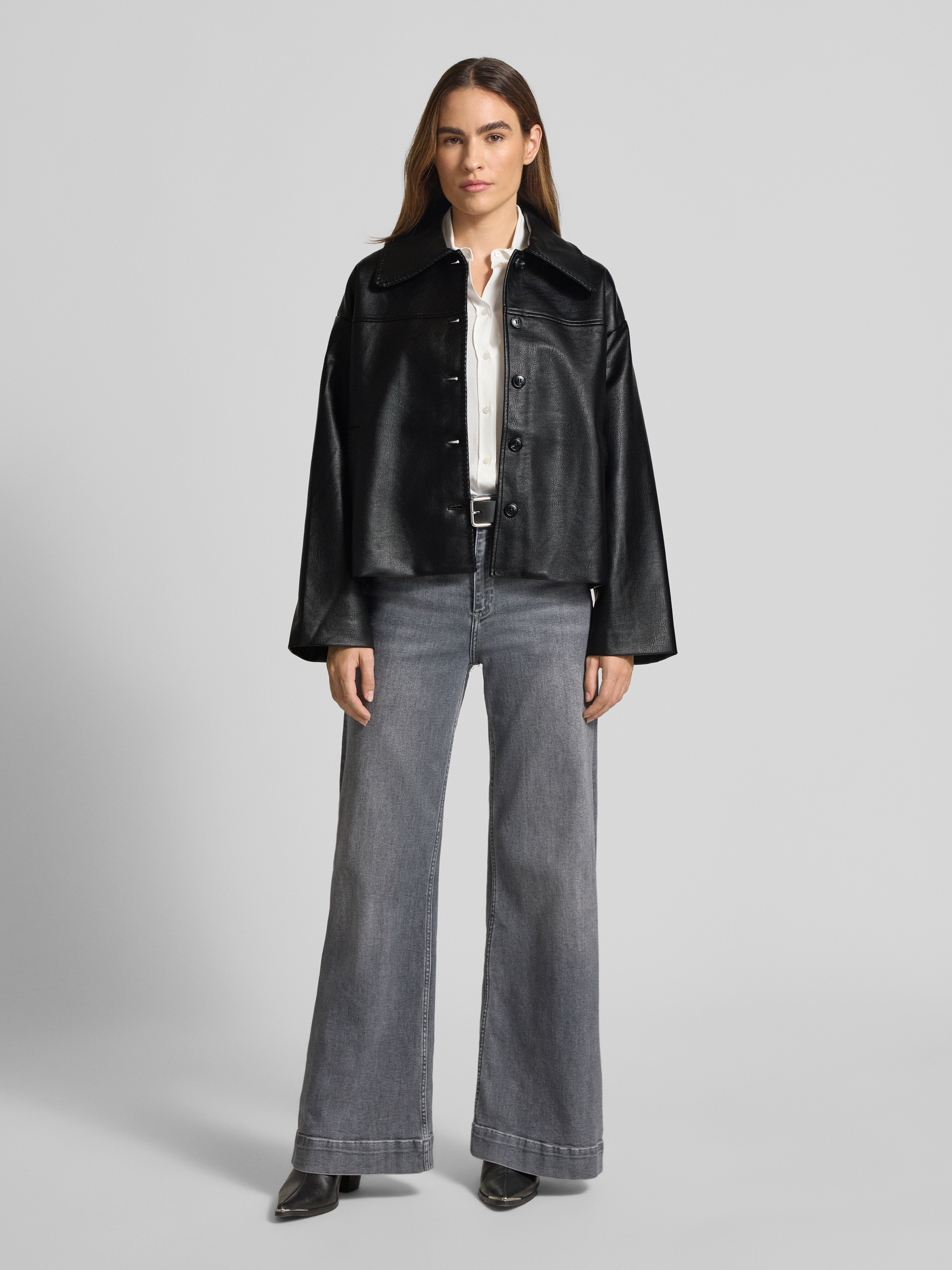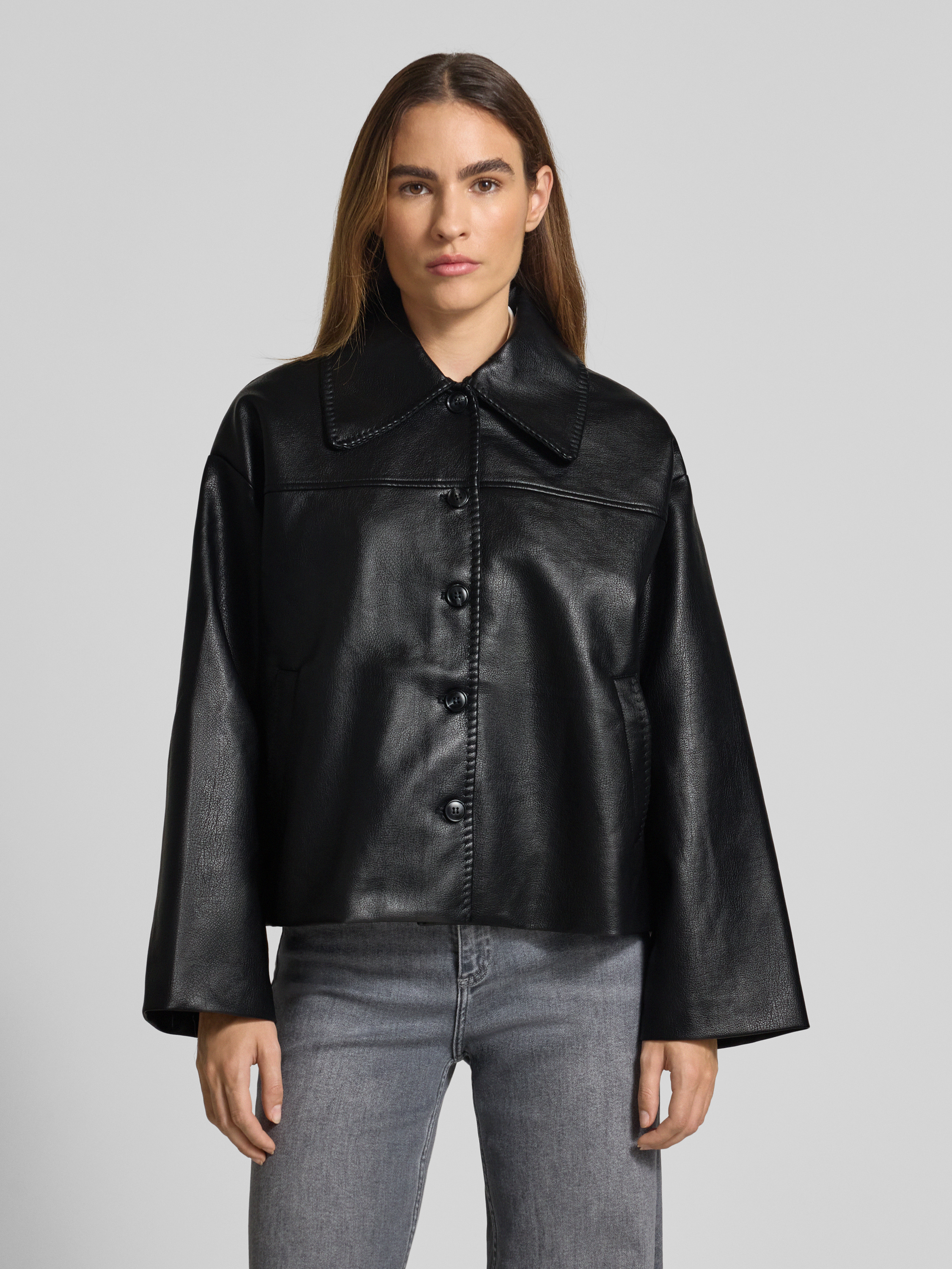 Die Damen Jacke von Neo Noir, Modell 'Lunara', präsentiert sich in einem legeren Schnitt und einem Material-Mix, der angenehm leicht aufliegt. Durch die Leder-Optik entsteht ein moderner, vielseitig kombinierbarer Look. Ein Umlegekragen und eine klassische Knopfleiste runden das Erscheinungsbild ab.