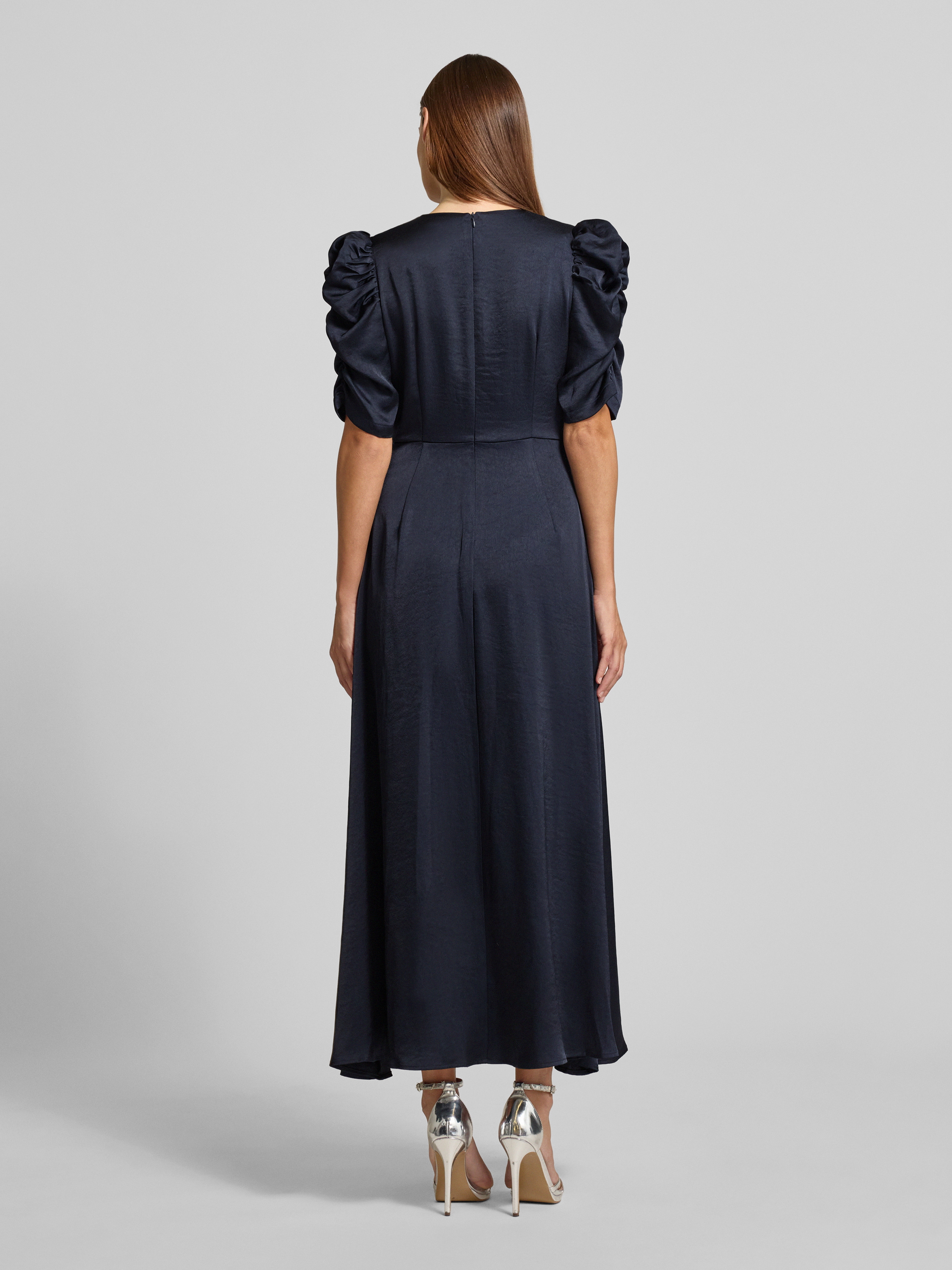 Das Maxikleid mit Puffärmeln von Neo Noir, Modell 'Benuti', fällt durch seine fließende Satin-Qualität angenehm leicht und sorgt für ein komfortables Tragegefühl. Die A-Linienform und der Rundhalsausschnitt unterstreichen eine feminine Silhouette, während die Puffärmel einen modernen Akzent setzen. So eignet sich das Kleid für verschiedene Anlässe und lässt sich vielseitig kombinieren.