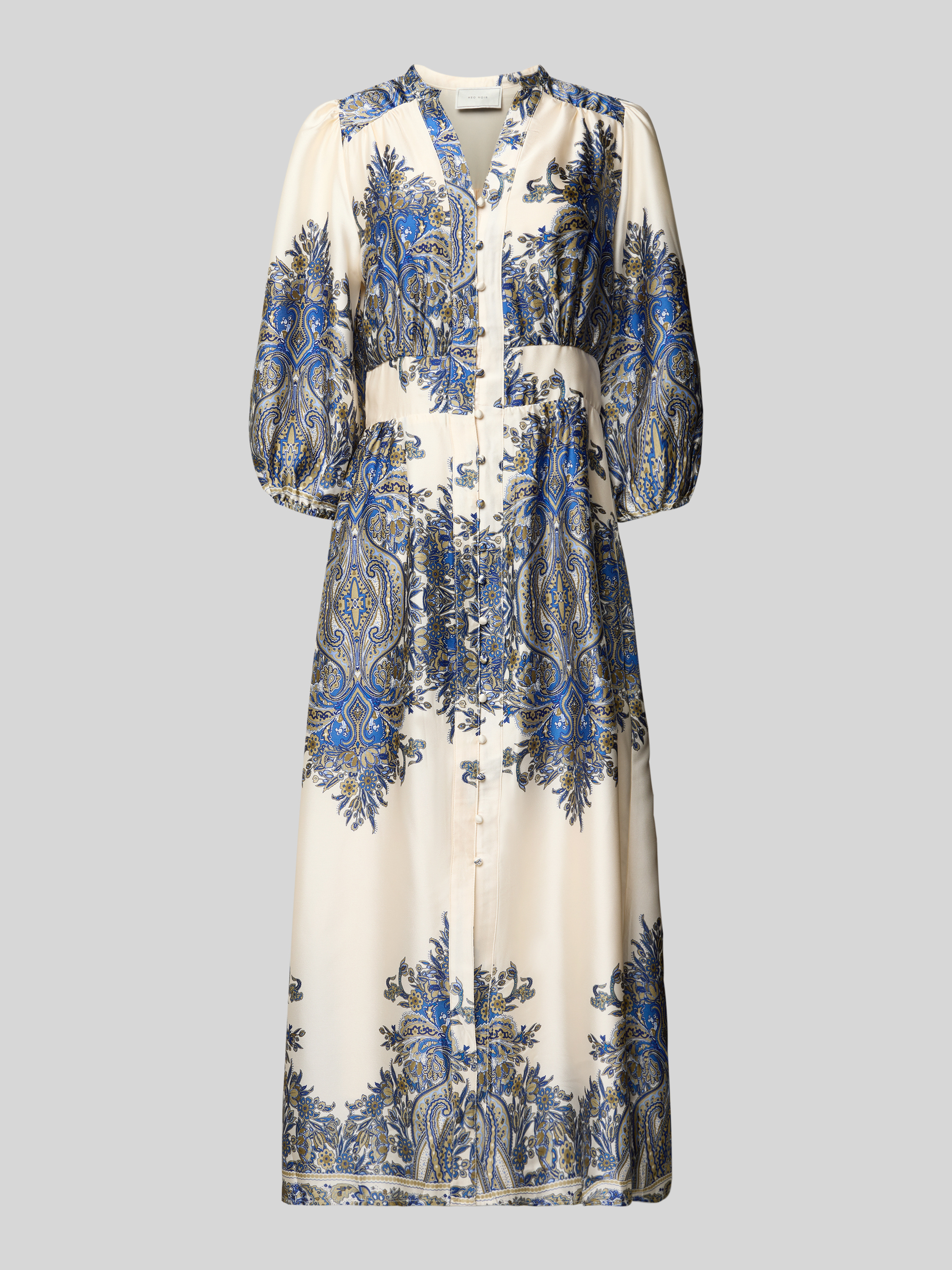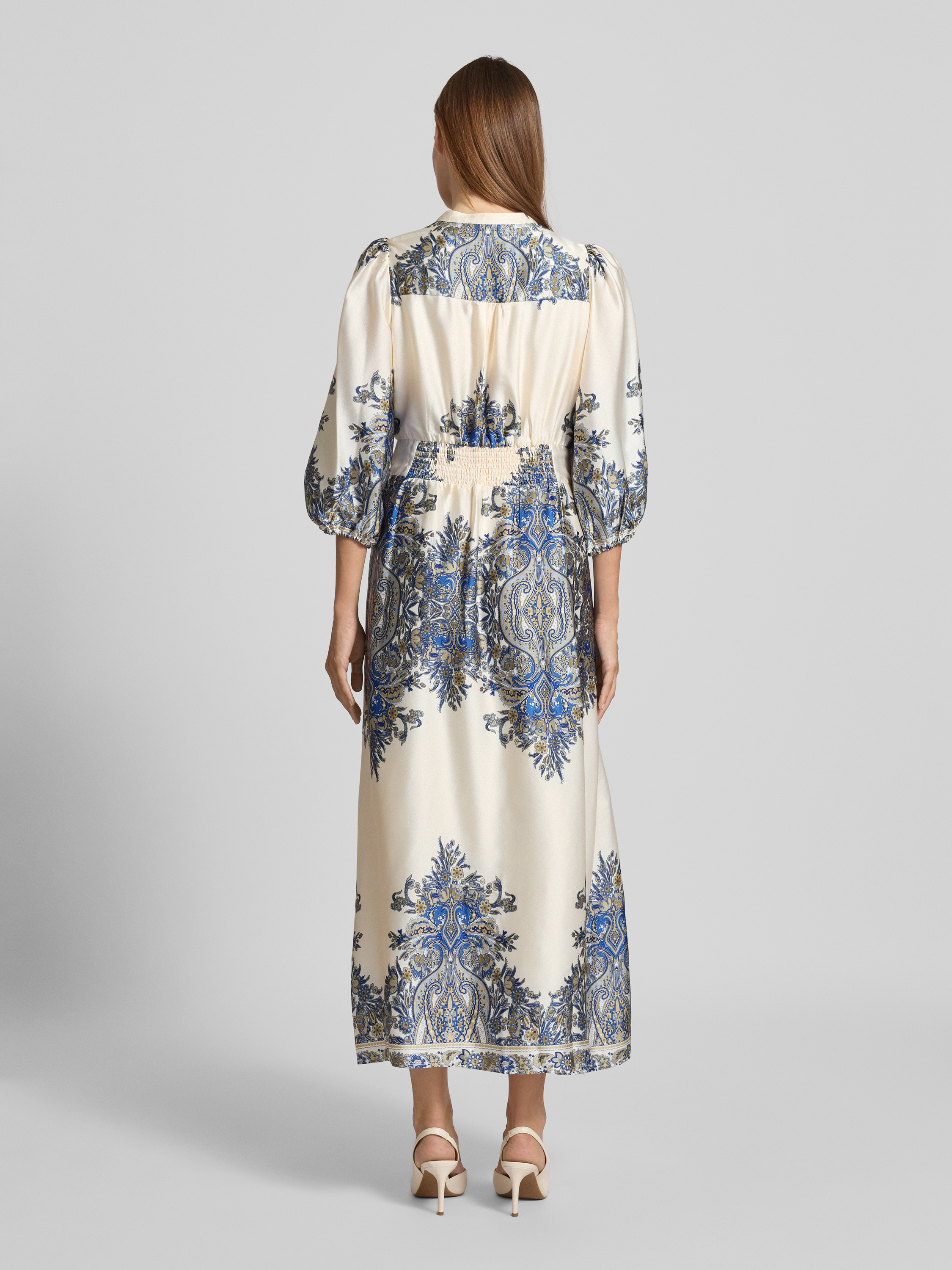 Neo NoirMaxikleid mit Puffärmeln Modell 'STELLAR PAISLEY BORDER' in blau