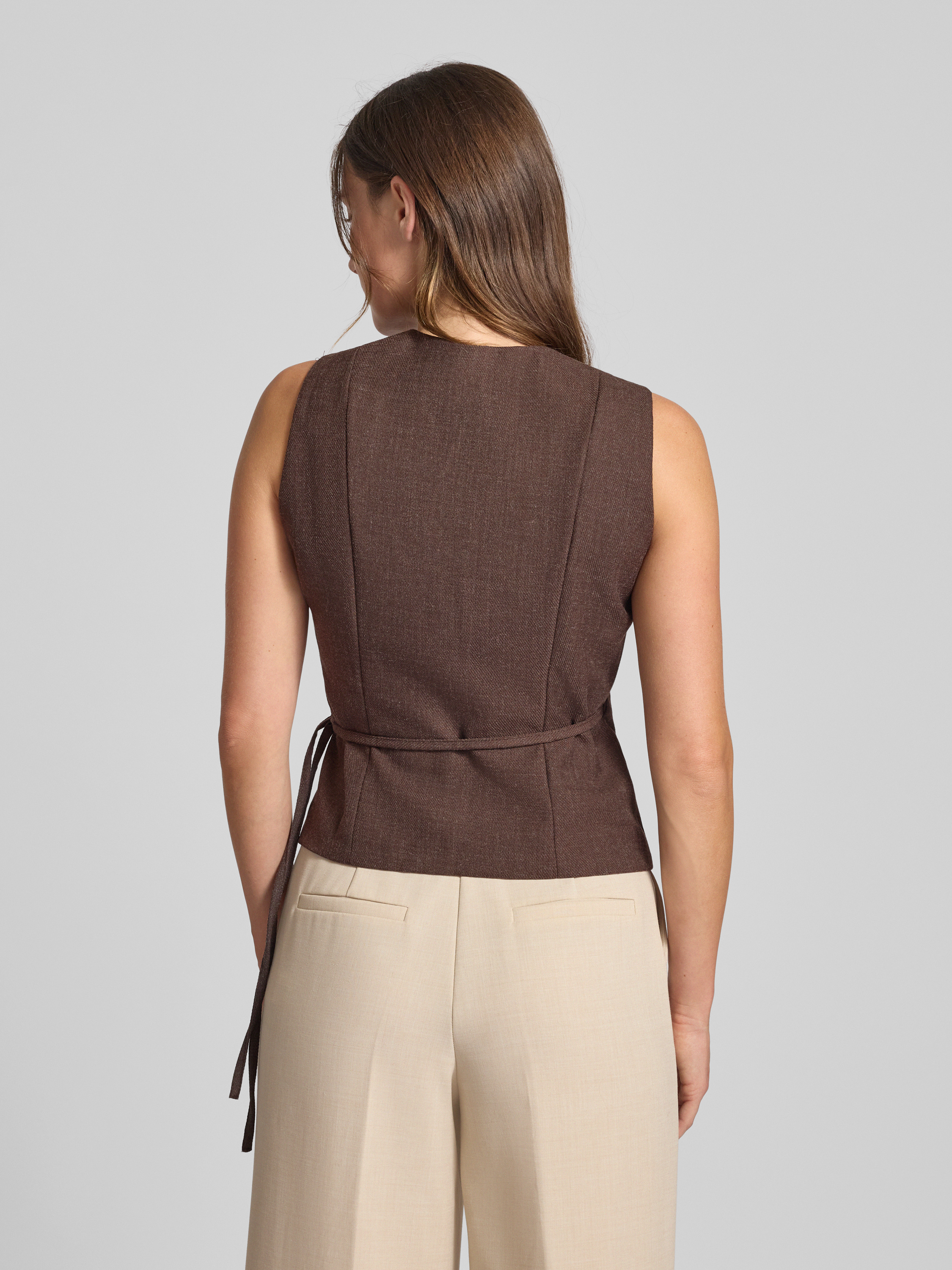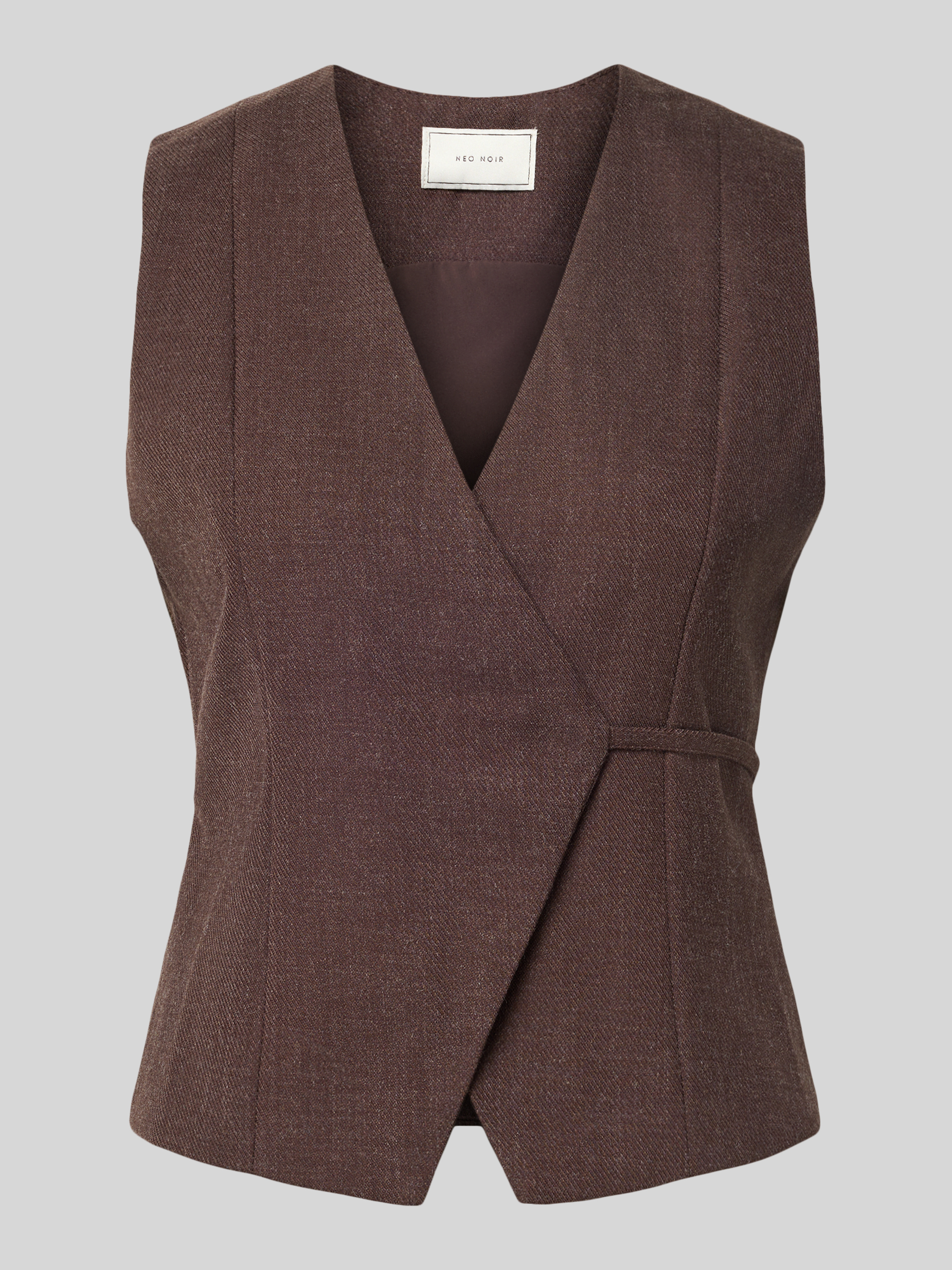 Die Damen Weste mit V-Ausschnitt Modell 'Samara' von Neo Noir zeichnet sich durch ihre körpernahe Passform aus und schmiegt sich angenehm an. Durch den Viskose-Anteil im Material-Mix wirkt das Gewebe leicht und sorgt für ein angenehmes Tragegefühl. Der Verschluss zum Binden unterstreicht die moderne, flexible Optik, sodass man sie vielseitig kombinieren kann.