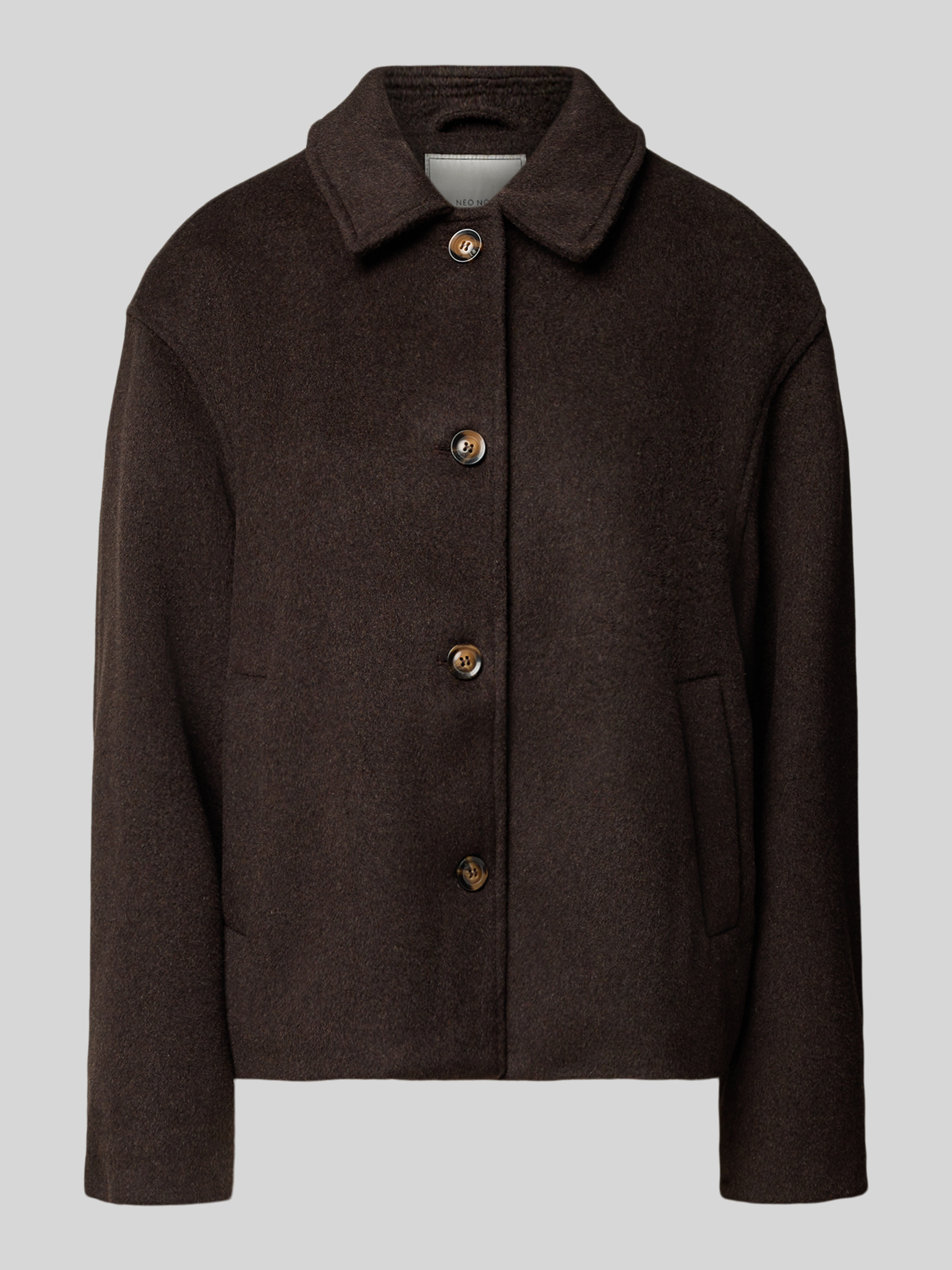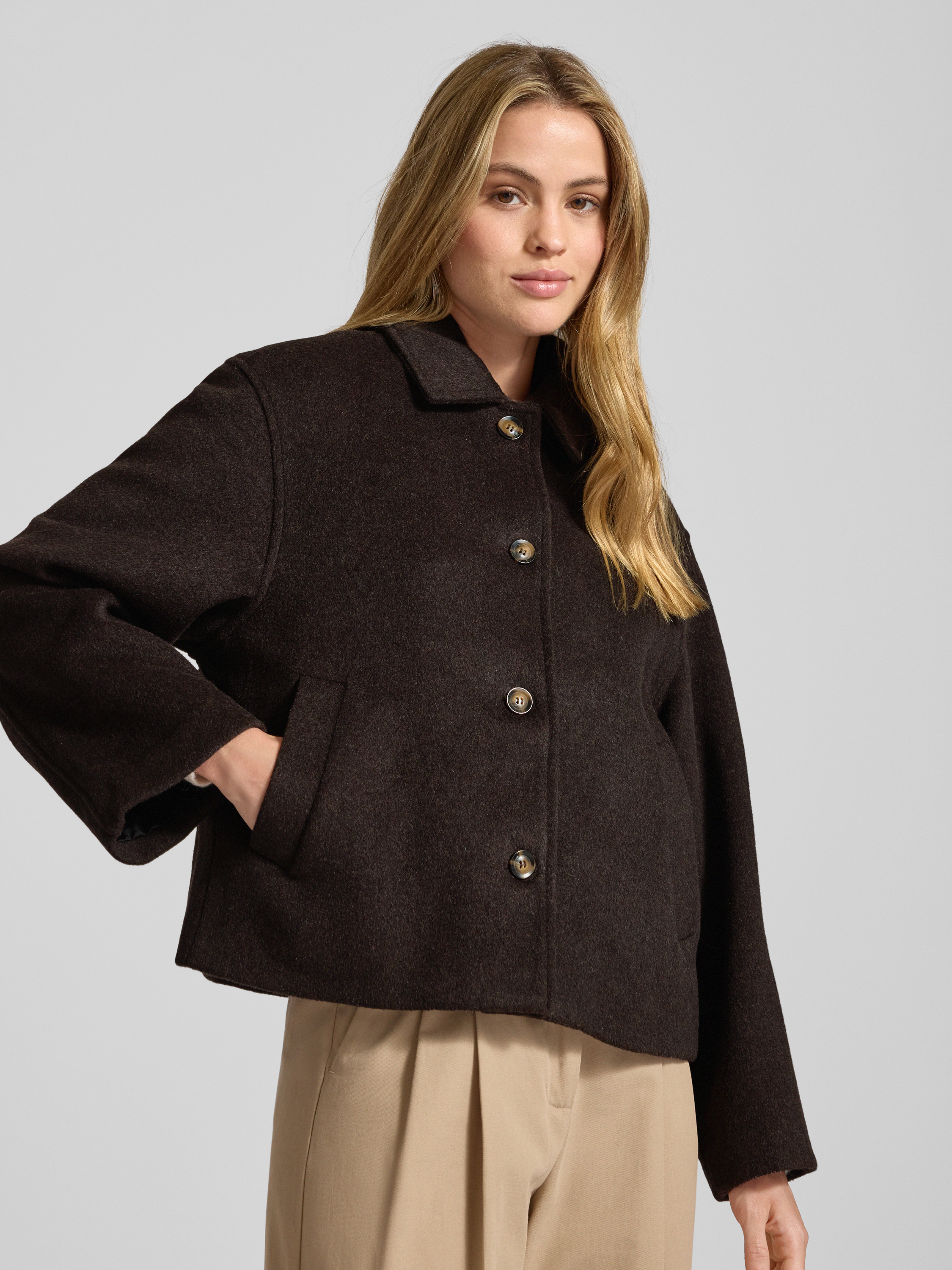 Neo NoirWolljacke mit Umlegekragen Modell 'Hamra' in dunkelbraun
