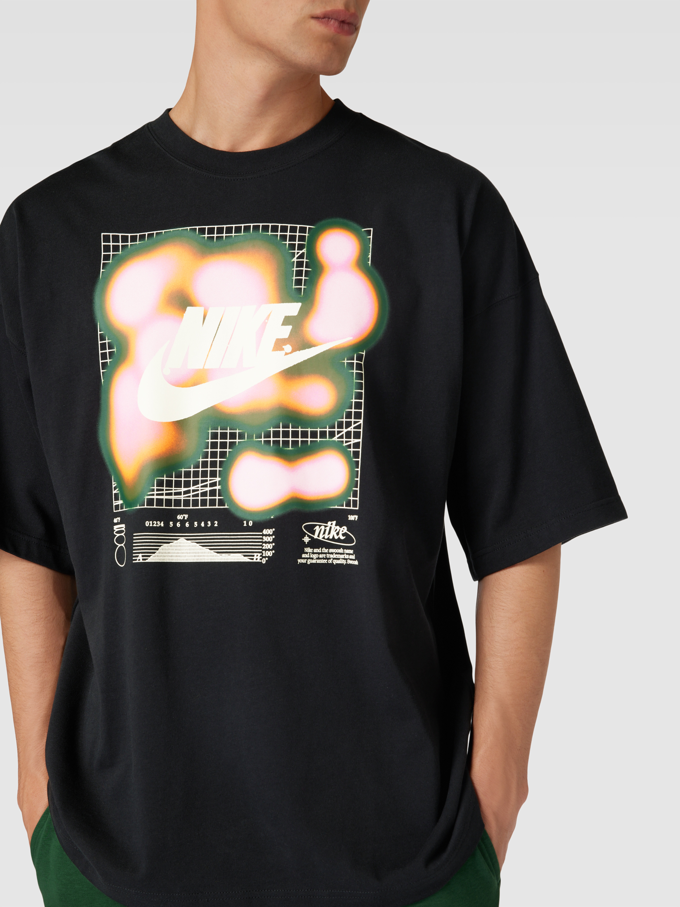 Das Nike Herren T-Shirt mit Label-Print besteht aus reiner Baumwolle und bietet dank des Regular Fit eine bequeme Passform. Das unifarbene Design mit geripptem Rundhalsausschnitt verleiht jedem Outfit eine stilvolle Note. Es eignet sich ideal für den lässigen Alltagslook.