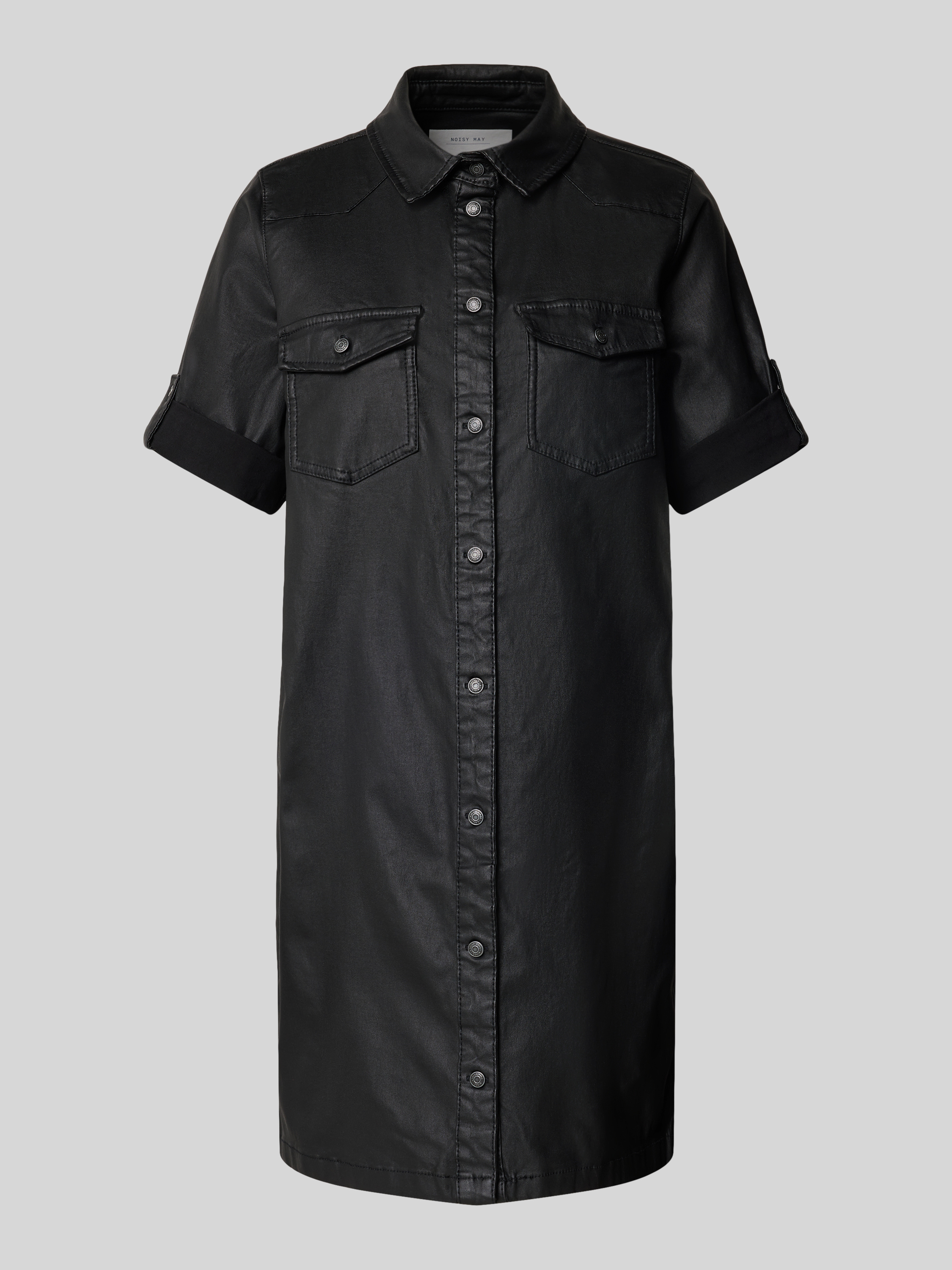 Das Minikleid mit Knopfleiste von Noisy May besteht aus einem Viskose-Mix mit Stretch-Anteil und sorgt durch den lockeren Schnitt für angenehme Bewegungsfreiheit. Ein Hemdblusenkragen und kurze Ärmel unterstreichen die entspannte Optik, während Brusttaschen praktische Akzente setzen. So eignet sich das Modell für vielseitige Alltagskombinationen.