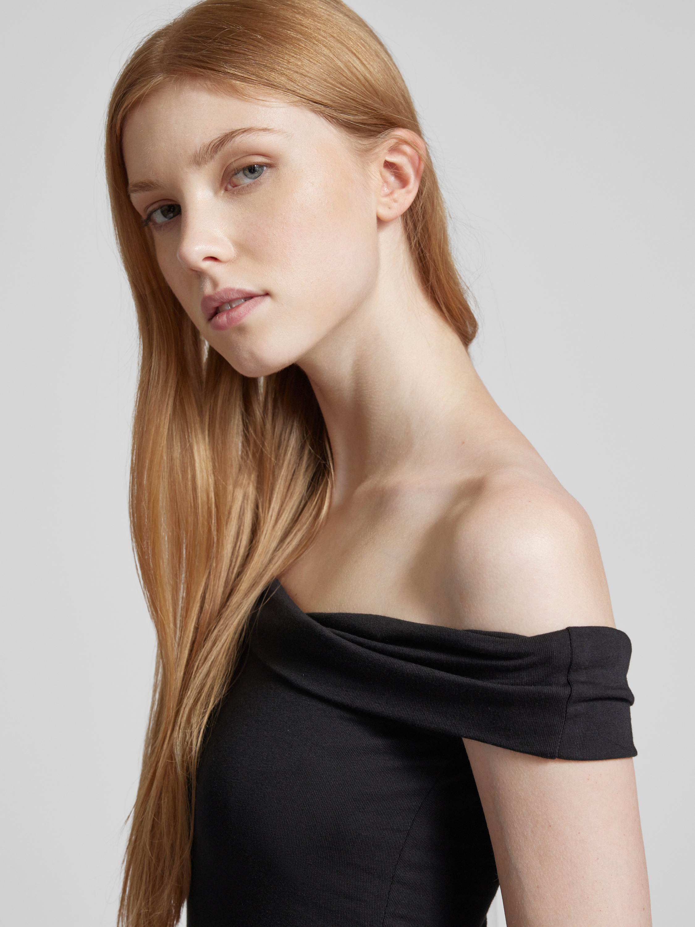 Noisy MayOff-Shoulder-Kleid mit Teilungsnaht Modell 'NEW SIGNE' in black