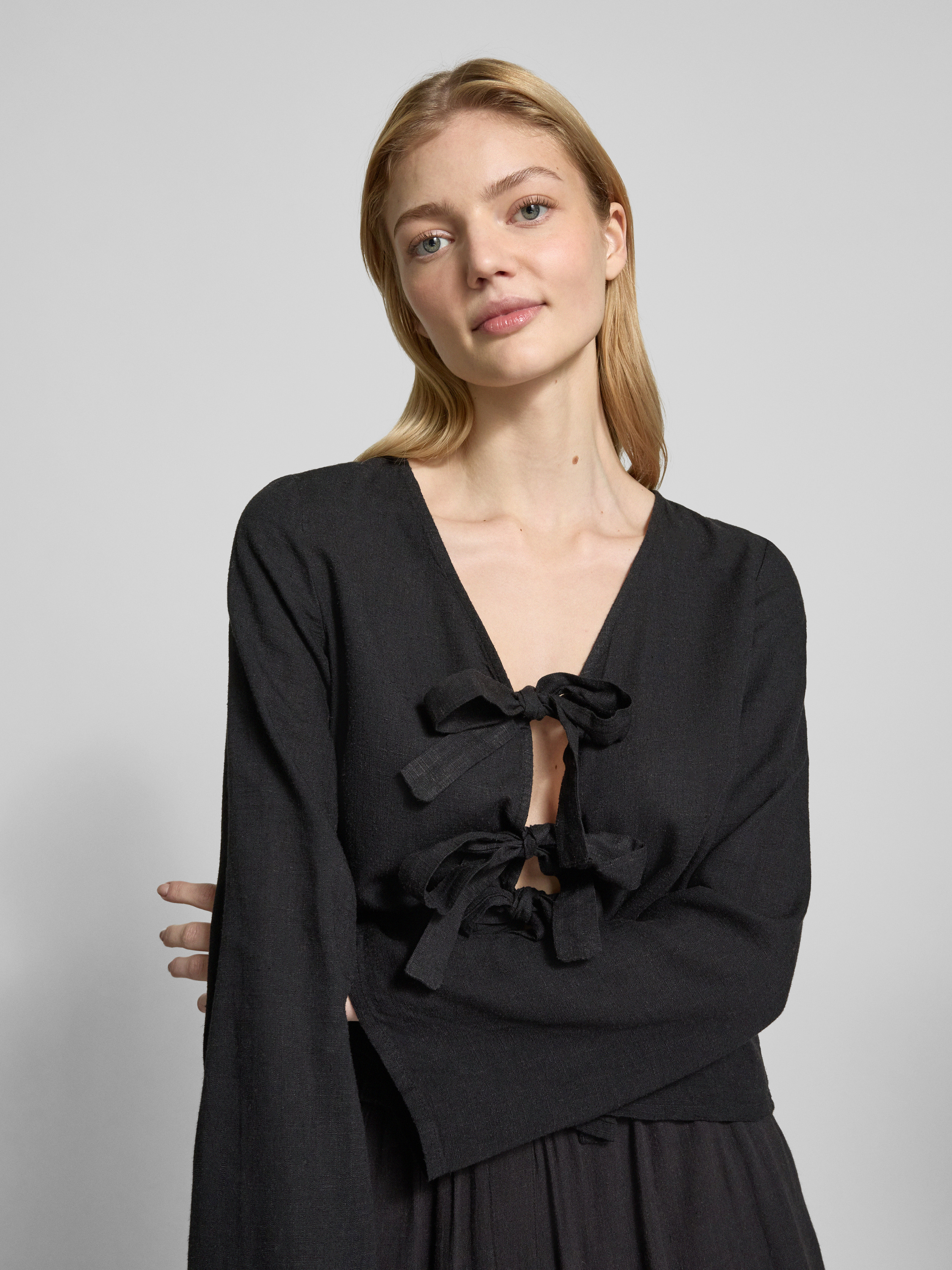 Noisy MayRegular Fit Bluse aus Viskose-Leinen-Mix Modell 'LEILANI' in black