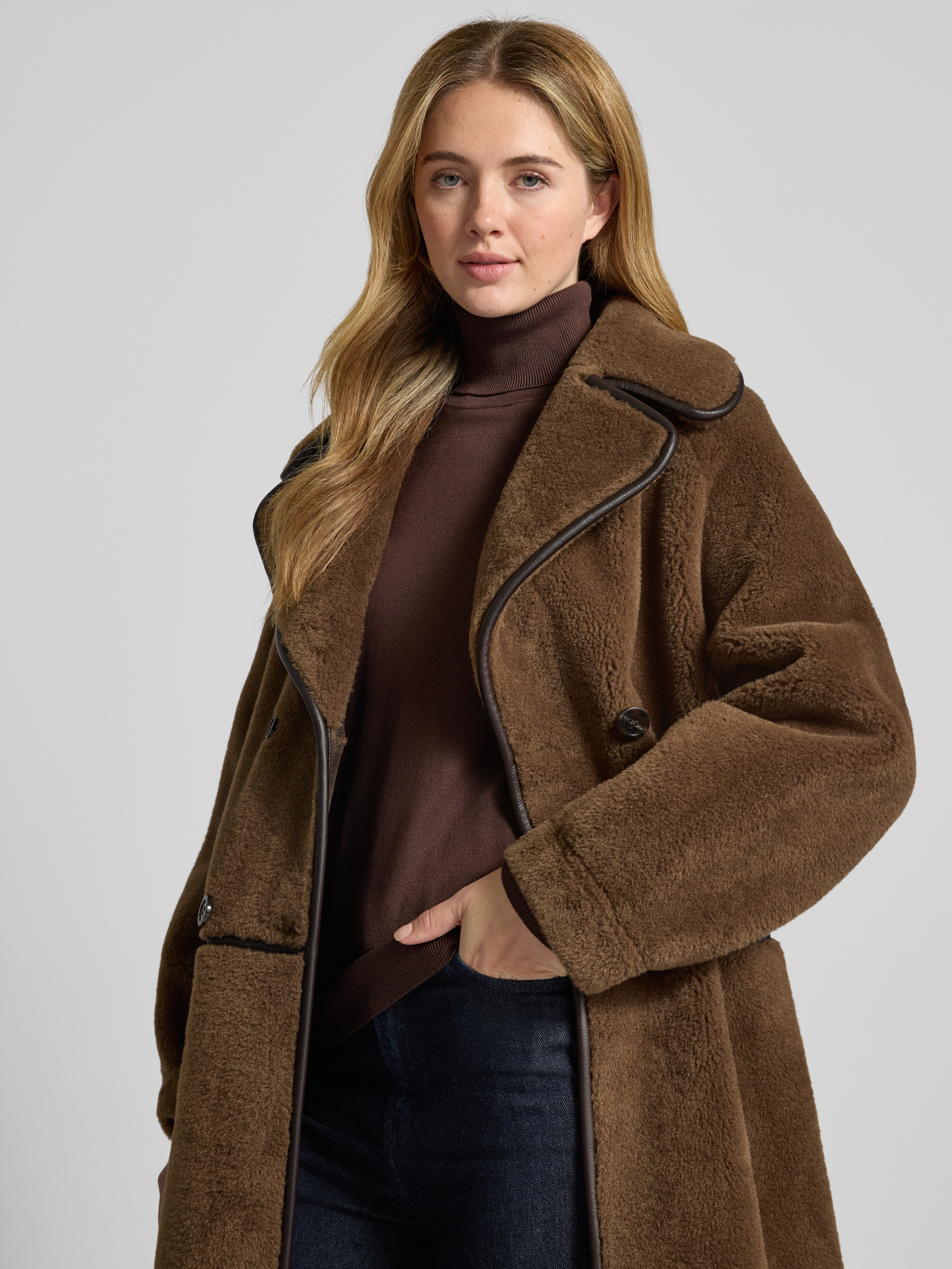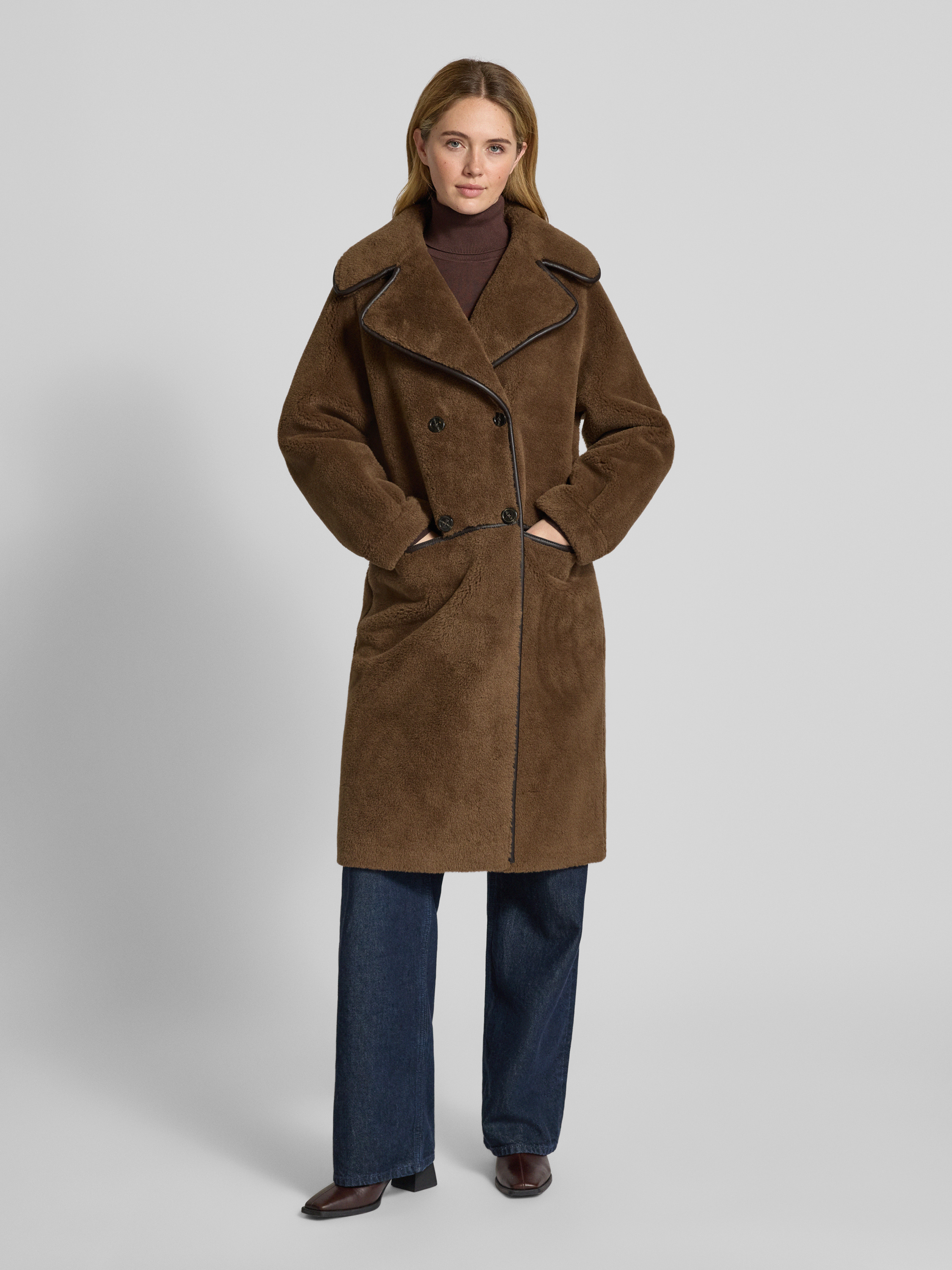 • OAKWOOD Fleecemantel mit Reverskragen Modell 'TILDA' Mittelbraun
