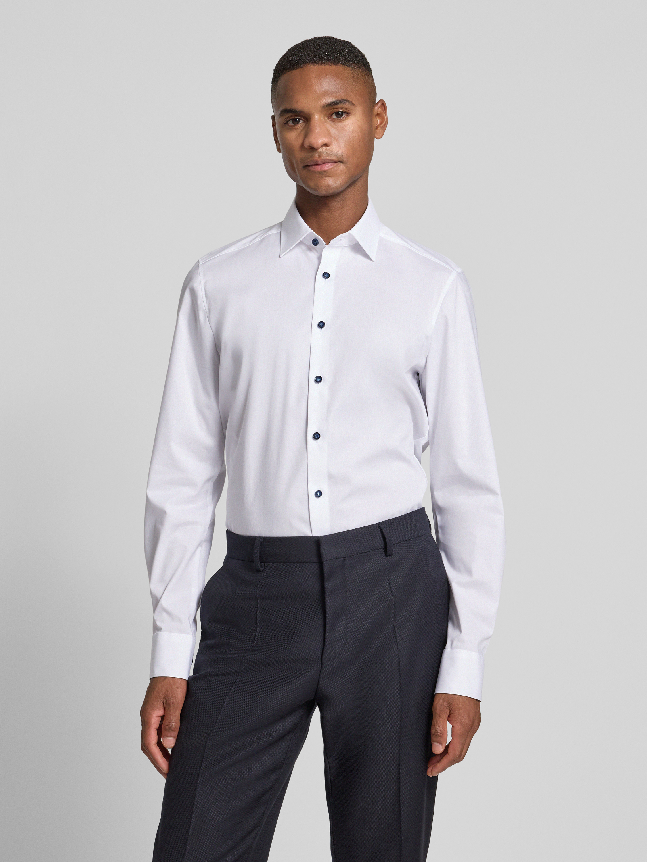 Das Herren Slim Fit Business-Hemd von OLYMP Level Five schmiegt sich angenehm an den Körper, ohne einzuengen. Durch den Baumwoll-Elasthan-Mix fühlt sich das Material weich an und sorgt für Bewegungsfreiheit im Alltag. Ein Kentkragen rundet den zeitgemäßen Hemd-Look dezent ab.
