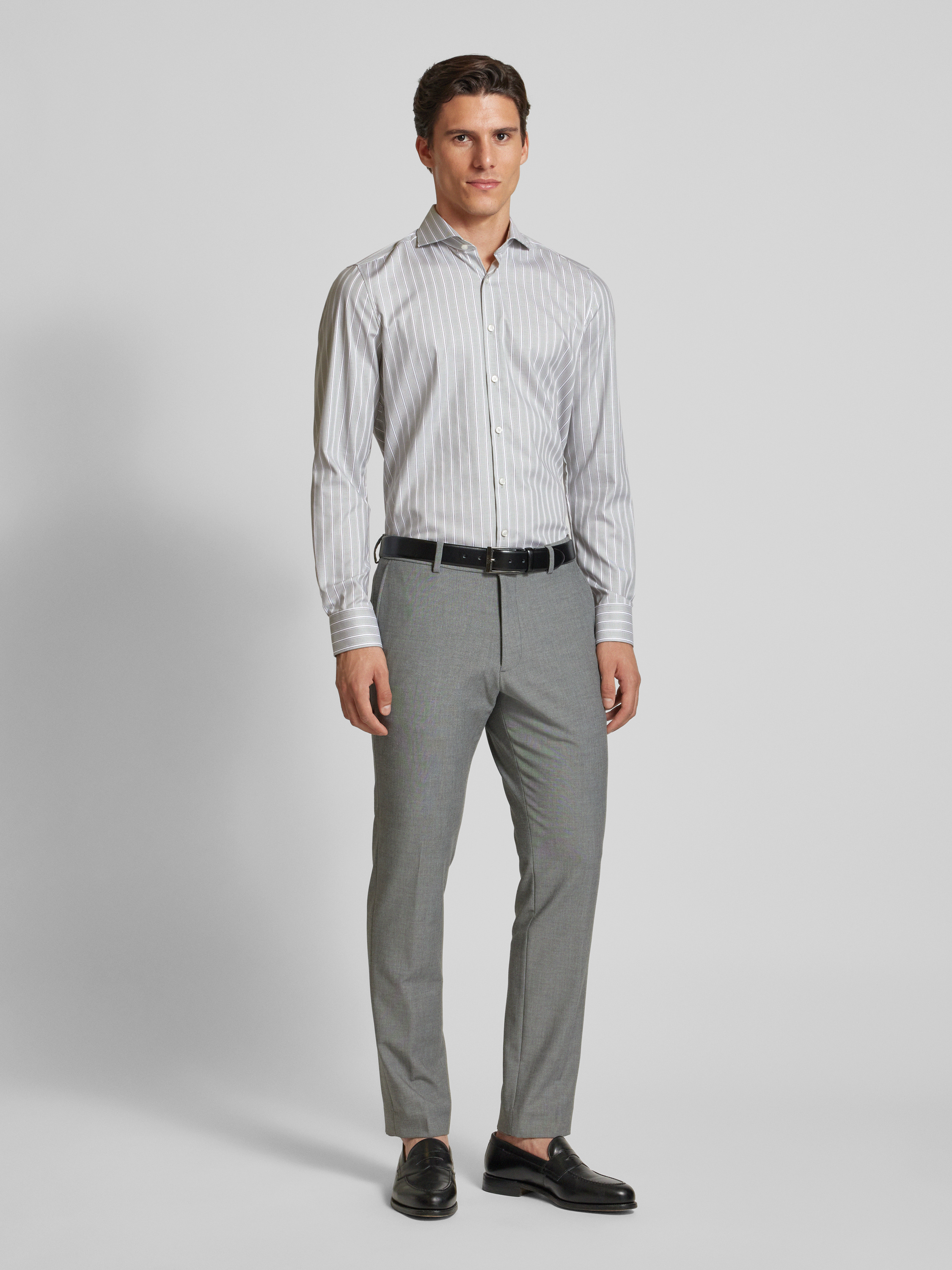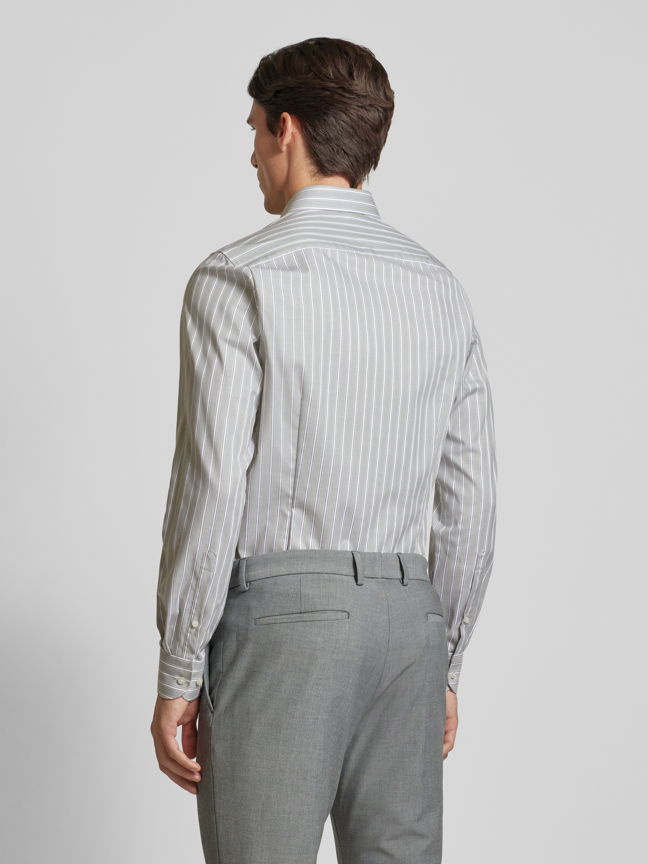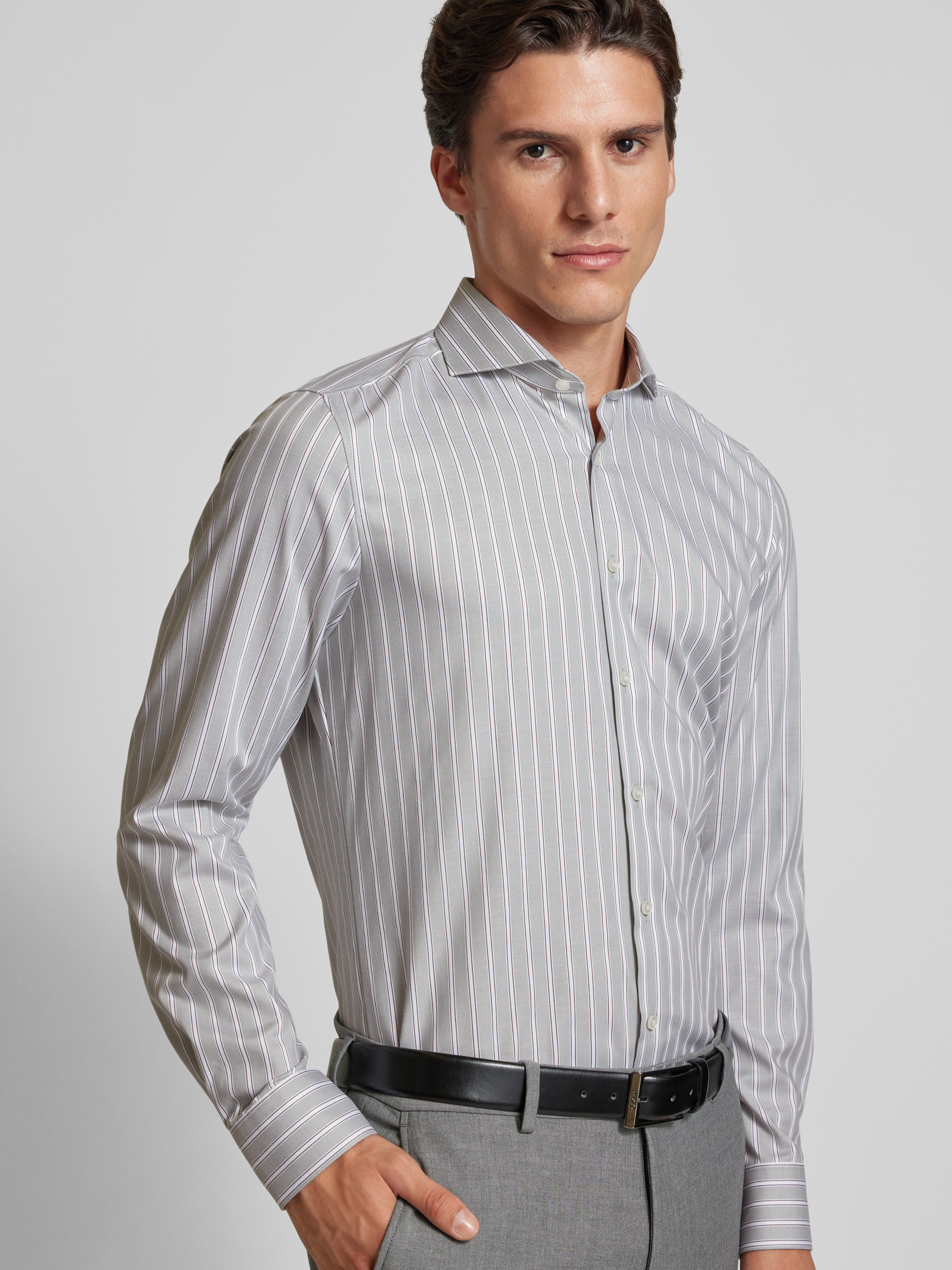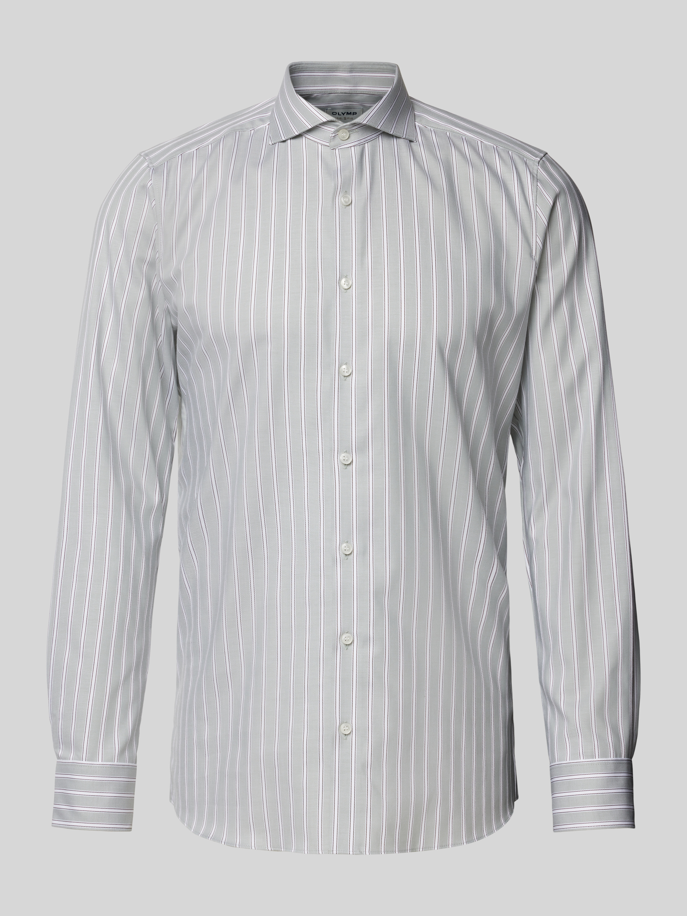 Das OLYMP Level Five Businesshemd vereint modernes Allover-Muster mit der schmalen Slim Fit Passform, die sich ideal für einen eleganten Look im Büro eignet. Der Haifischkragen und das feine Twillgewebe sorgen für stilvolle Akzente. Ein Baumwoll-Elasthan-Mix bietet angenehme Bewegungsfreiheit.