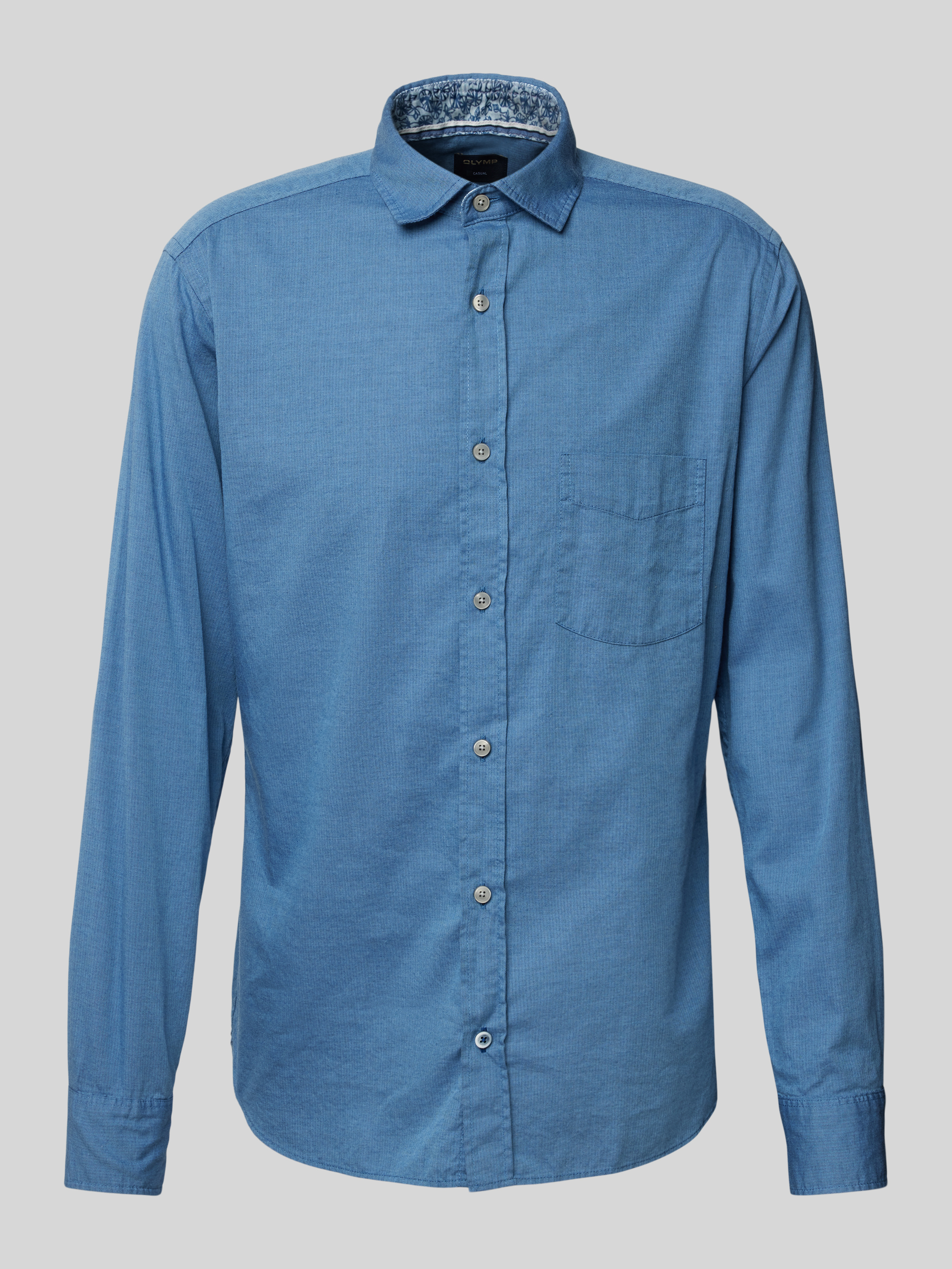 OLYMP Level FiveSlim Fit Freizeithemd aus reiner Baumwolle mit Brusttasche in marine