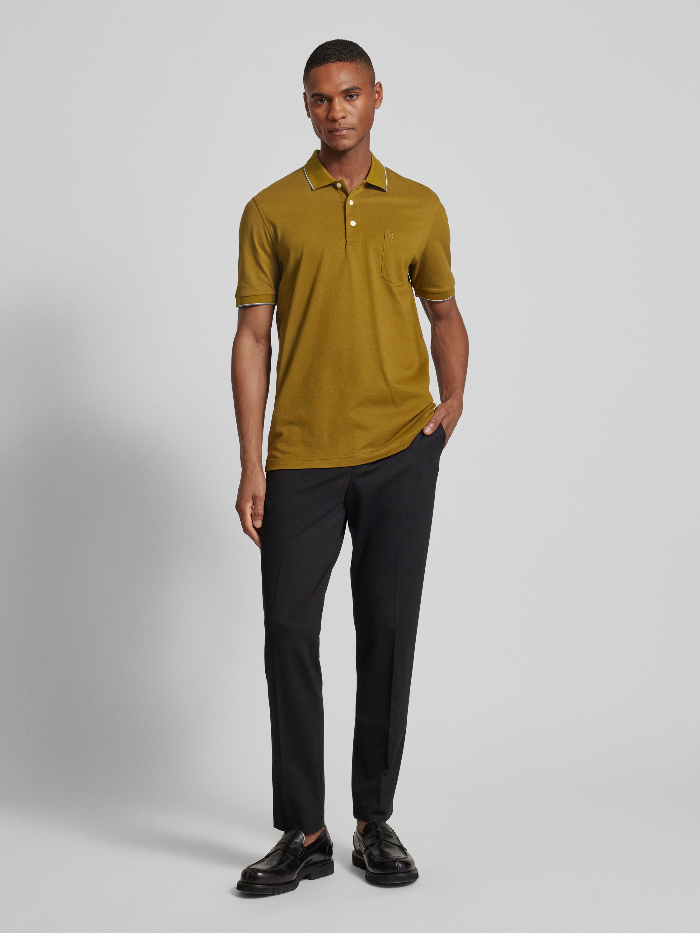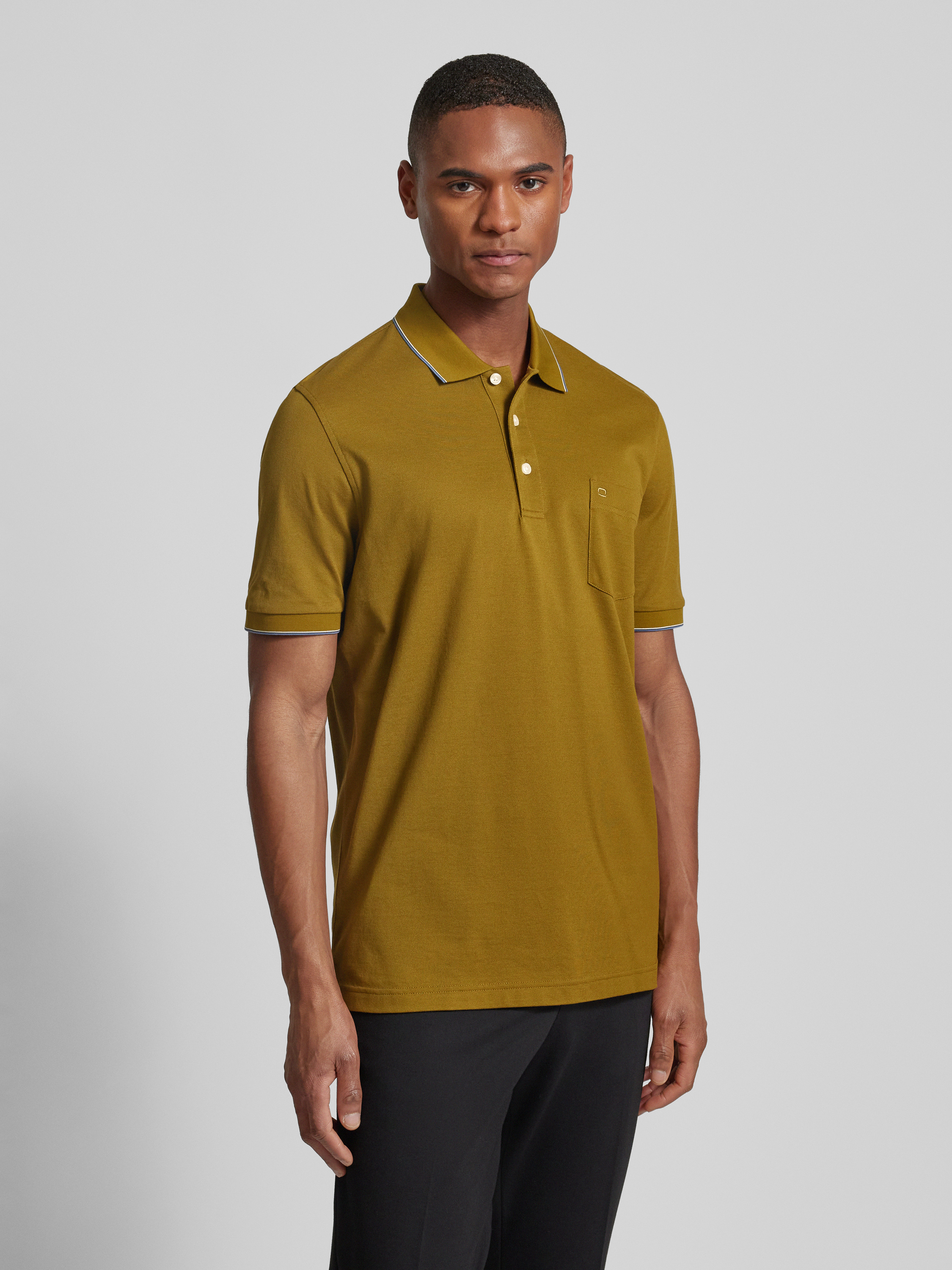 OLYMP Level FiveSlim Fit Poloshirt aus reiner Baumwolle mit Logo-Stitching in oliv