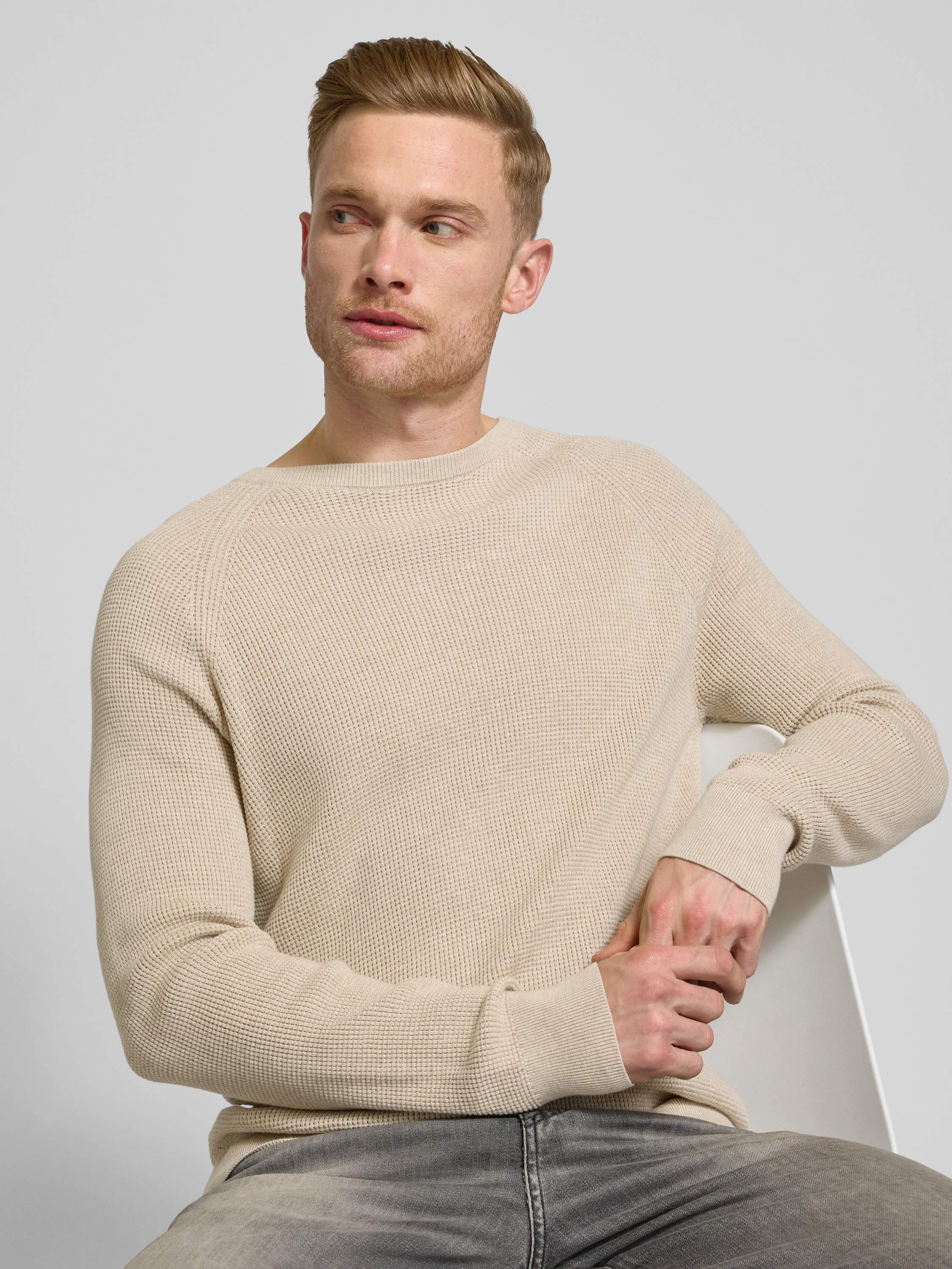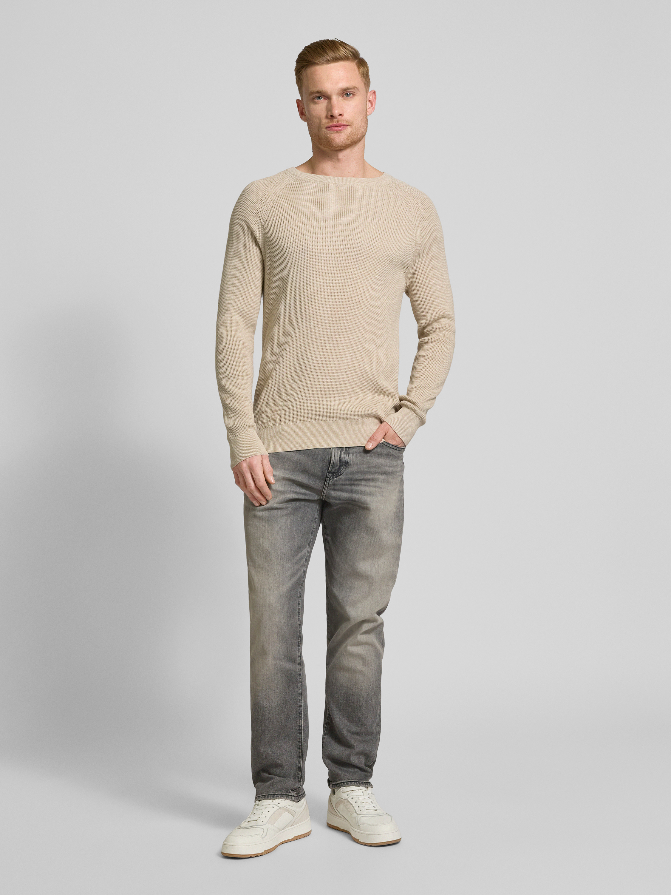 OLYMP Level FiveSlim Fit Strickpullover mit gerippten Abschlüssen in sand