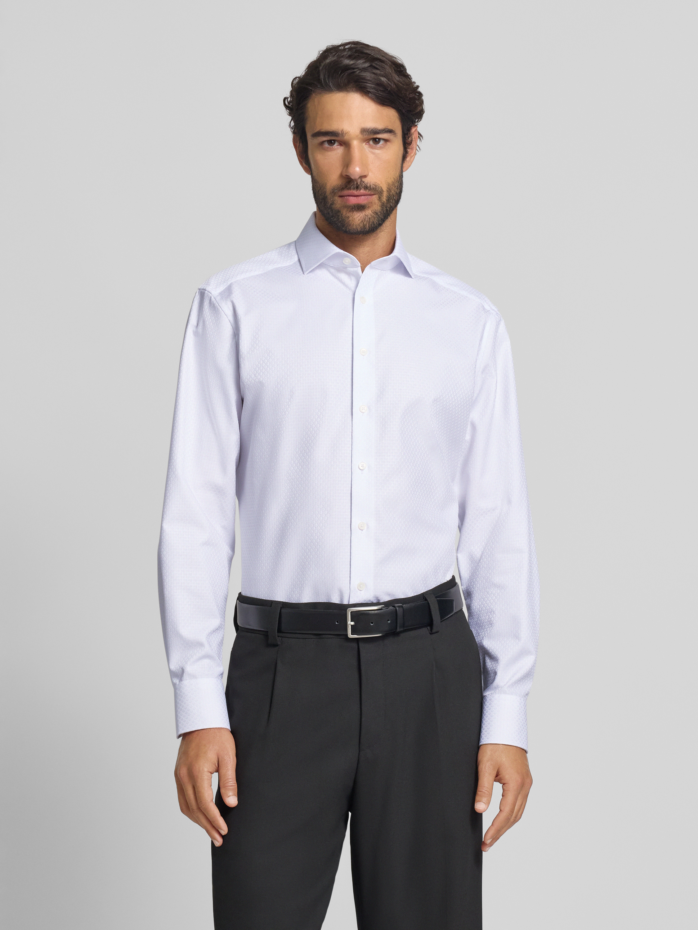 Das Herrenhemd von OLYMP in moderner Schnittführung liegt angenehm auf der Haut, da reine Baumwolle verarbeitet wird. Durch den Kentkragen und die Sportmanschetten eignet sich das Modern Fit Business-Hemd mit Kentkragen für formelle und legere Anlässe gleichermaßen. Die klare Linienführung unterstreicht einen gepflegten Gesamteindruck.