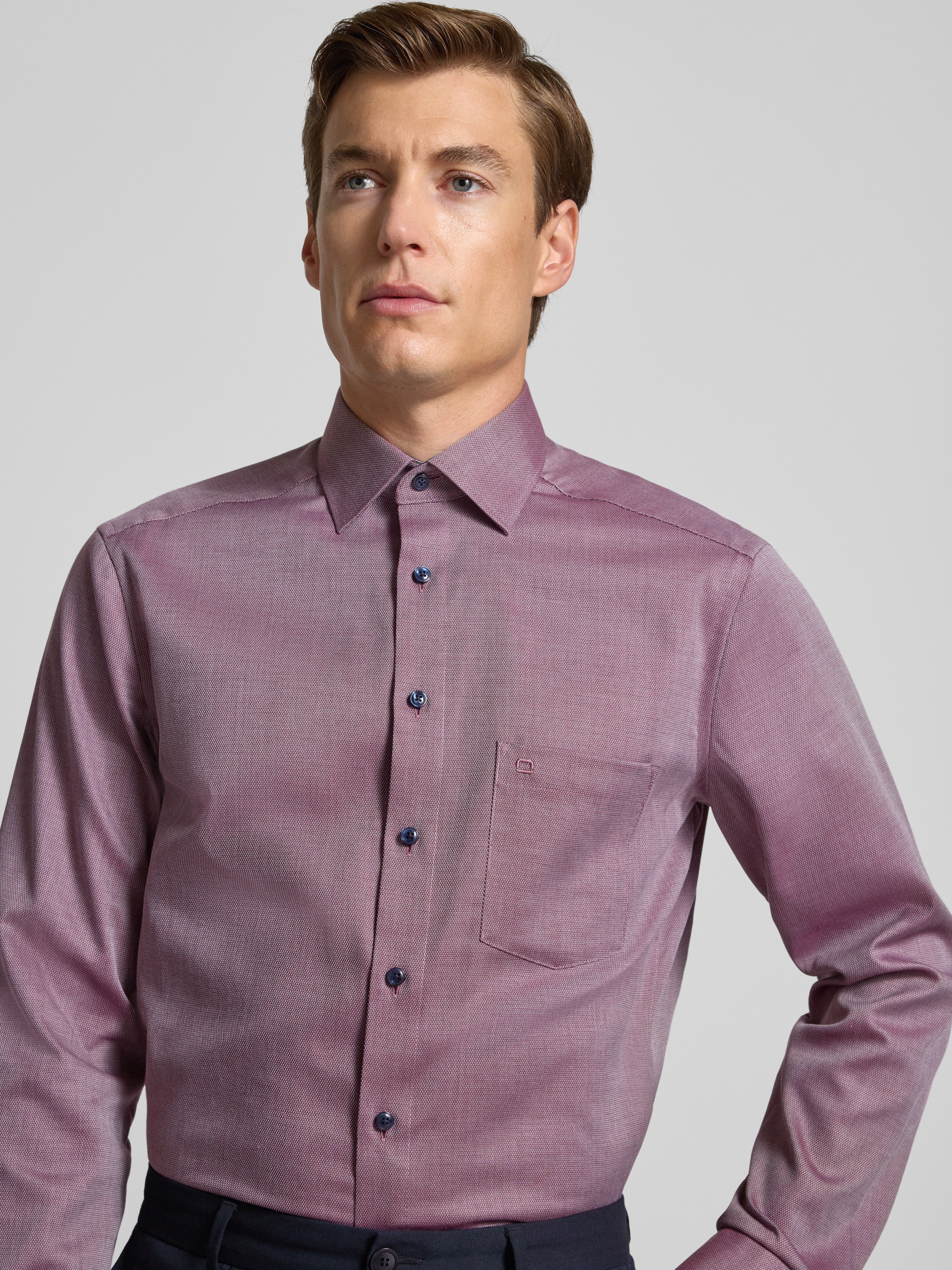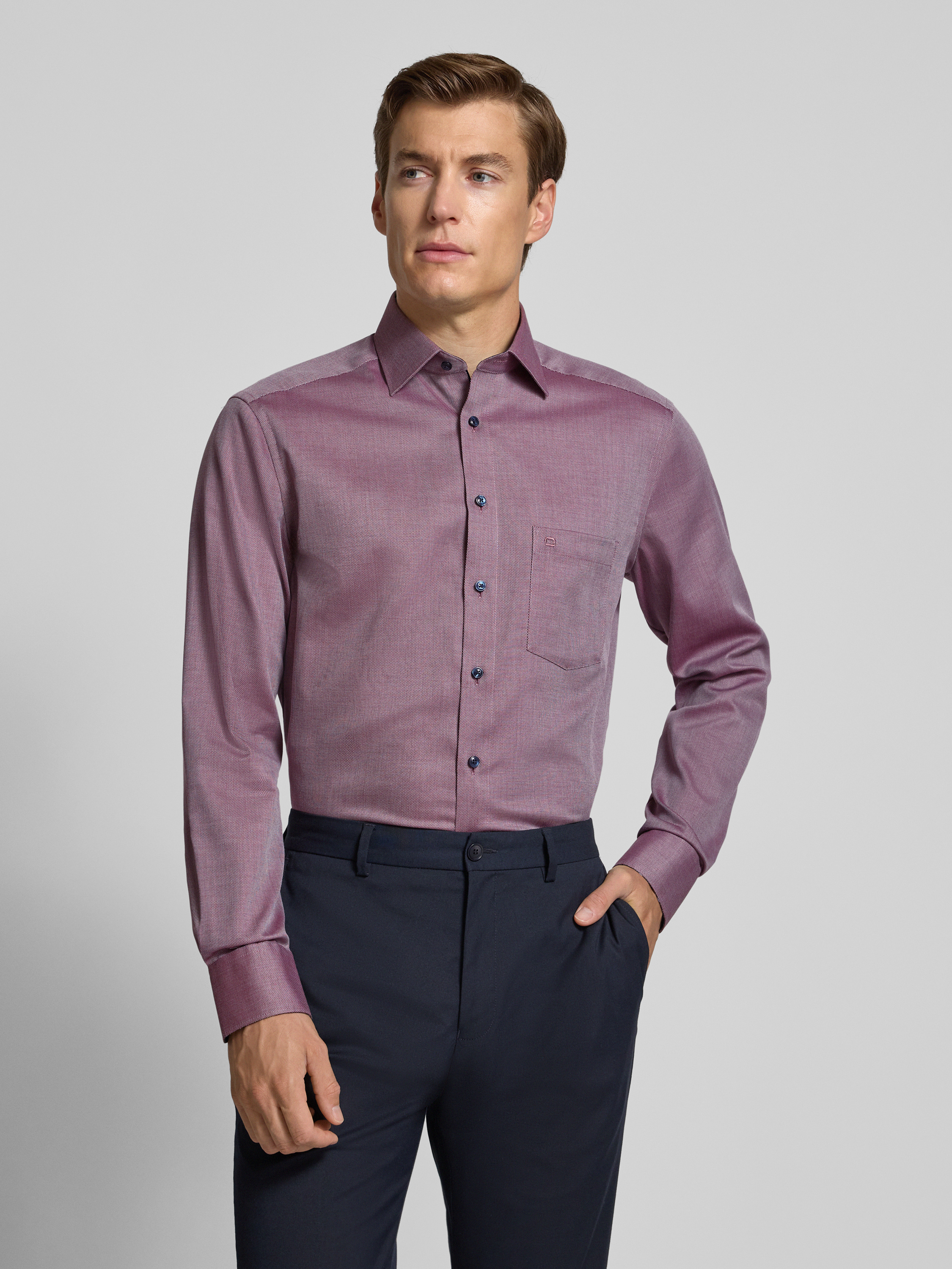 OLYMPModern Fit Businesshemd mit Kentkragen in bordeaux