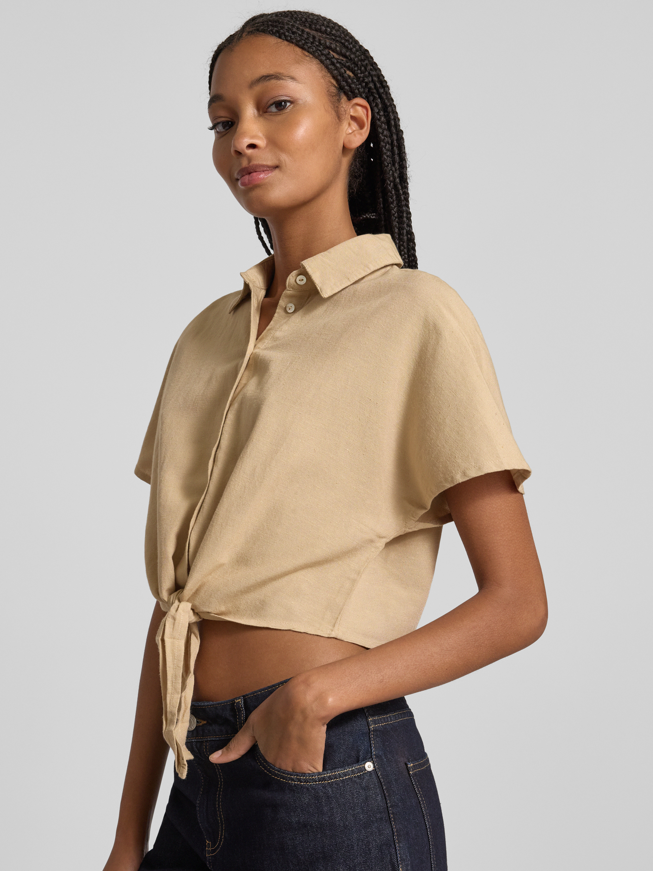 OnlyCropped Hemdbluse aus Viskose-Baumwoll-Mix mit Leinen Modell 'JAKIRI' in sand