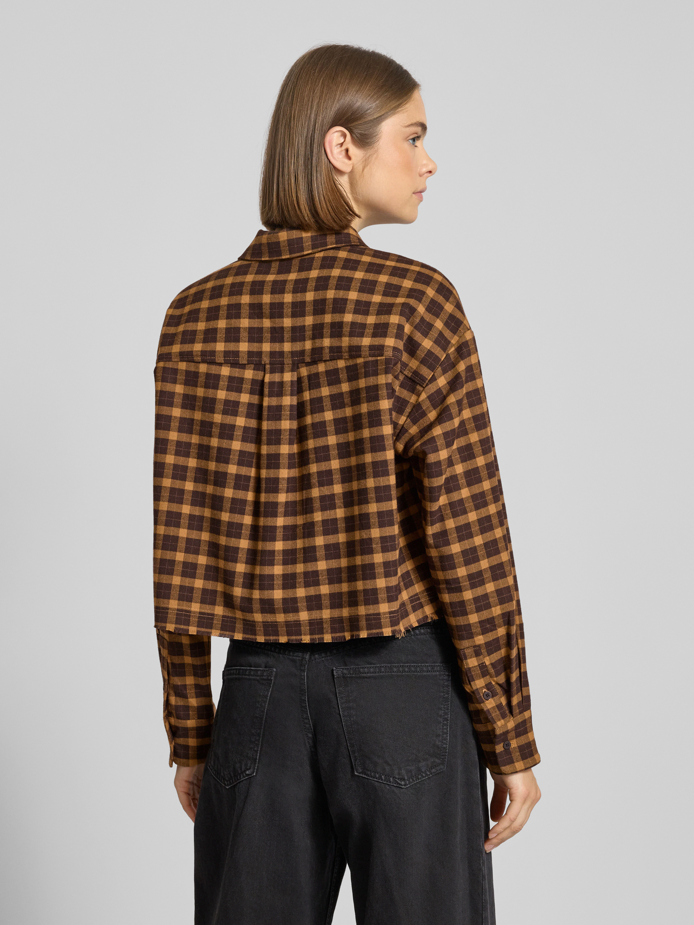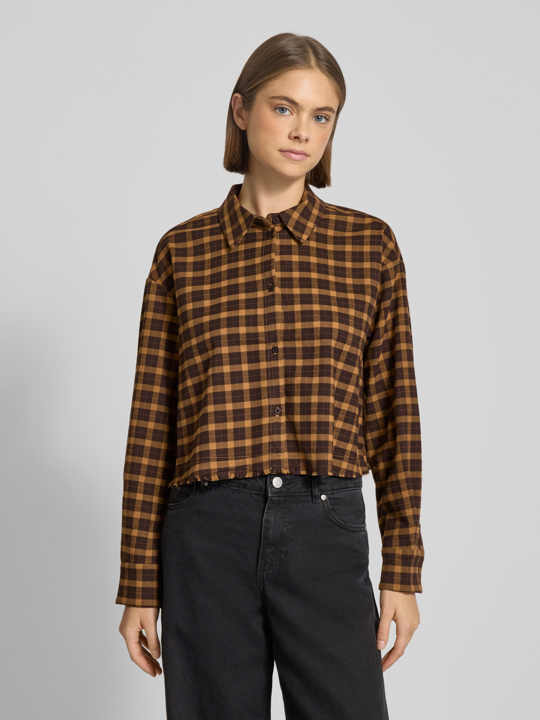 Die Damen Hemdbluse von Only, Modell 'Cat Life', setzt auf ein auffälliges Karomuster und einen modernen Cropped-Schnitt, wodurch sie vielseitig zu kombinieren ist. Durch die Regular Fit Passform liegt sie angenehm an, während die Rückenpasse mit Cacharel-Falte dezente Bewegungsfreiheit schafft. Mit ihrer offenen Kante am Saum eignet sich die Bluse sowohl für legere Freizeitlooks als auch für abwechslungsreiche Outfits im Alltag.